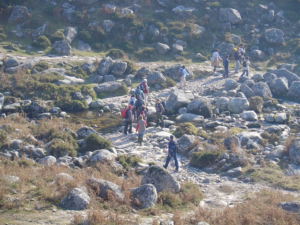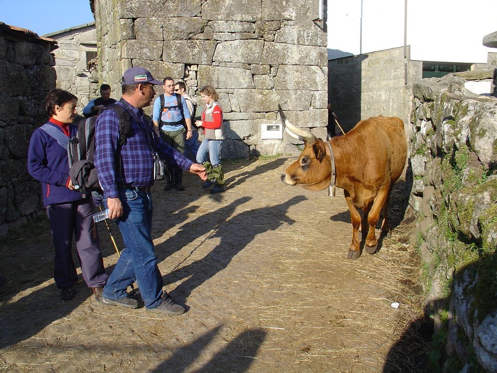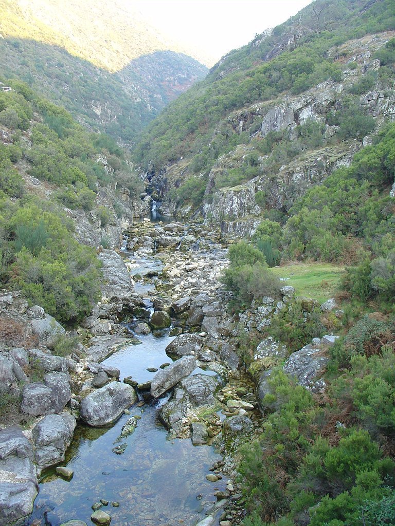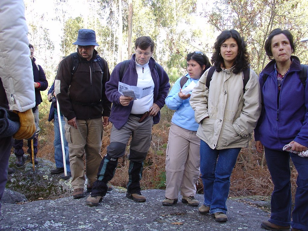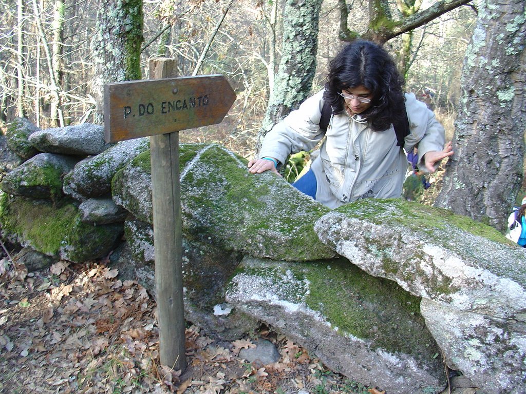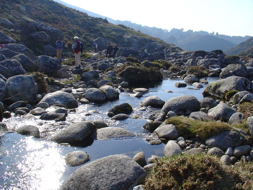 Depois das tradicionais fotos, continuamos a subida, até atingir um pouco mais à frente, a Bouça do Colado, nas margens do Rio das Mulas, ou Rio de Parada, que visitamos demoradamente, aproveitando as suas sombras para retemperar as forças, ao mesmo tempo que apreciamos os diversos vestígios ancestrais, entre os quais as gravuras rupestres bem visíveis no Penedo do Encanto, ou Penedo das Sete Cabeças.
