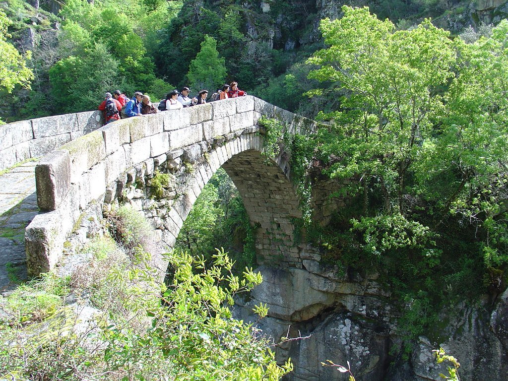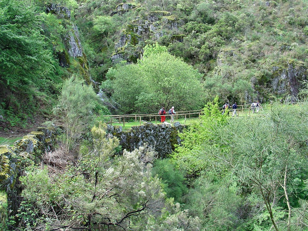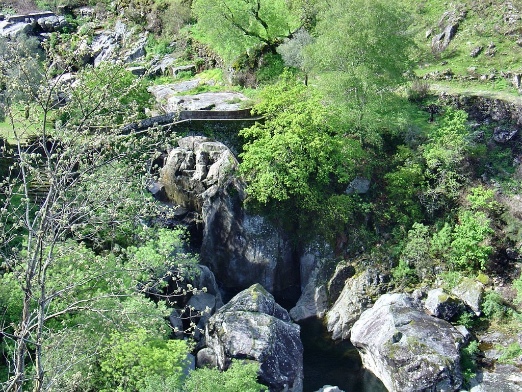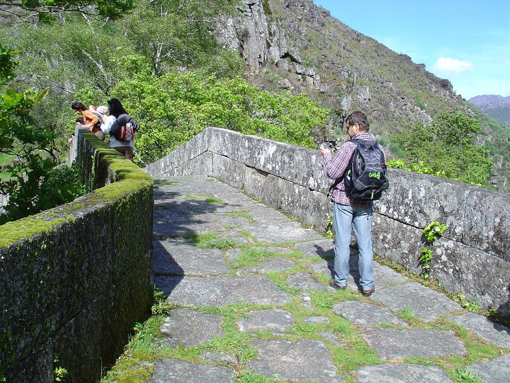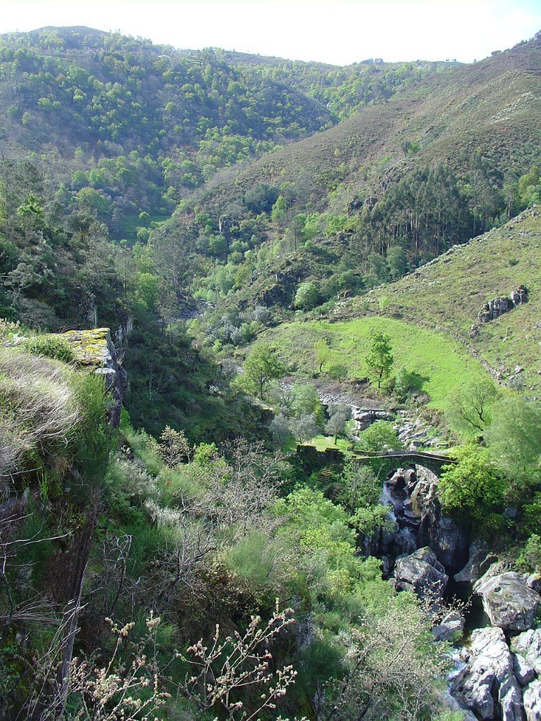 Segue-se a placa que indica Ponte da Misarela, a calçada passa pelas alminhas. Desce-se até à Ponte, sobre o rio Rabagao, por caminho panorâmico.