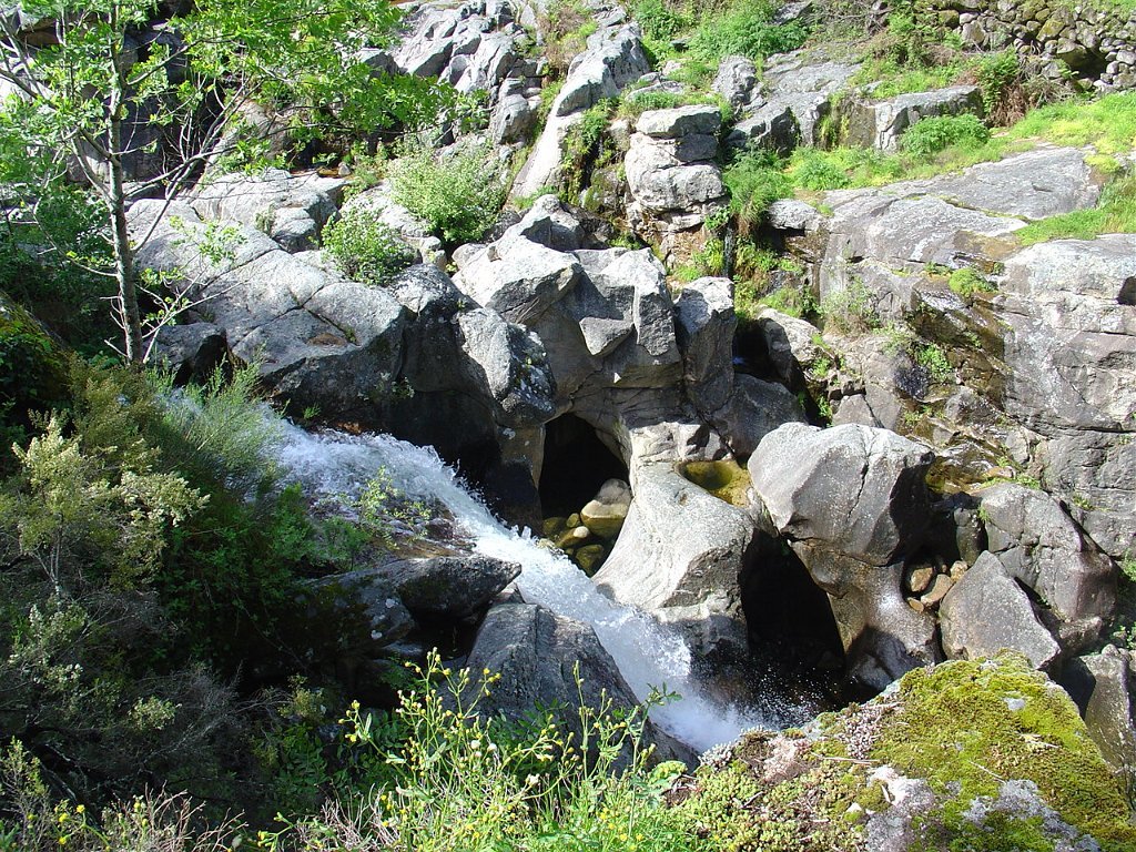 São dois enormes maciços de granito que se erguem a par numa altura de 70 a 80 m, alcantilados e com alguns arbustos nas frestas; no pequeníssimo espaço entre estas duas «colunas» despenha-se um regato, particularmente caudaloso no Inverno. Estas rochas são, segundo a crendice popular, um local onde dão os "passes" para a cura de doenças em crianças dos 2 aos 5 anos.
