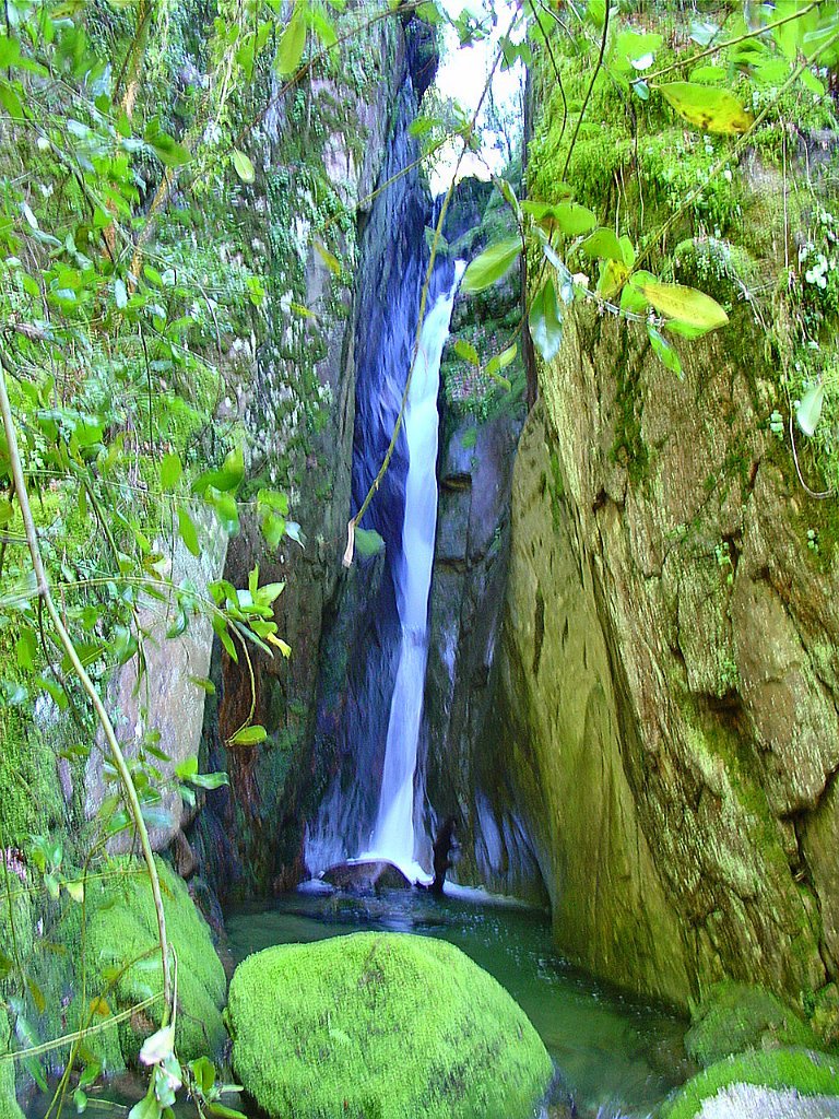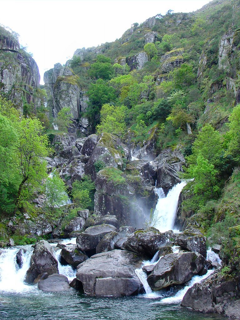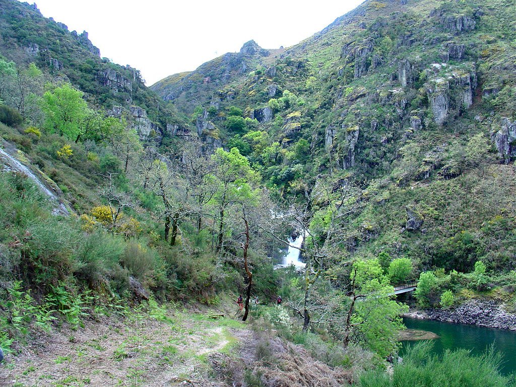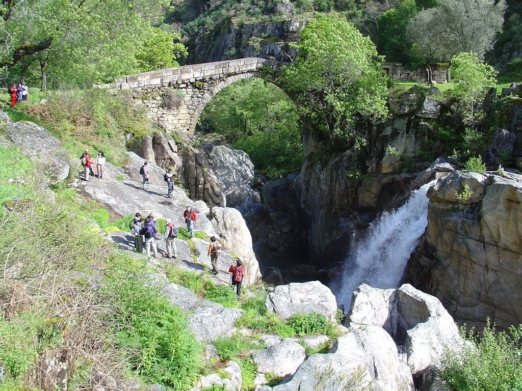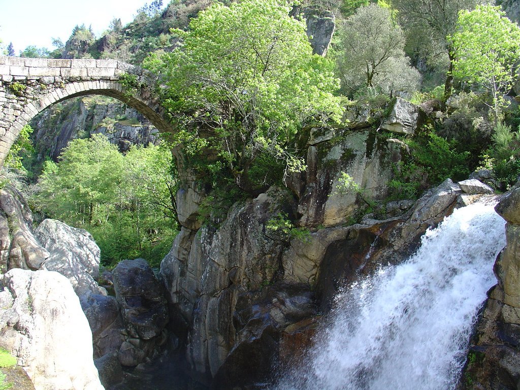 Passamos pouco depois em frente da grande cascata da ribeira de Pincães e logo a seguir sobre uma maciça ponte de pedra. Após um carvalhal começa mais uma subidinha que nos leva mais à frente, à deslumbrante cascata do Saltadouro.