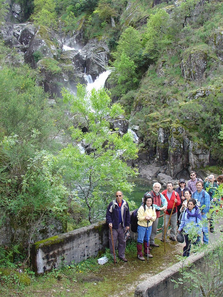 O tempo estava quente, o sol forte e a paisagem excelente, tendo como pano a Cascata do Saltadouro, o que nos proporcionou agradável pausa, temperada com o baptismo de um novato destas andanças.