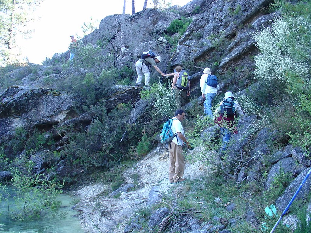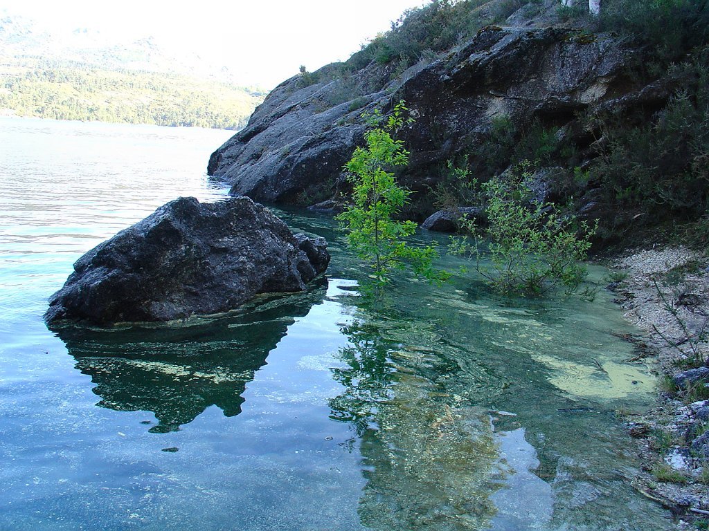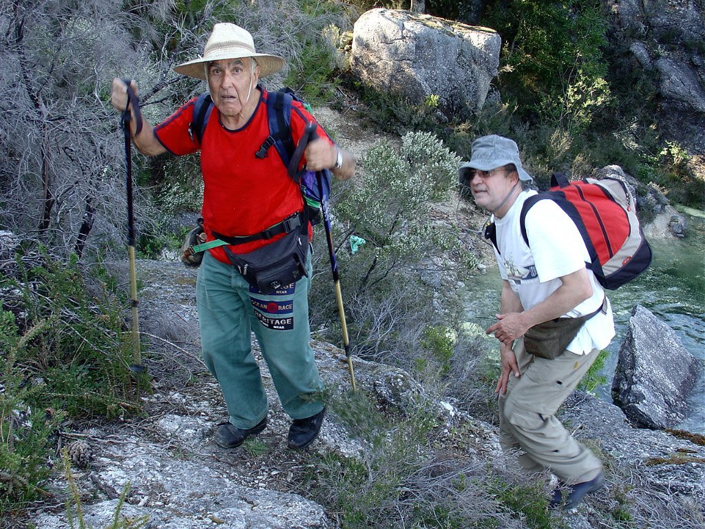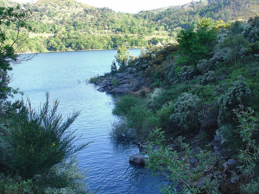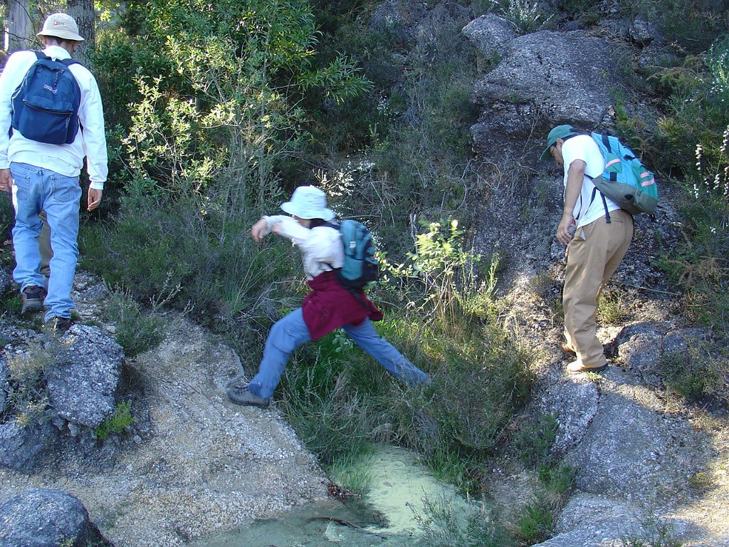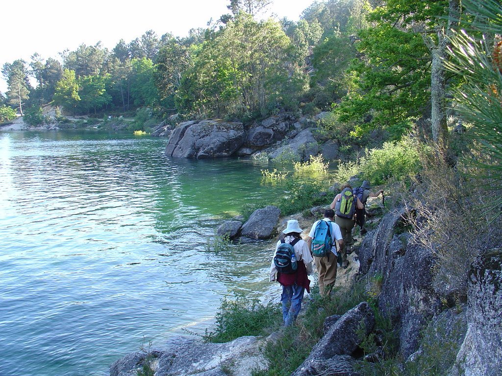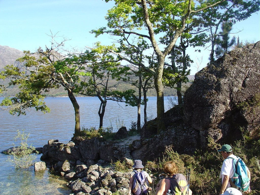 Depois da foto de grupo seguimos por Toutas, iniciamos a descida através de estreito carreiro até atingir o Porto das Furnas, seguindo então acompanhando a margem do rio das Furnas, para mais abaixo perto já da albufeira visitar interessantes moinhos que davam serventia à extinta povoação de Vilarinho das Furnas, entretanto submersa pela enorme albufeira agora existente.