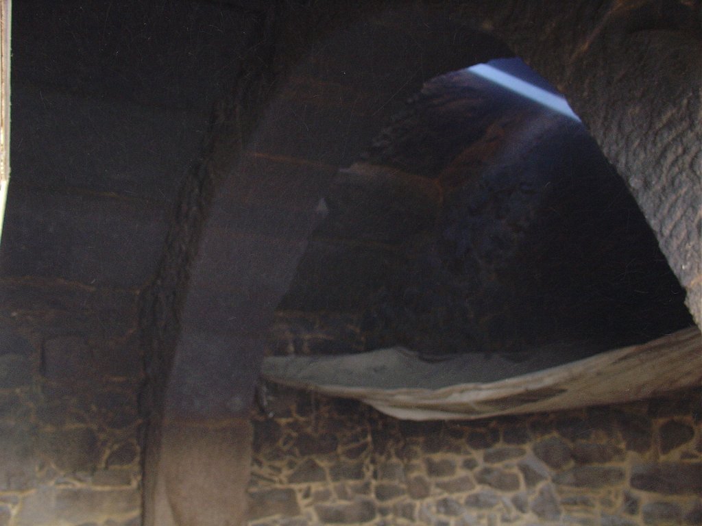 De todas as construções, apenas a igreja se conserva telhada, que o resto são paredes de ruína.