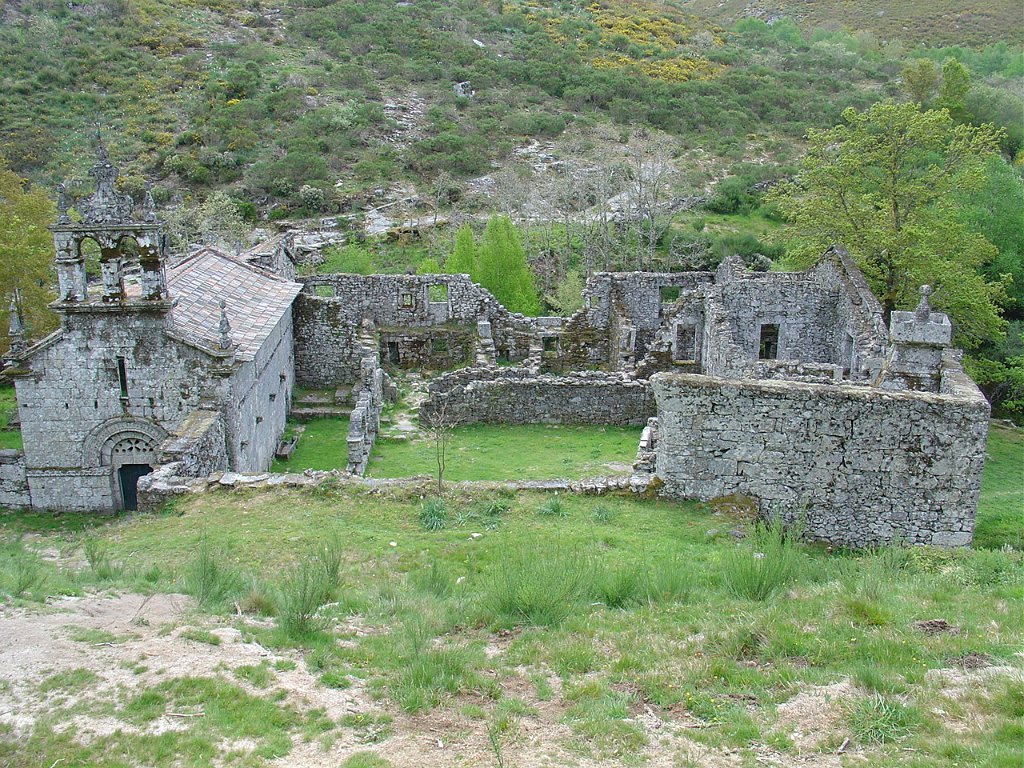 Visto cá de cima, para quem acaba de deixar a aldeia de Pitões, distingue-se-lhe nitidamente a distribuição dos espaços em que está repartido. O conjunto edificado é modesto, e os escassos arcos que restam do claustro, pela sua escala tão reduzida, dão bem a ideia do que foi este convento cisterciense dedicado a Santa Maria.