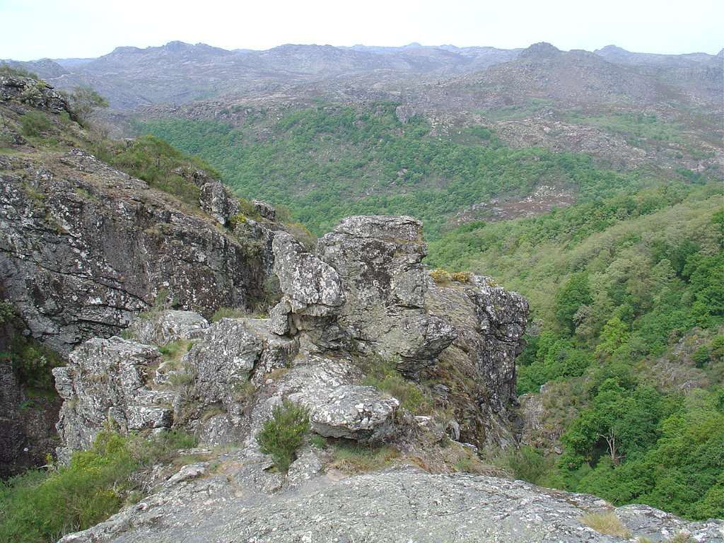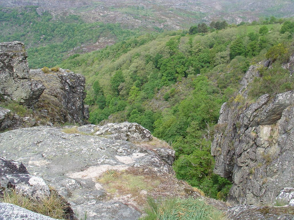 Depois das fotos ao mosteiro subimos o trilho marcado na direcção de um miradouro não assinalado, local de acesso muito perigoso, onde se pode ver por entre maciços monumentais a formação da cascata de Pitões, que se precipita mais abaixo no ribeiro do Beredo, desaguando na barragem de Parada.