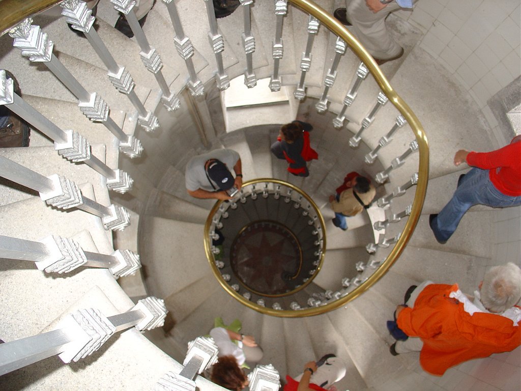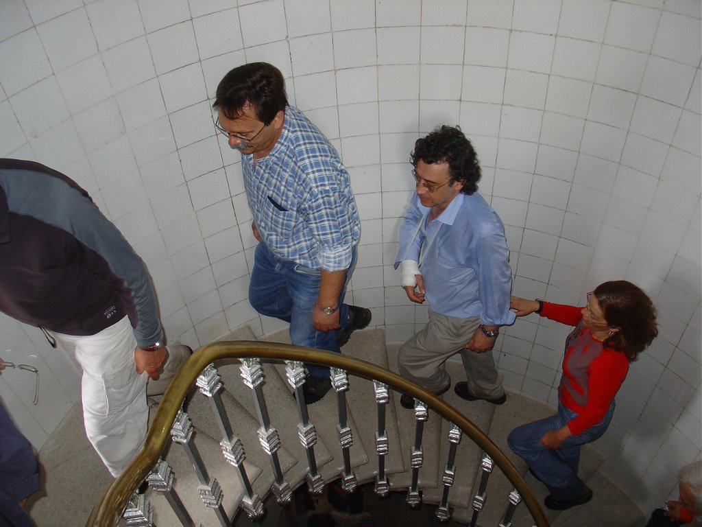 Como o tempo apertava subimos directamente para o Farol do Montedor, passando rapidamente pela Casa de Ruben A. Visitamos então o complexo do Farol do Mantedor demoradamente, observando do seu cimo a paisagem da freguesia e do mar, ouvindo as explicações do faroleiro, que muito gentilmente nos falou sobre a sua história e utilidade.
