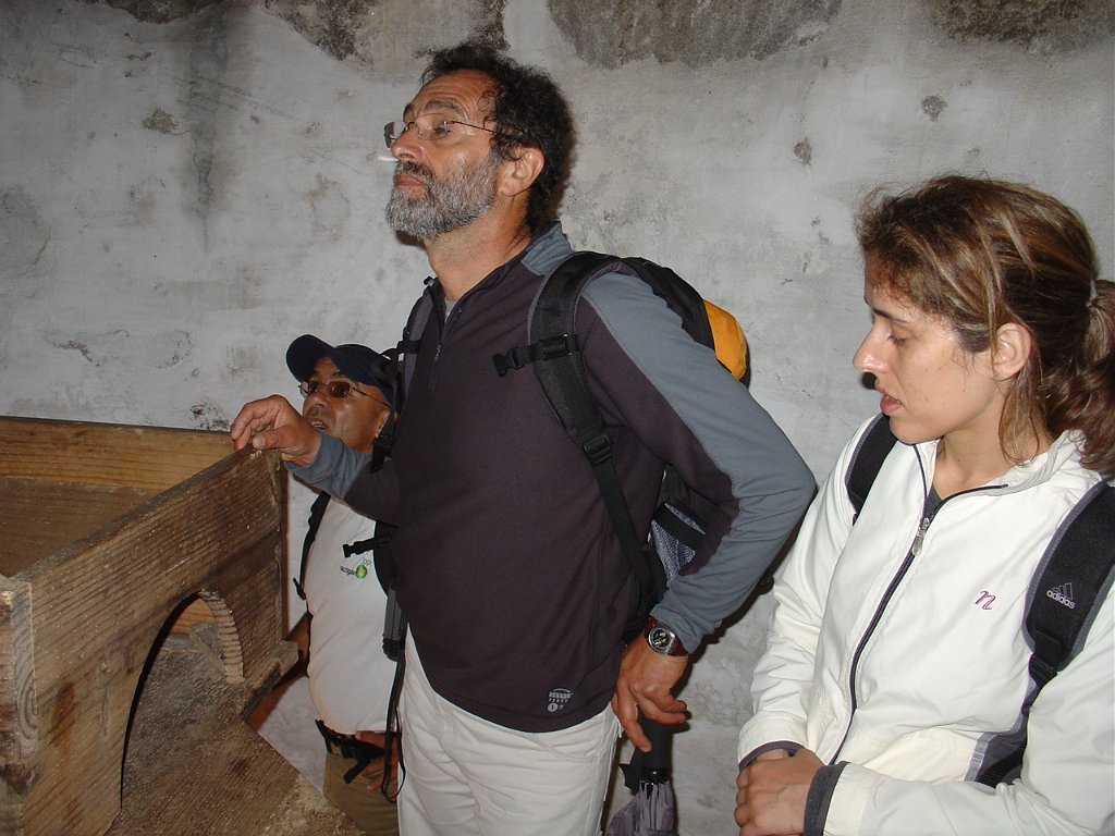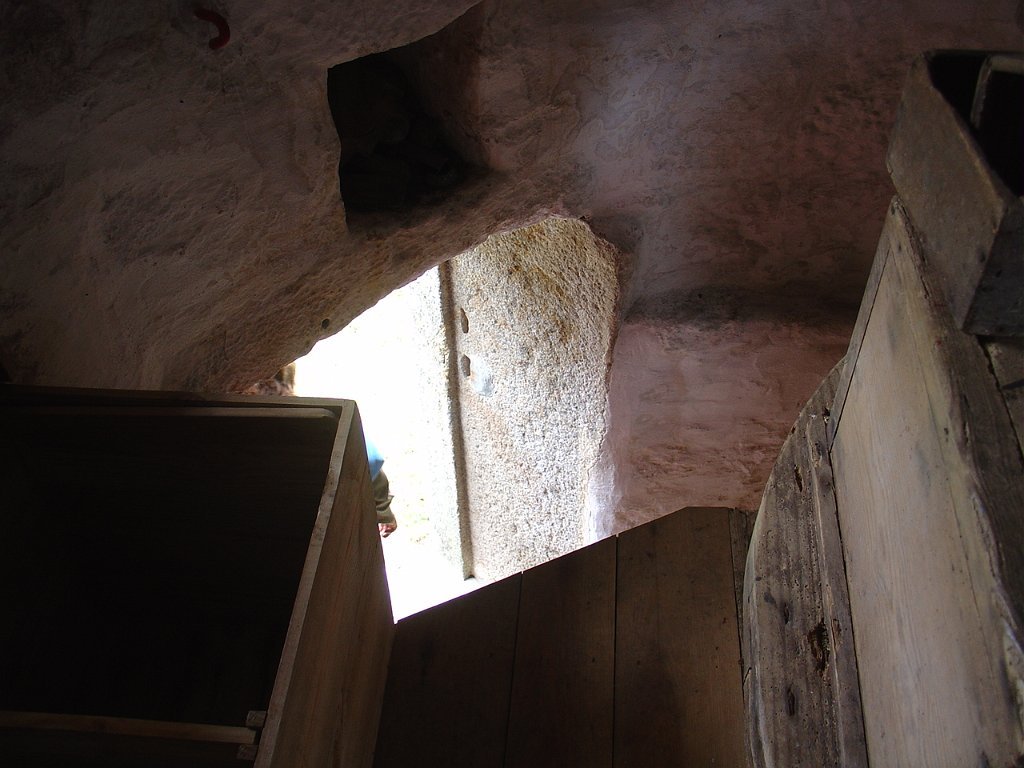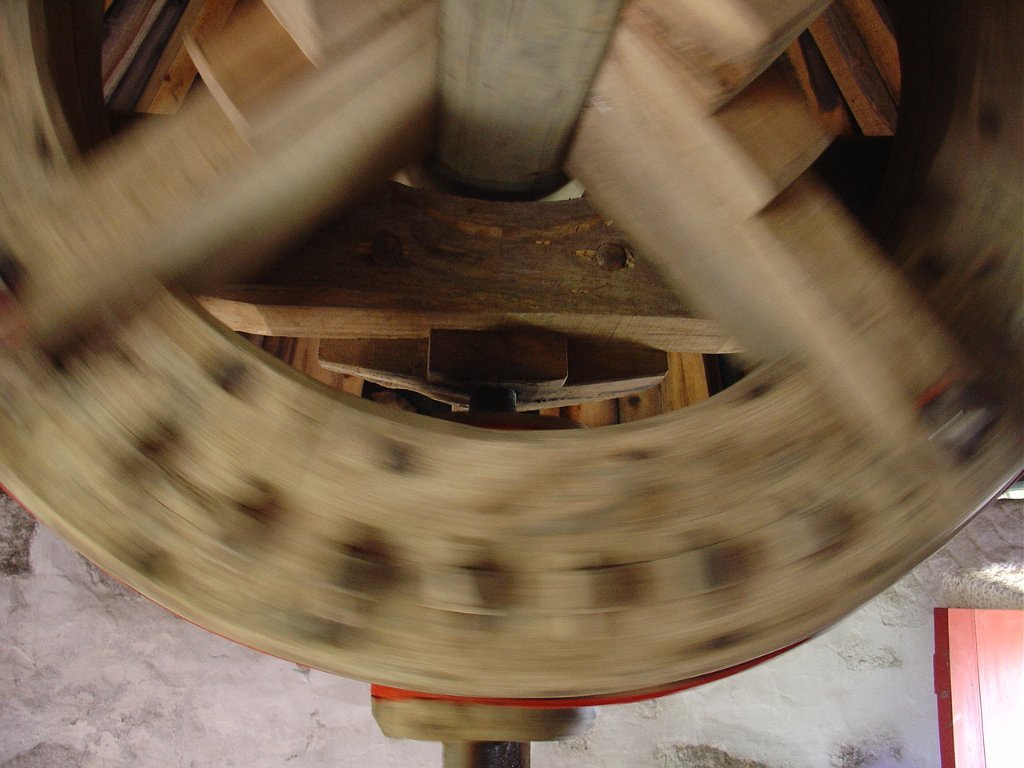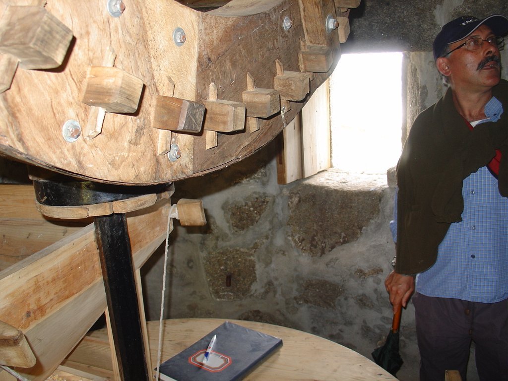 Descemos depois na direcção do Moinho de Vela de pano do Petisco, que nos foi mostrado pelo seu actual proprietário, que muito investiu na sua primorosa reconstrução, conservando intacta a sua traça exterior original e mantendo operacional o seu sistema de moagem.