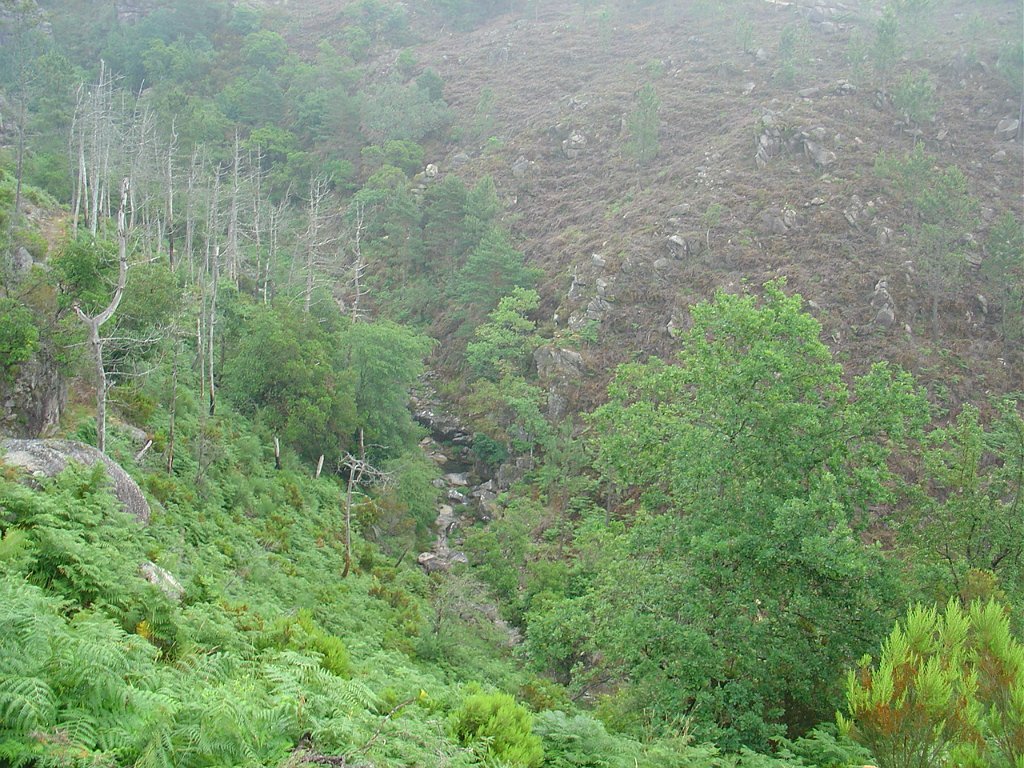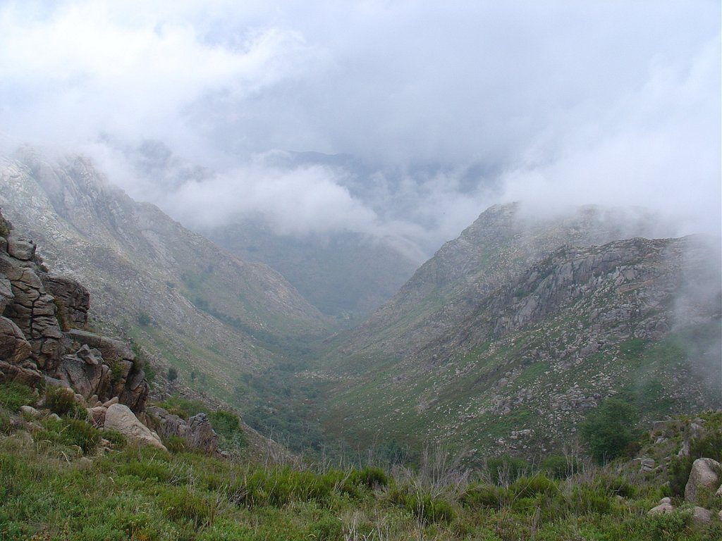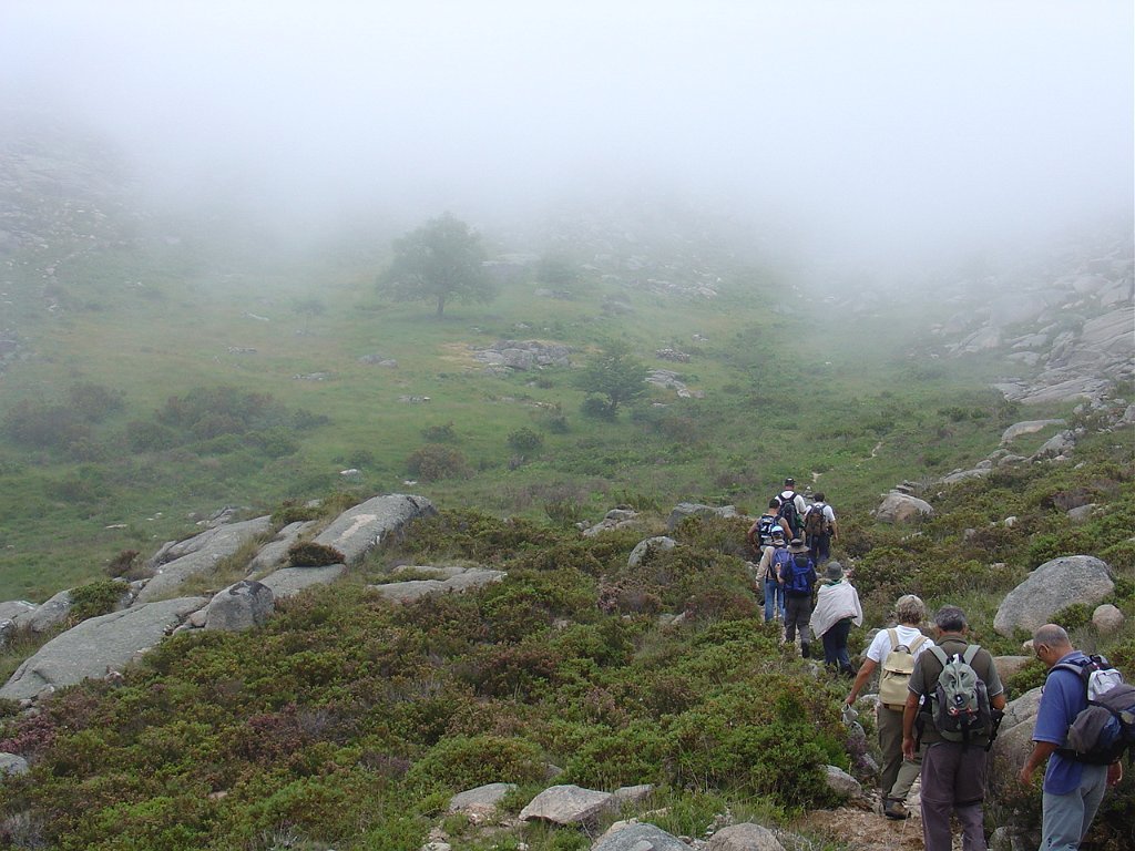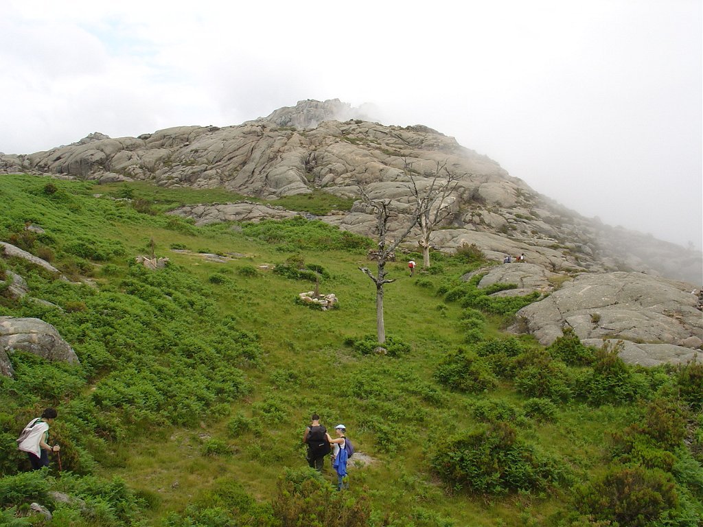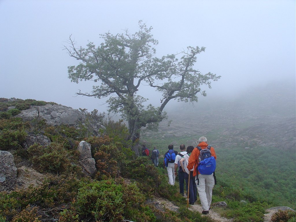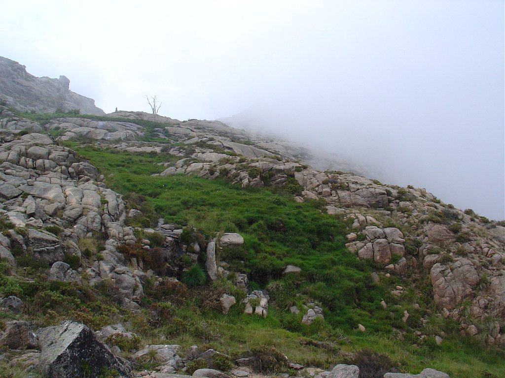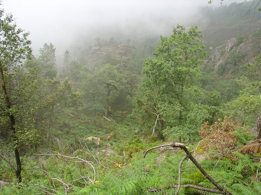 Subimos depois longamente por entre a neblina e mata pela Carvalhosa, na direcção dos Bicos Altos.