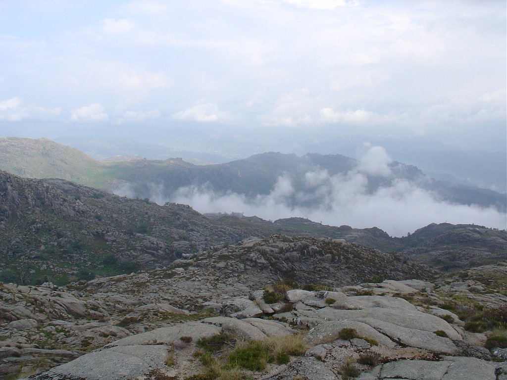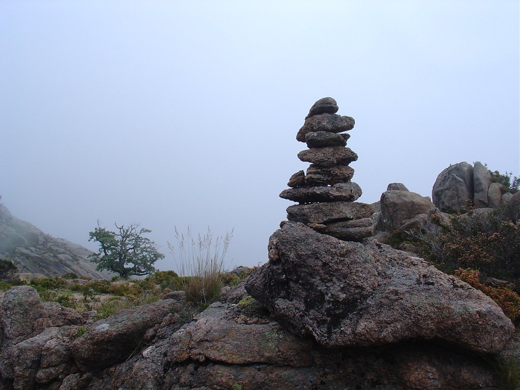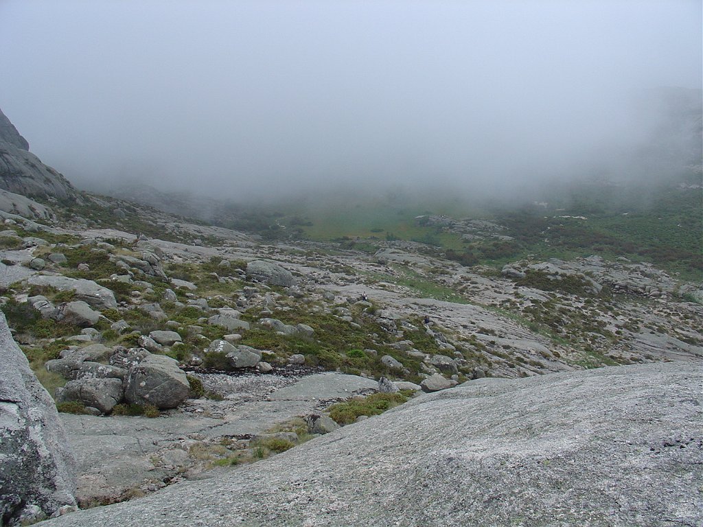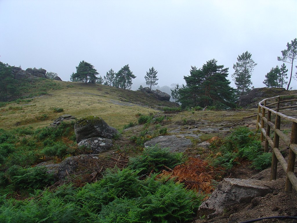 Aí começou uma breve chuvisco, que logo passou, mas que não levantou a neblina que teimava em ocultar a maior parte da paisagem que mal se vislumbrava.