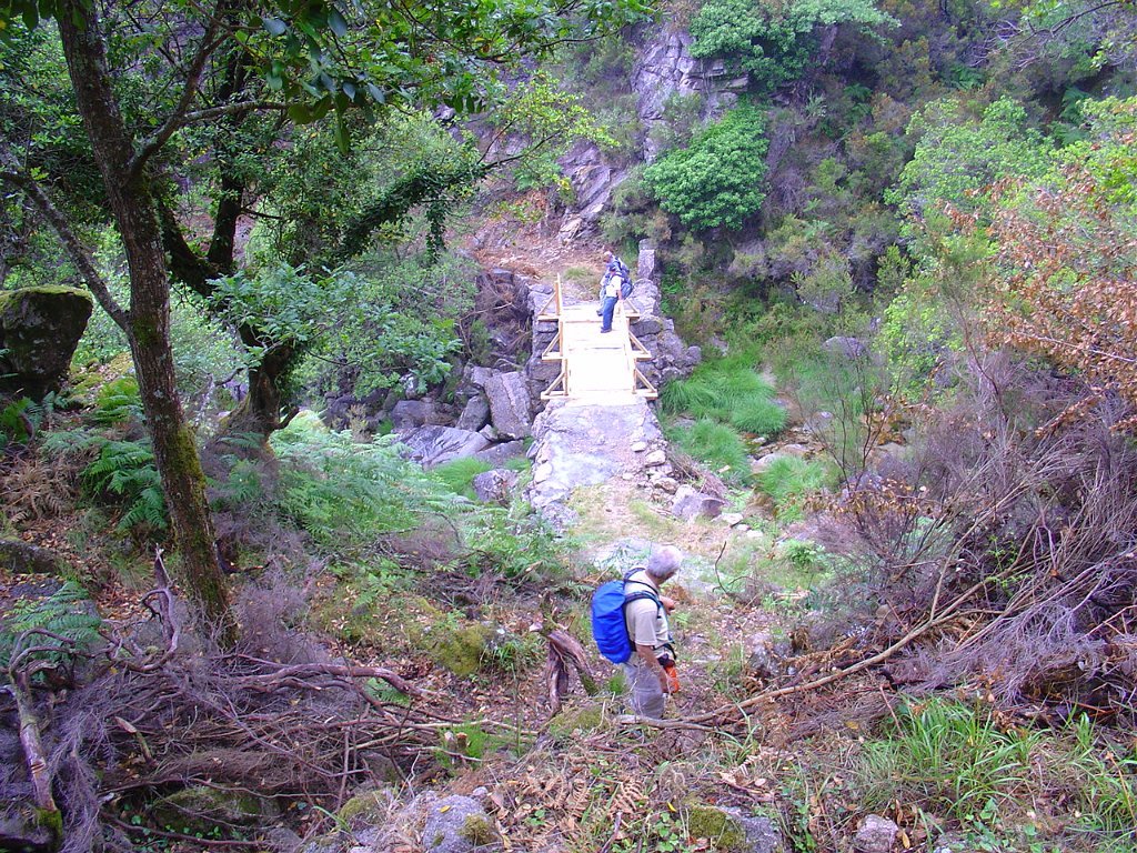 Descemos na direcção da Ponte das Servas, agora totalmente reconstruída, depois de ter sido destruída nas torrentes do último Inverno e subimos para o Curral do Pinhô, cuja cabana foi entretanto recuperada.
