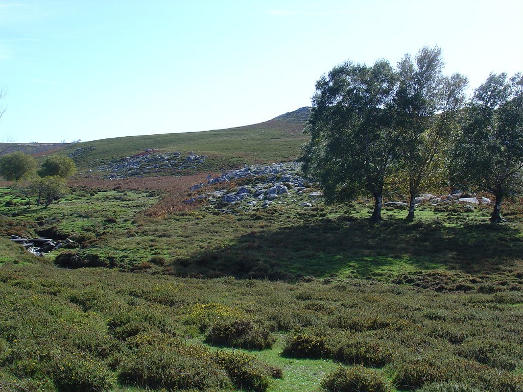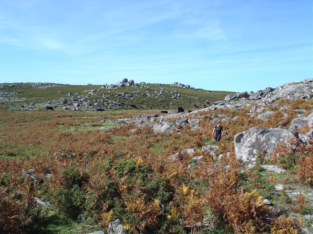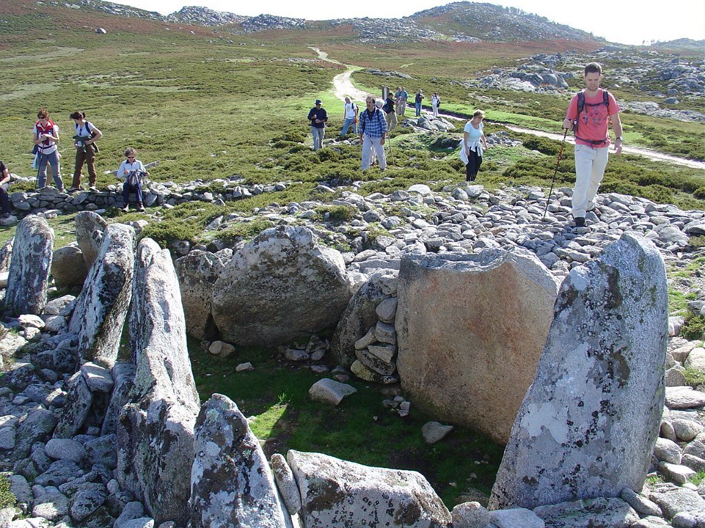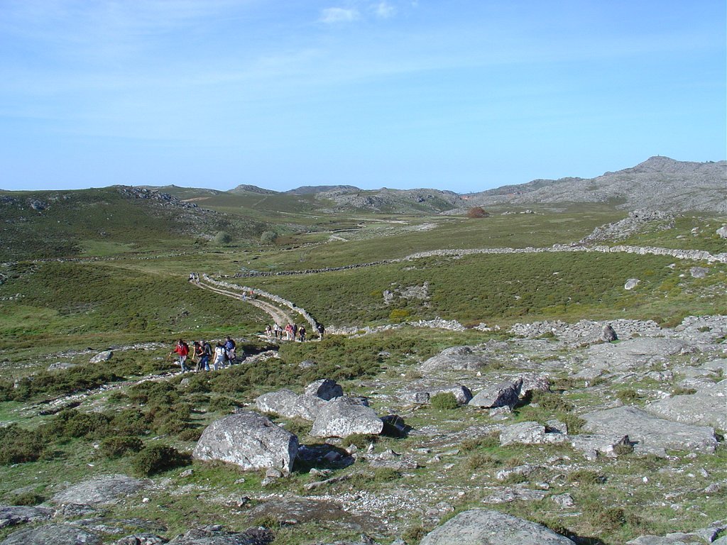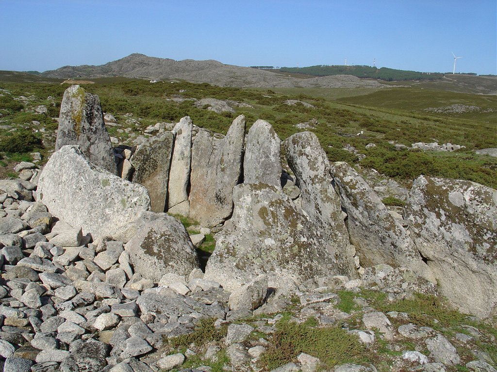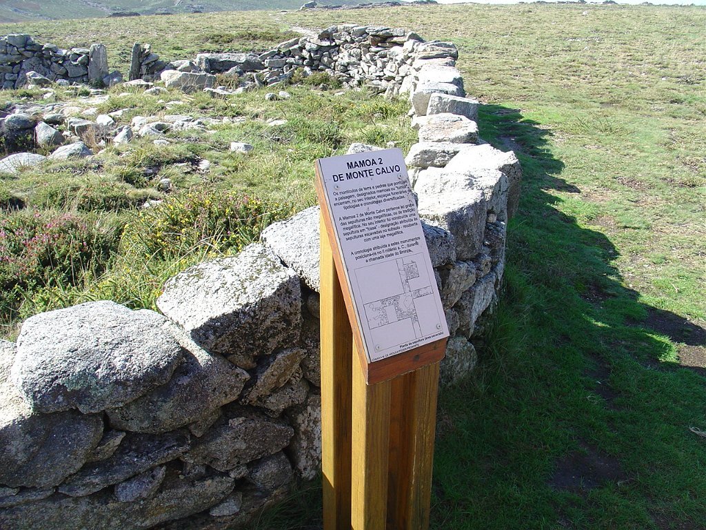 Continua o trilho pela direita, passando pela Manoa da Portela da Anta à sua direita e pouco depois, envereda por um carreiro à esquerda numa distância considerável. Atravessa a estrada principal de asfalto e segue pela direita até à Mamoa do Monte Calvo. Ai toma o carreiro da direita, em pleno monte, até à aldeia da Castanheira.