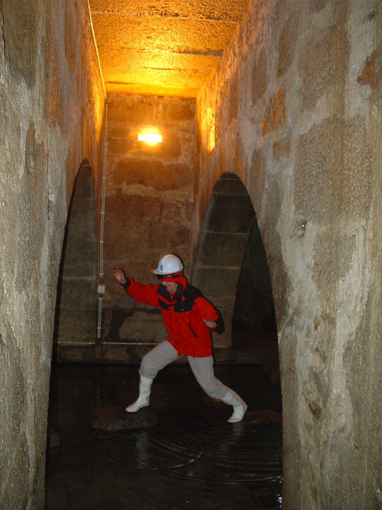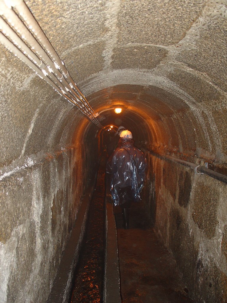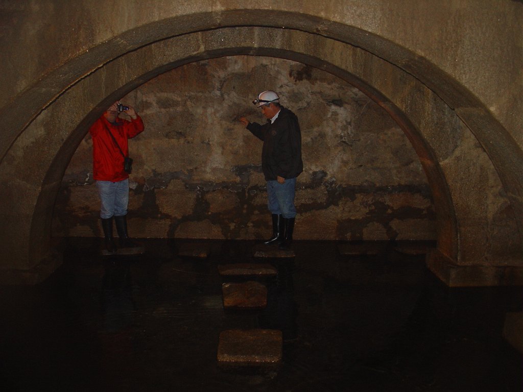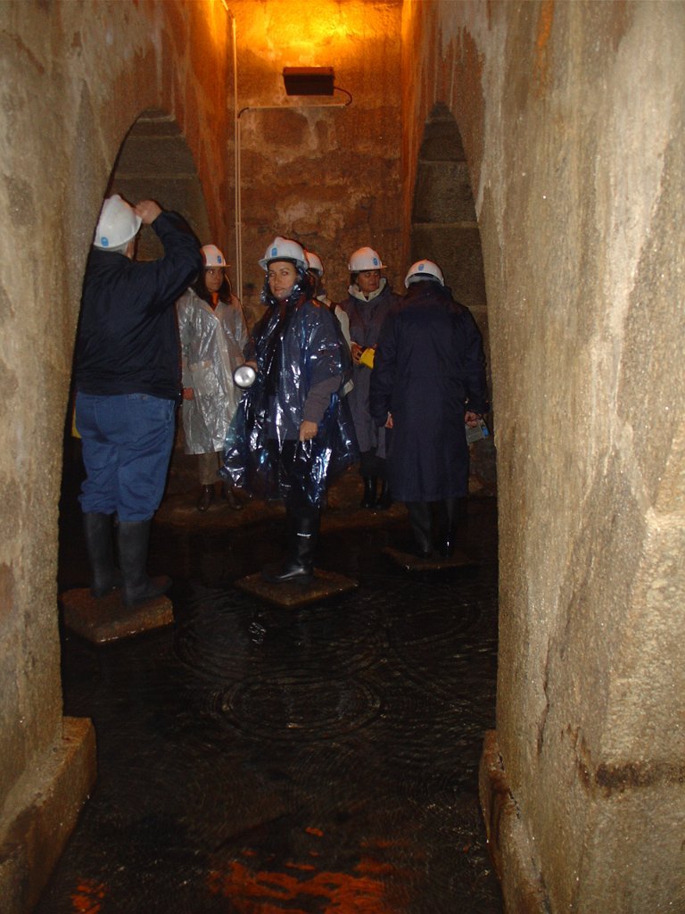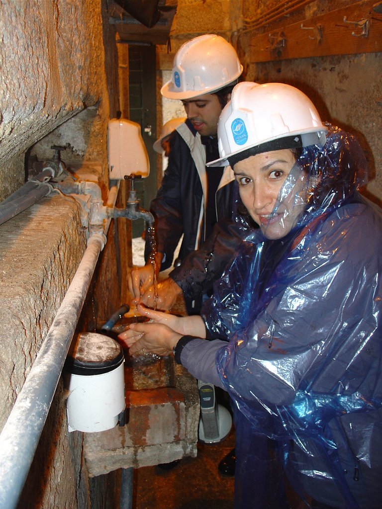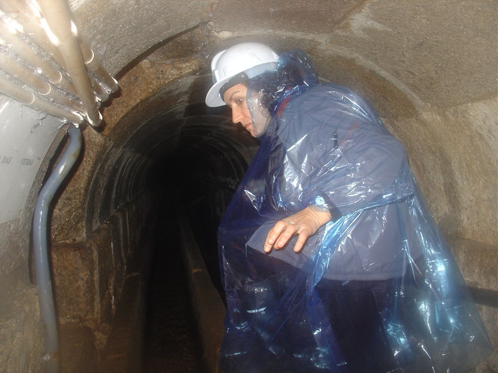 Ouvidas as instruções do guia, calçadas as galochas, colocados os capacetes na cabeça e distribuídas as lanternas, descemos as primeiras escadas e regredimos no tempo, até ao período em que estes túneis, cuja construção foi iniciada em 1597, abasteciam de água as fontes e chafarizes da cidade do Porto.