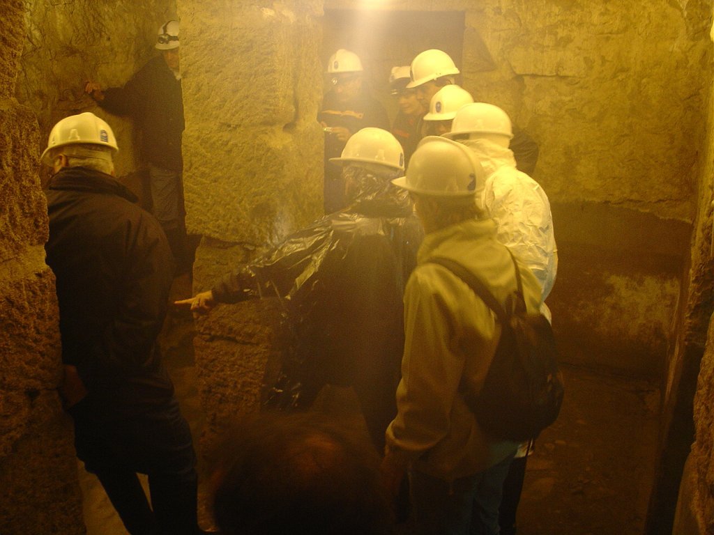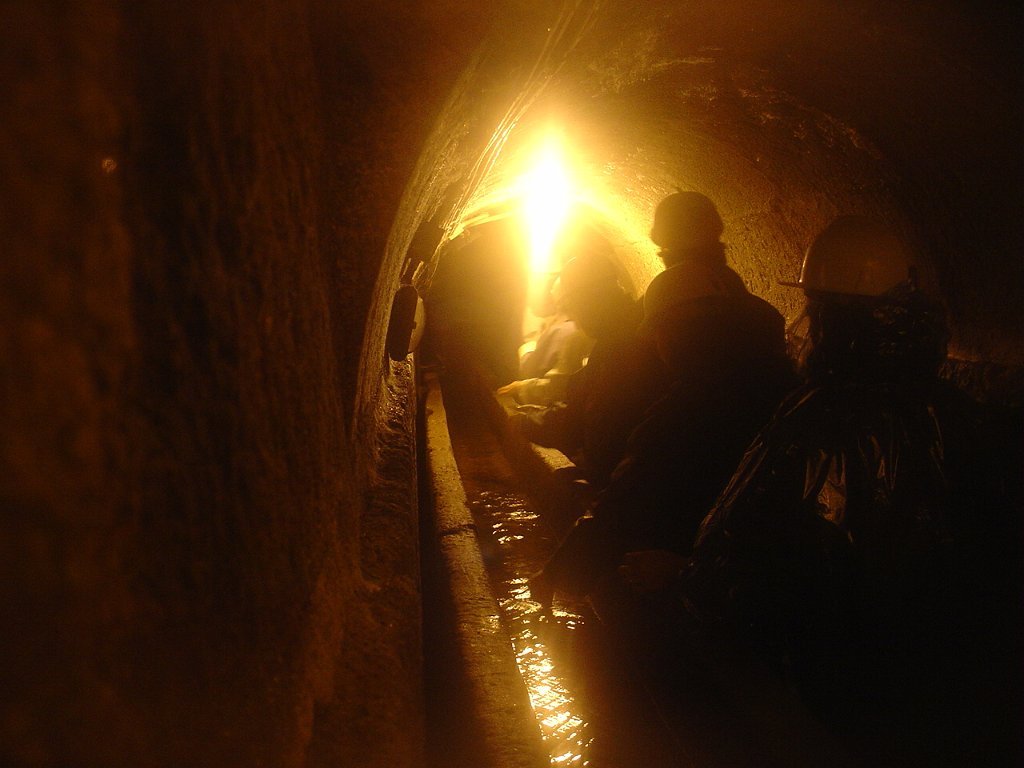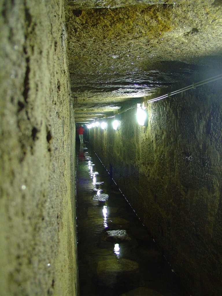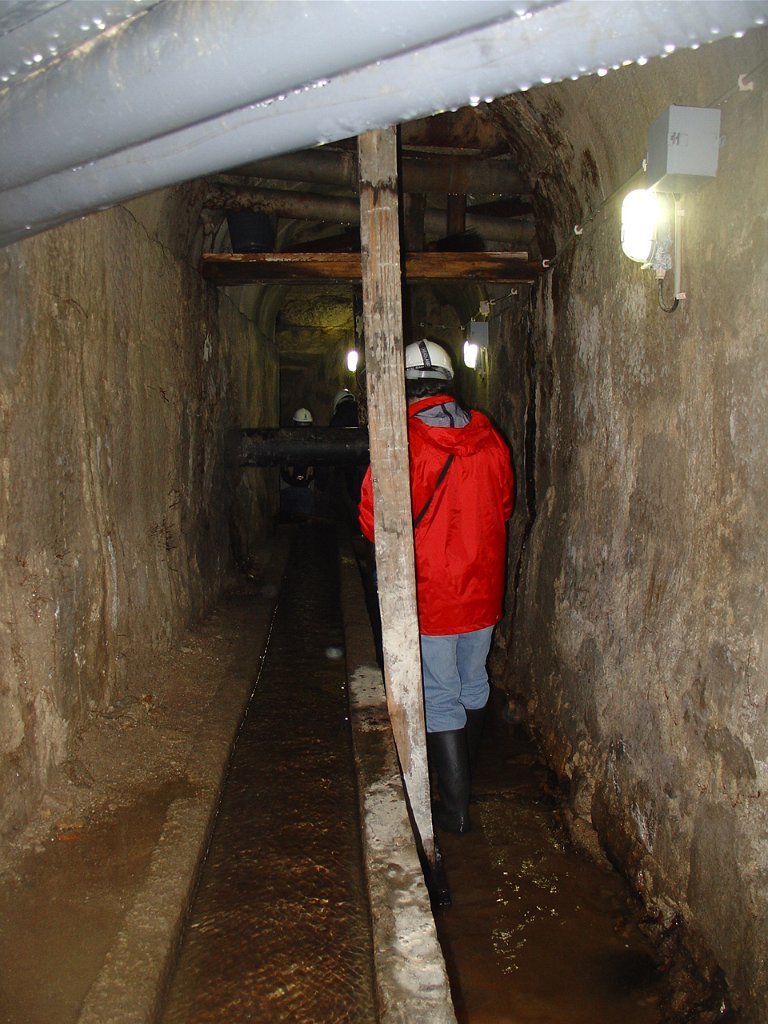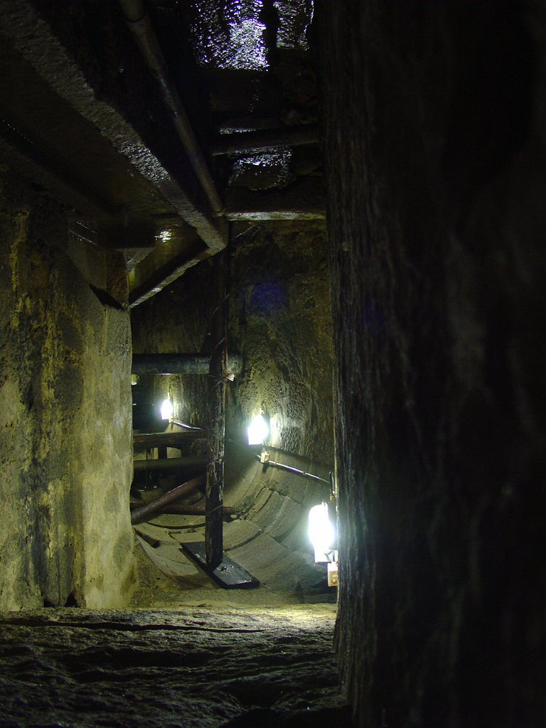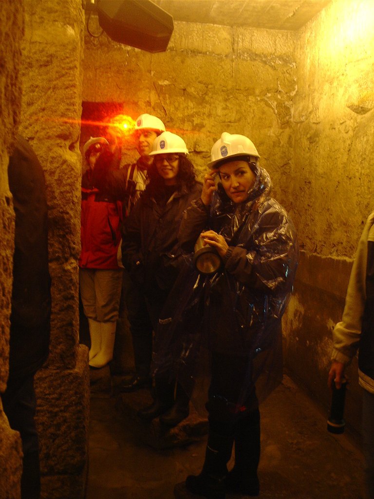 Ouvidas as instruções do guia, calçadas as galochas, colocados os capacetes na cabeça e distribuídas as lanternas, descemos as primeiras escadas e regredimos no tempo, até ao período em que estes túneis, cuja construção foi iniciada em 1597, abasteciam de água as fontes e chafarizes da cidade do Porto.