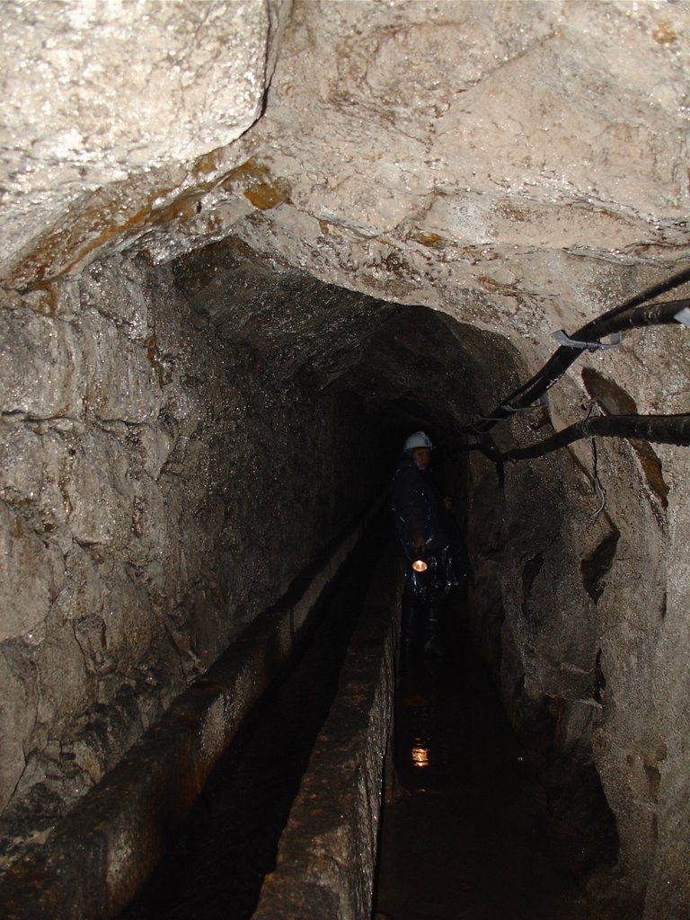 Depois acenderam-se as lanternas para se penetrar num percurso escuro e estreito, que só terminará quase três quilómetros mais à frente, com algumas subidas à superfície pelo meio.