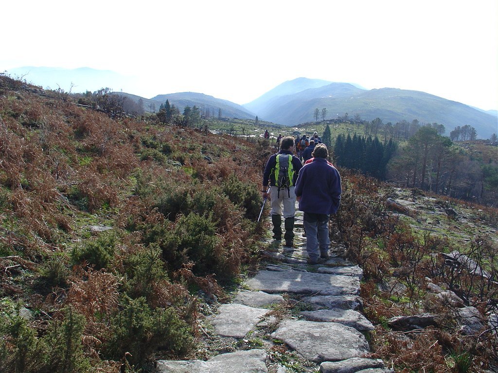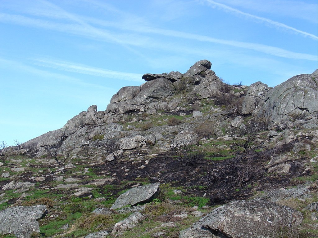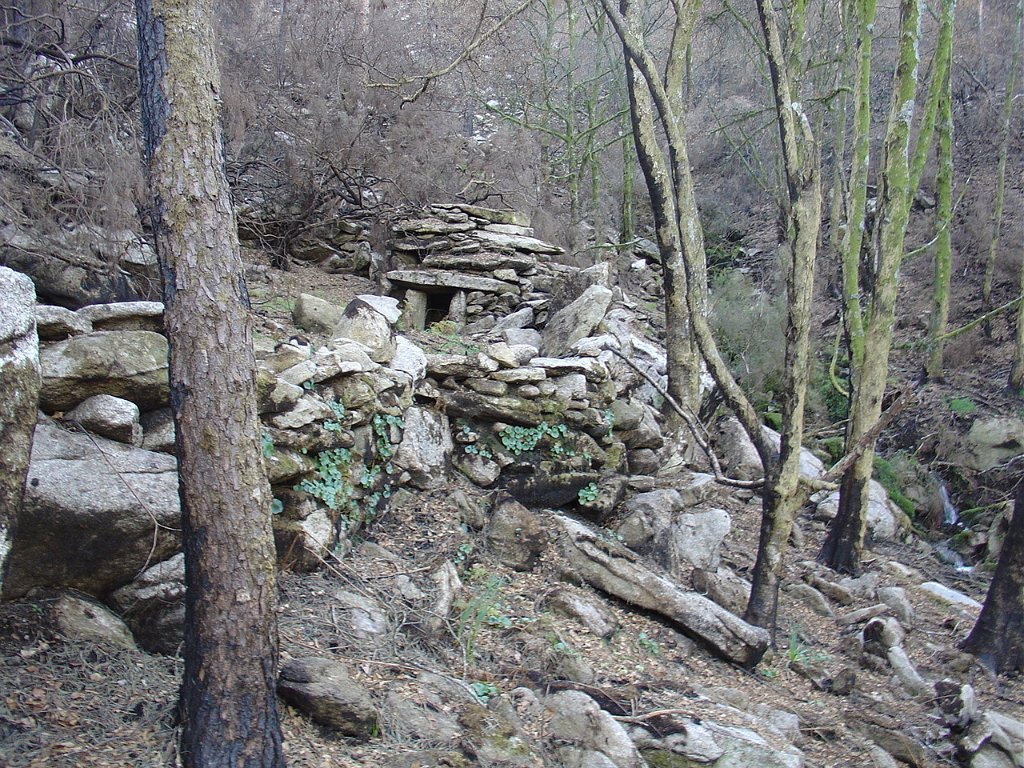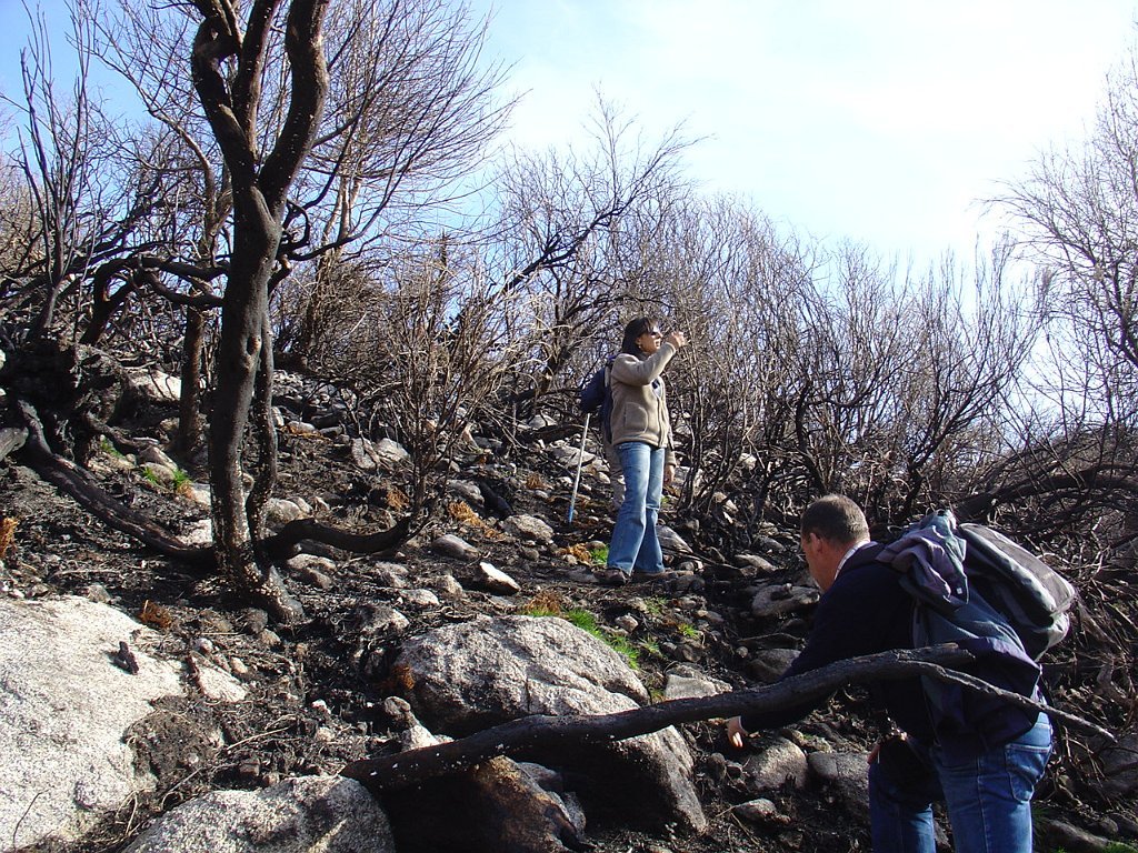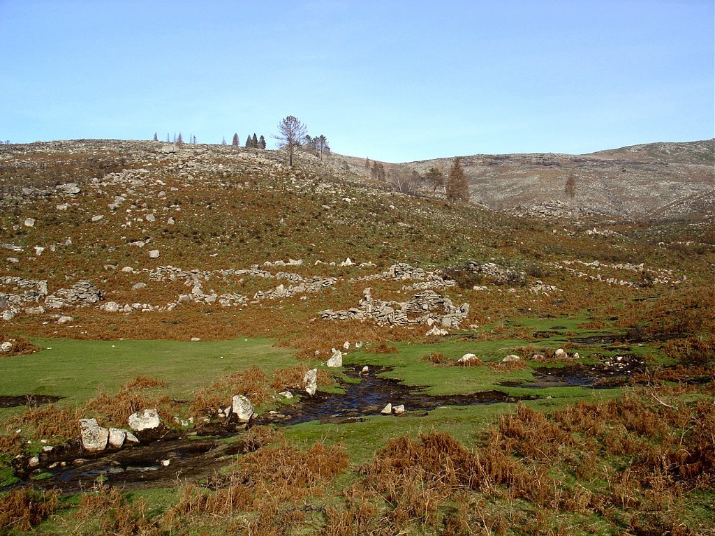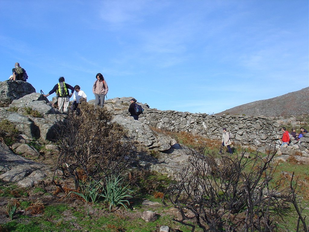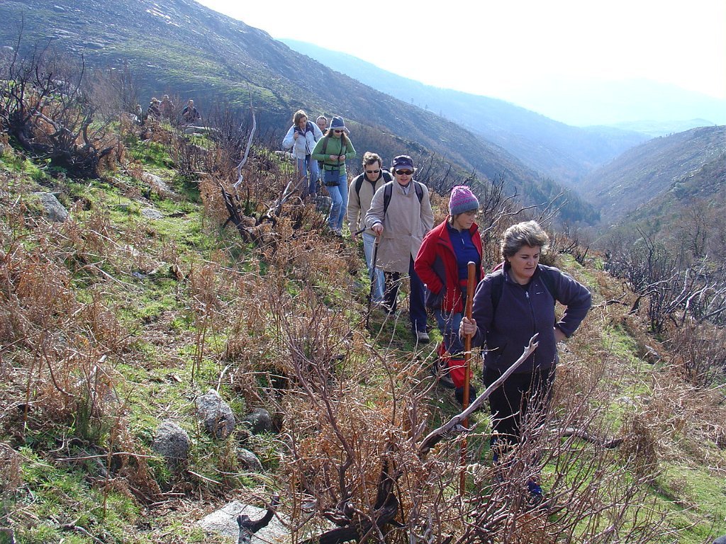Tomamos a calçada por detrás da casa florestal aí existente, subindo em direcção à serra, que nos levou a passar junto à Branda de Currais Velhos, instalada sob um bosque de pinheiros silvestres, agora quase totalmente calcinados pelos incêndios florestais que ocorreram em Agosto último.