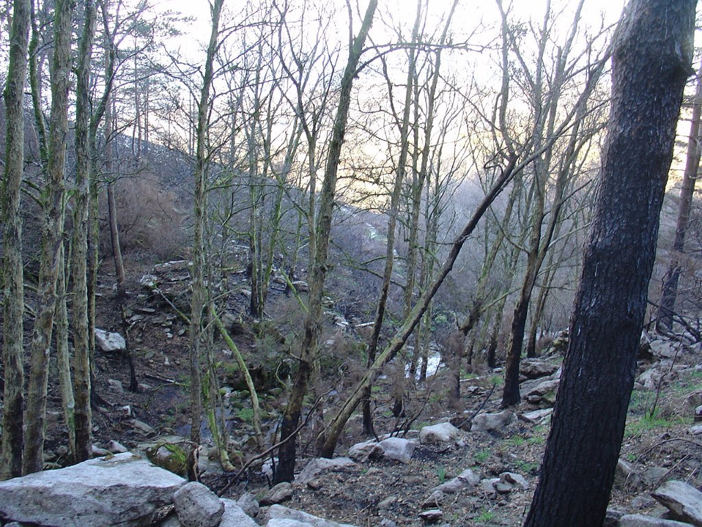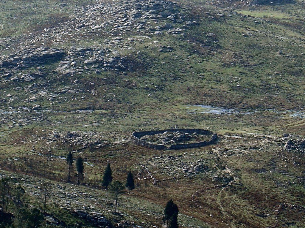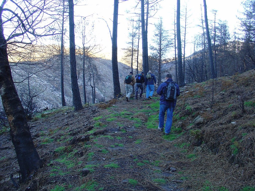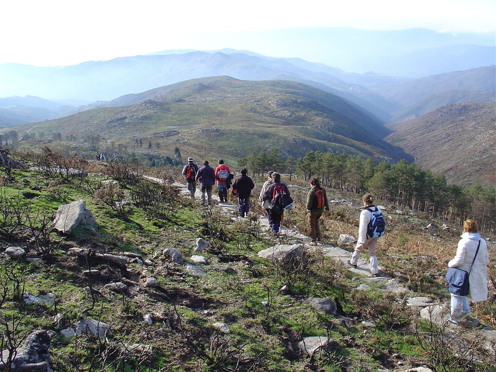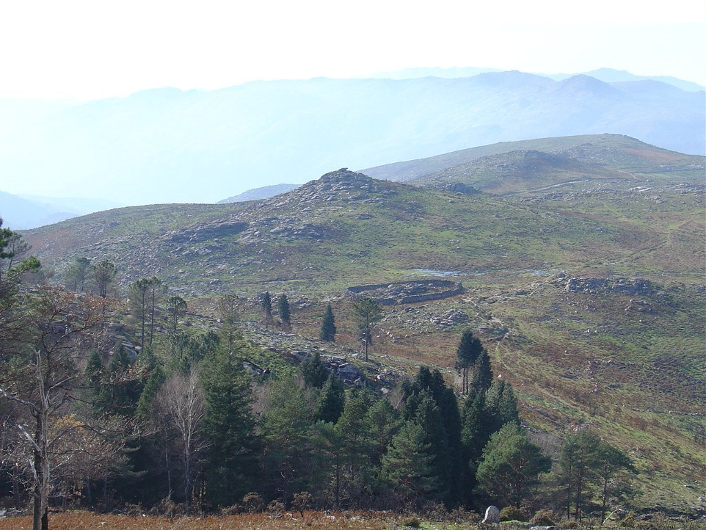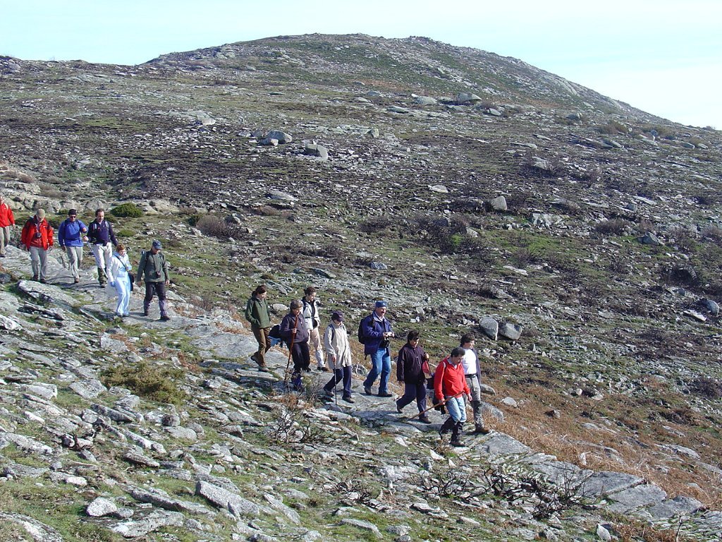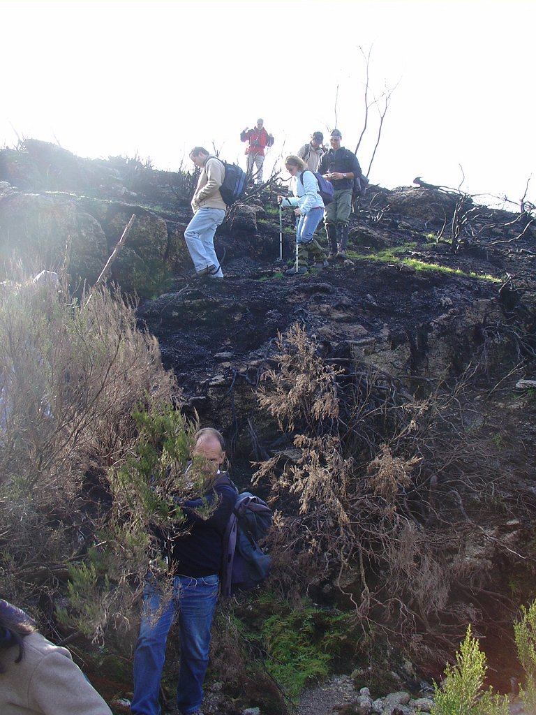 Tomamos a calçada por detrás da casa florestal aí existente, subindo em direcção à serra, que nos levou a passar junto à Branda de Currais Velhos, instalada sob um bosque de pinheiros silvestres, agora quase totalmente calcinados pelos incêndios florestais que ocorreram em Agosto último.