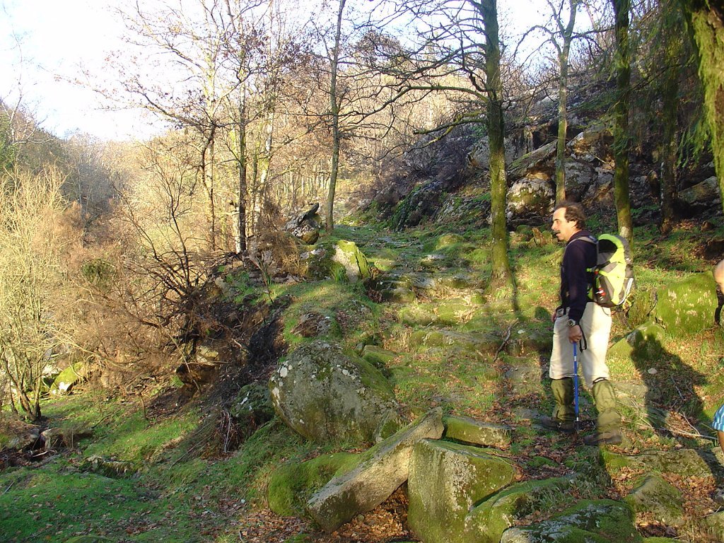 Depois de uma fugida ao lado norte do planalto dos Bicos, para apreciar as vistas a norte, tomamos a excelente calçada que desce directamente para o Fojo da Cabrita, apreciando a paisagem a nossos pés e a construção cuidada dessa calçada, que a fez resistir quase inalterada até aos nossos dias.