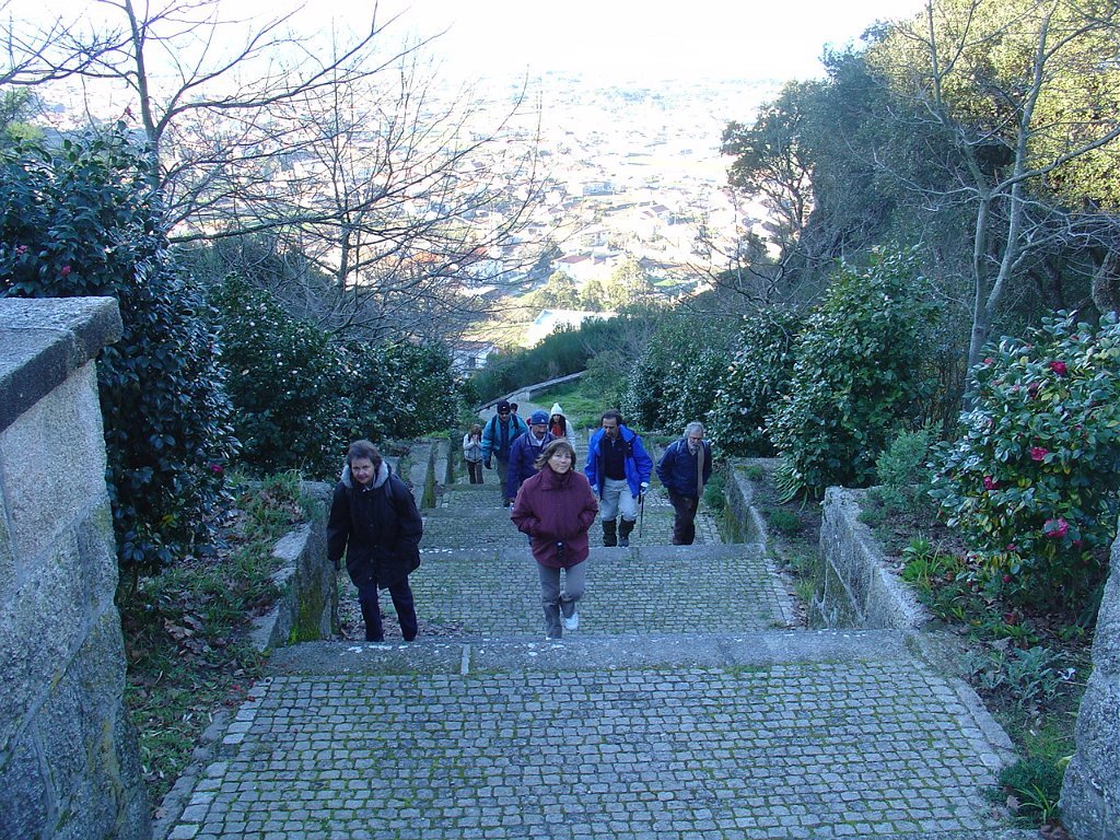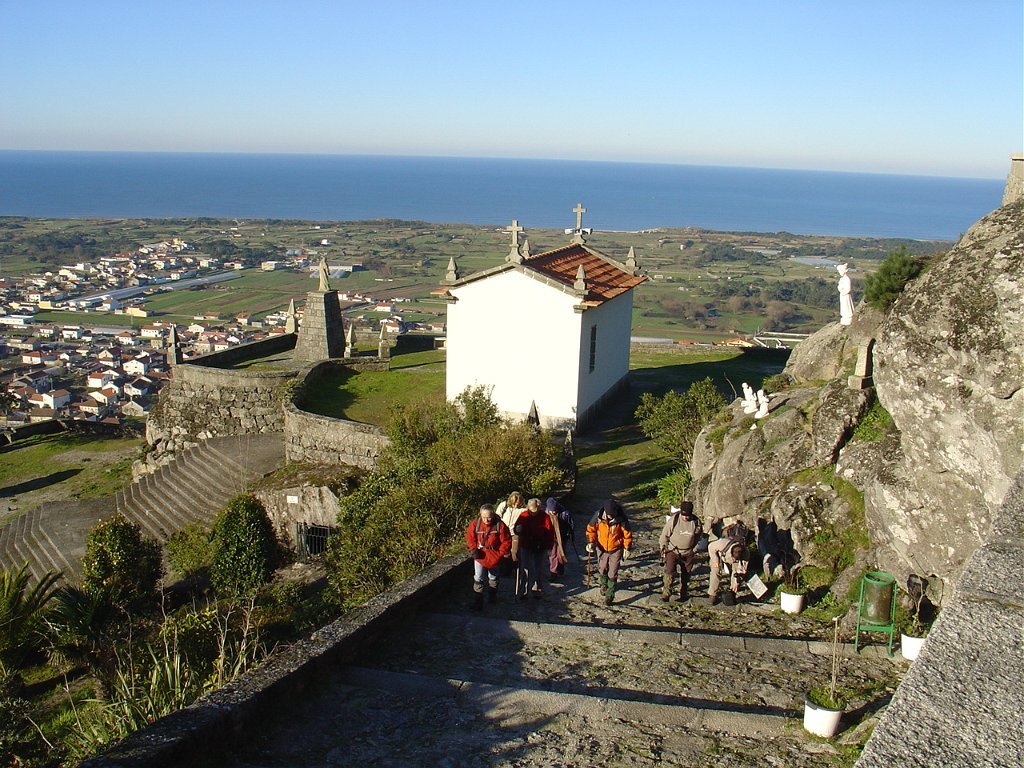 Começamos por subir a escadaria de Sr.ª da Guia, cujo miradouro nos deixa visualizar as paisagens da Costa Atlântica, desde S. Bartolomeu do Mar até Viana do Castelo.