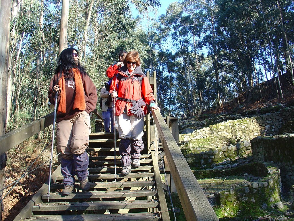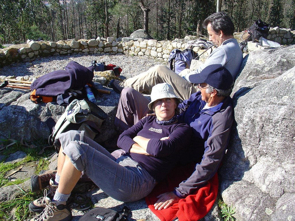 Continuamos depois, sempre por o estradão até ao Castro de S. Lourenço, parcialmente reconstruído, que apreciamos de passagem, pois a hora era já tardia e queríamos fazer a refeição na Capela de S. Loureço, onde um sol magnífico nos aguardava, e foi num recanto da base da escadaria, que fizemos uma aprazível refeição ao grupo.