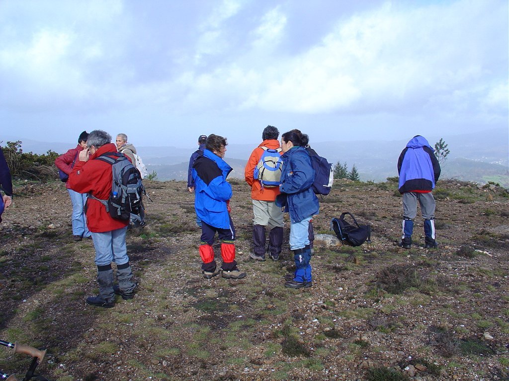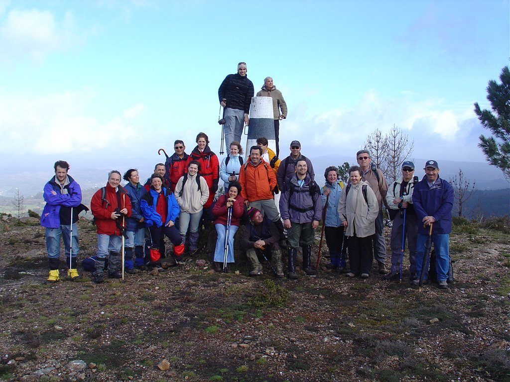 Aí fizemos a foto de grupo, com as vistas panorâmicas sobre o Corno do Bico e Vale do Coura.