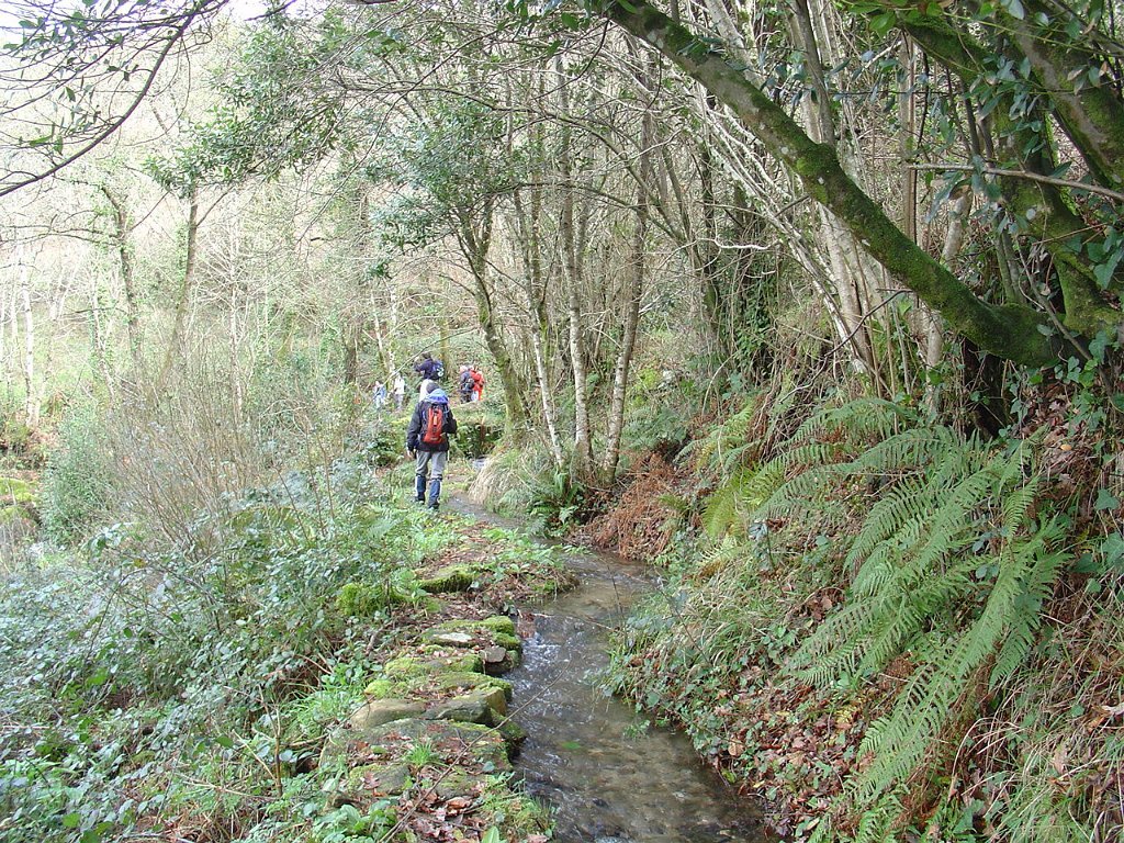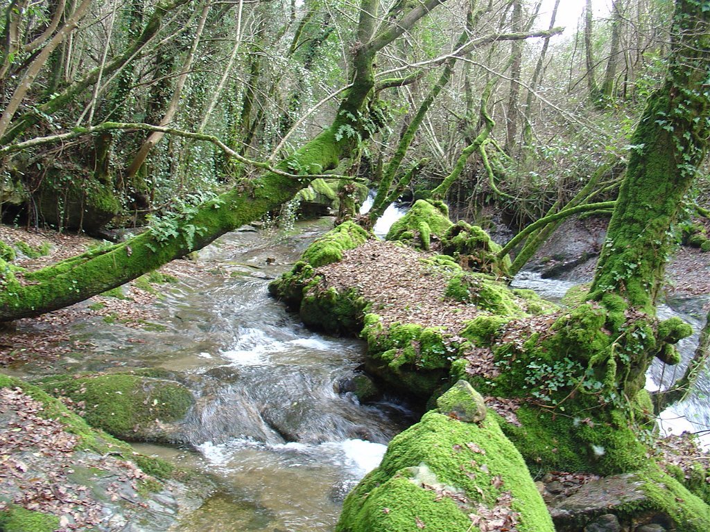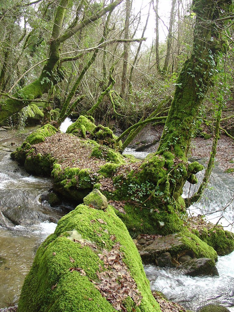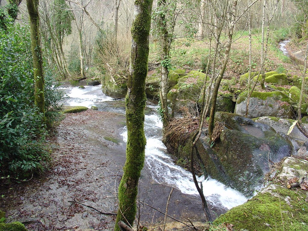 Arrancamos logo de seguida, saindo pelas traseiras da capela para o caminho florestal, que nos levou ao lugar de Codeçal em Cerdeira, saindo dos terrenos agrícolas e penetrando nos bosques, até atingir o ribeiro, onde está assinalada a união de 2 percursos pedestres.