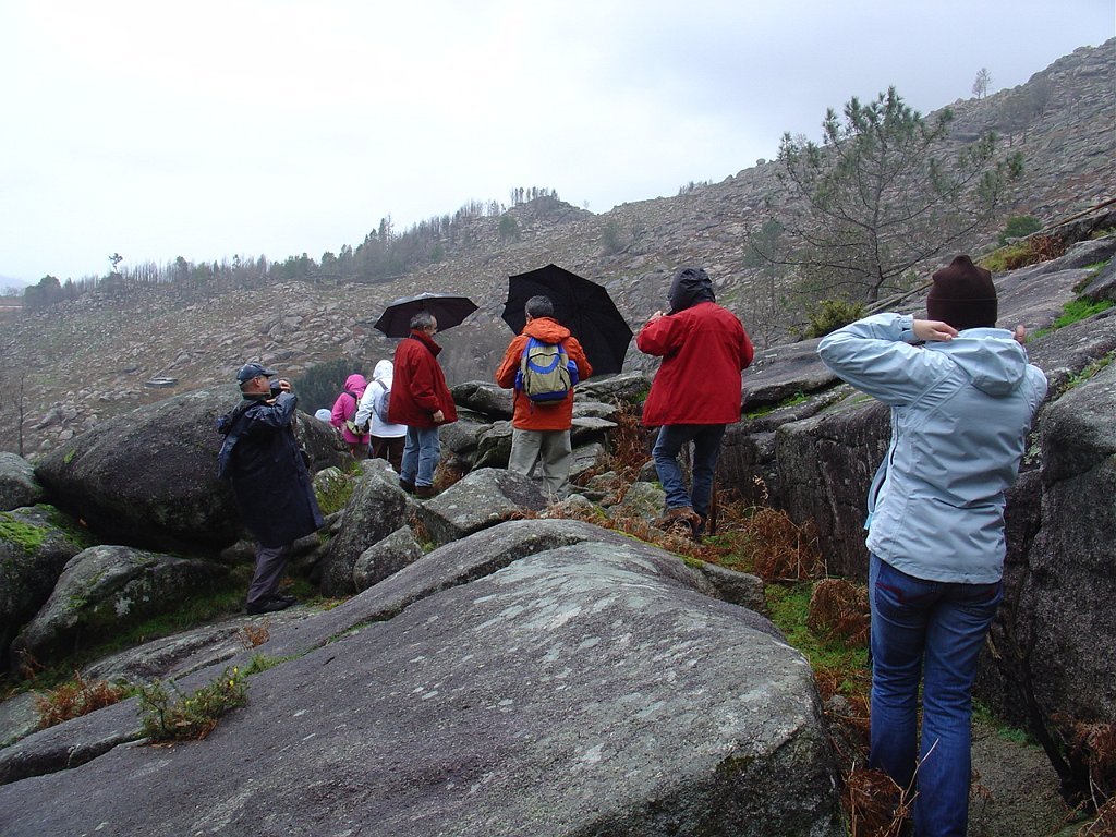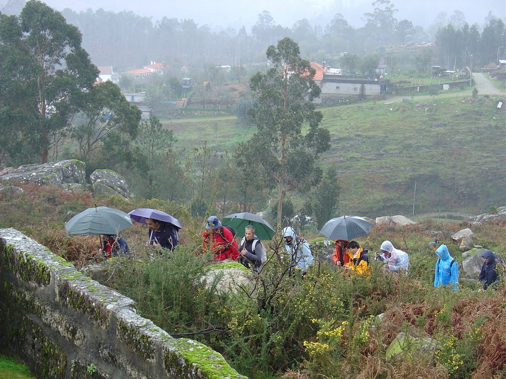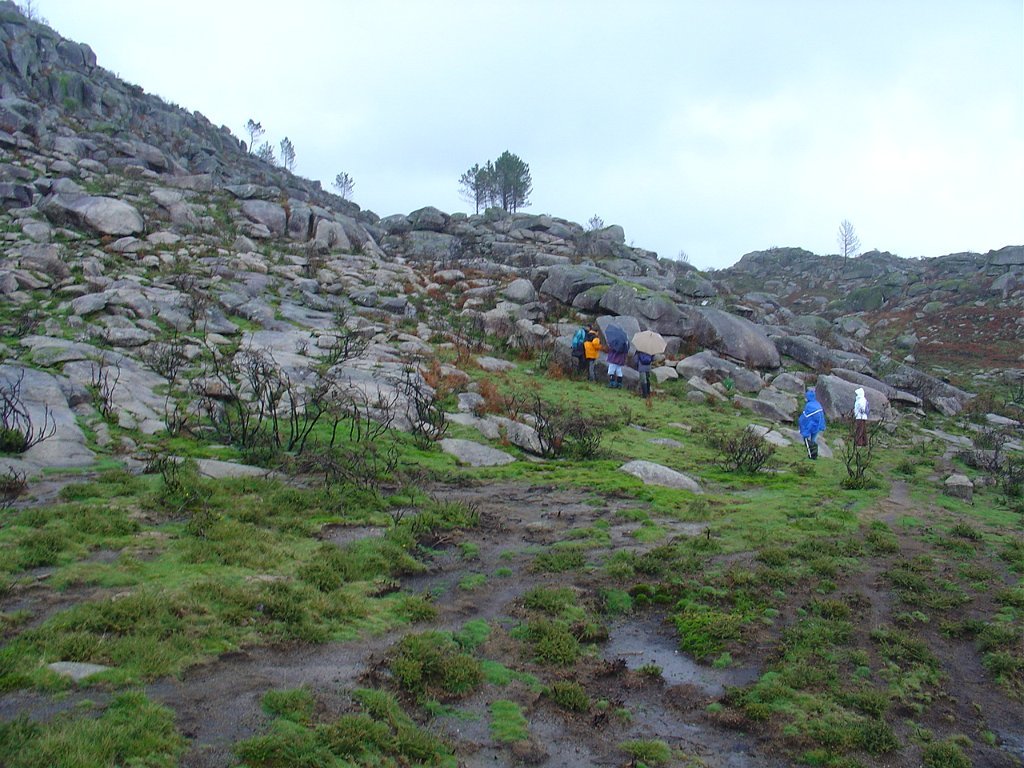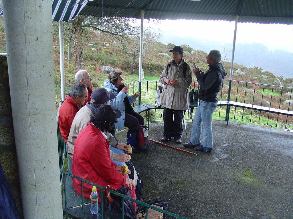 Aí fizemos uma pausa para retemperar as forças e esperar que a chuva abrandasse, de modo a nos permitir continuar a subida até ao cruzamento do caminho florestal, já nosso conhecido das romarias Do S. João D’Arga.