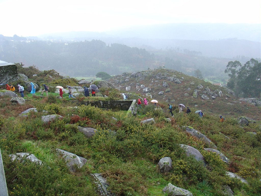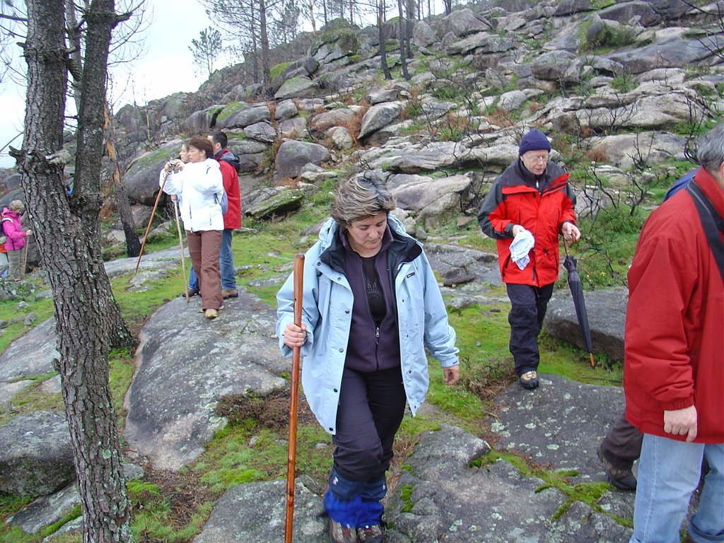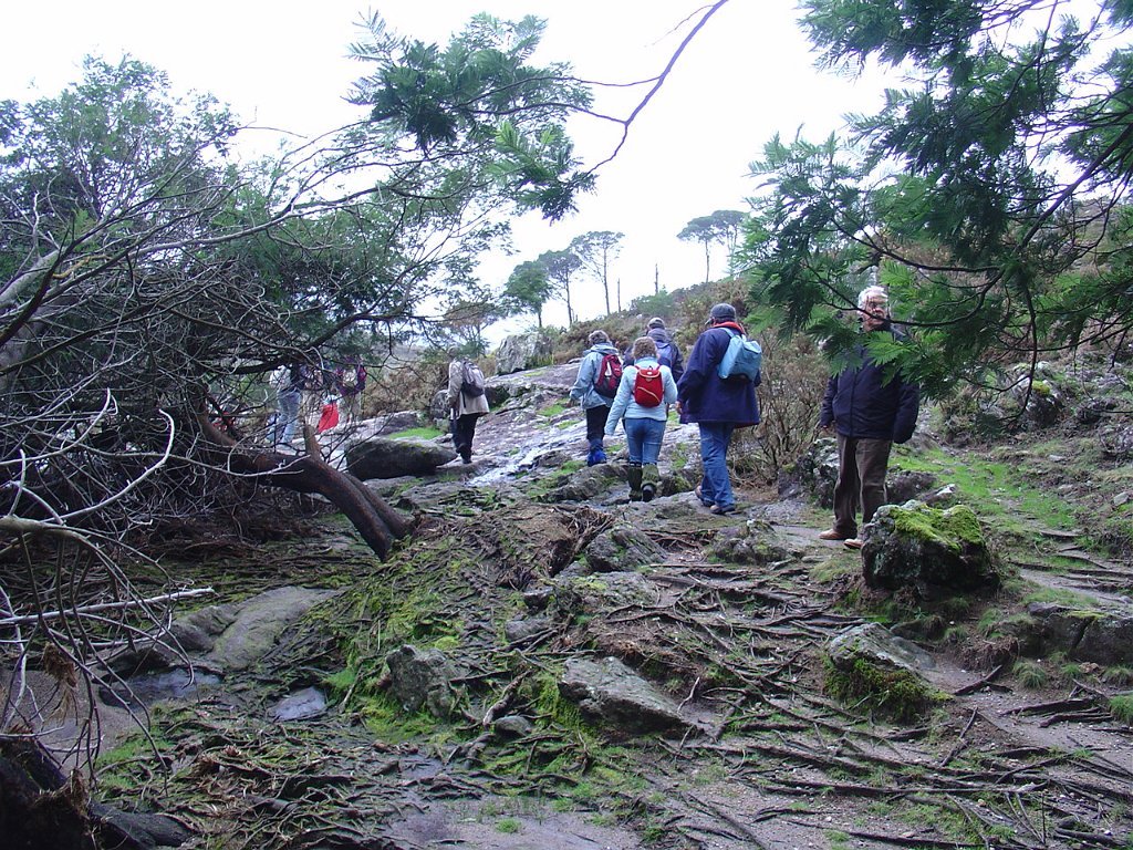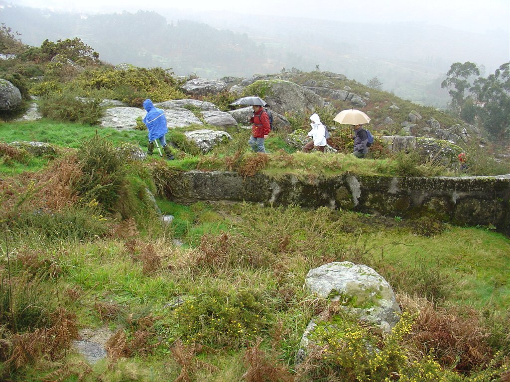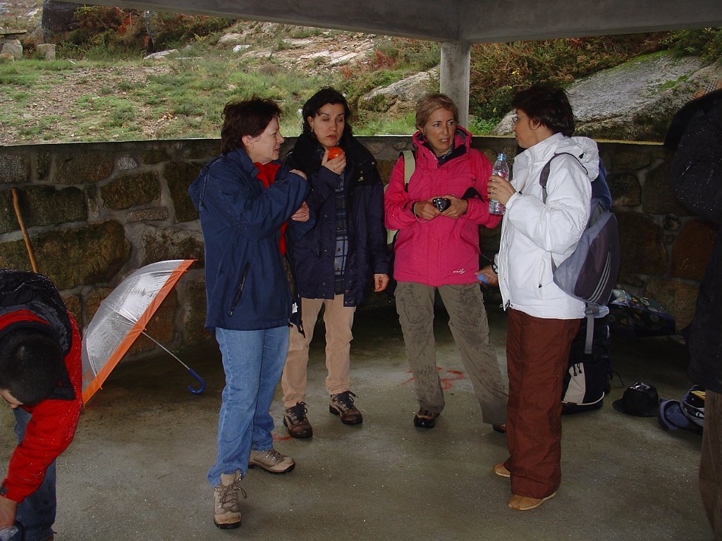 Aí fizemos uma pausa para retemperar as forças e esperar que a chuva abrandasse, de modo a nos permitir continuar a subida até ao cruzamento do caminho florestal, já nosso conhecido das romarias Do S. João D’Arga.