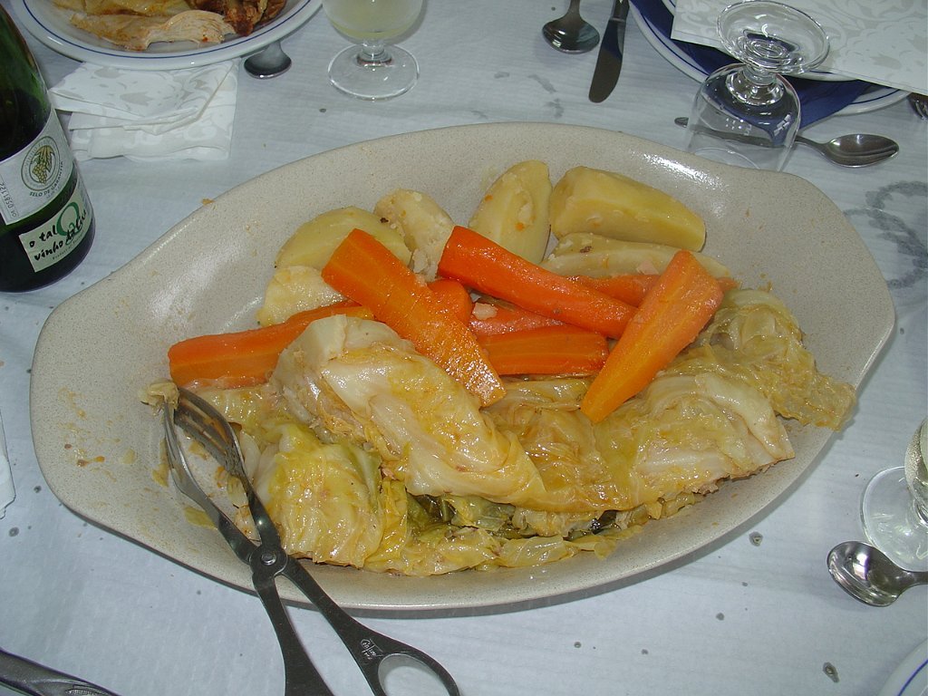 Depois de uma pausa de preparação, lá passamos à sala, onde desfrutamos o tão aguardado Cozido à Portuguesa, de carnes bem caseiras, ponto alto deste triste dia de Inverno, que acabou em beleza perante a farta refeição.