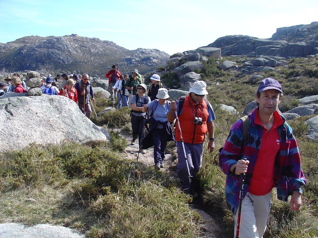 O grupo era muito numeroso, pois compareceram à chamada 55 participantes, que depois de uma breve indicação do Miguel Moreira do percurso e dos cuidados a ter na serra, se aventuraram na subida íngreme que nos guindou até ao Alto do Mouro no Prado do Vidoal.