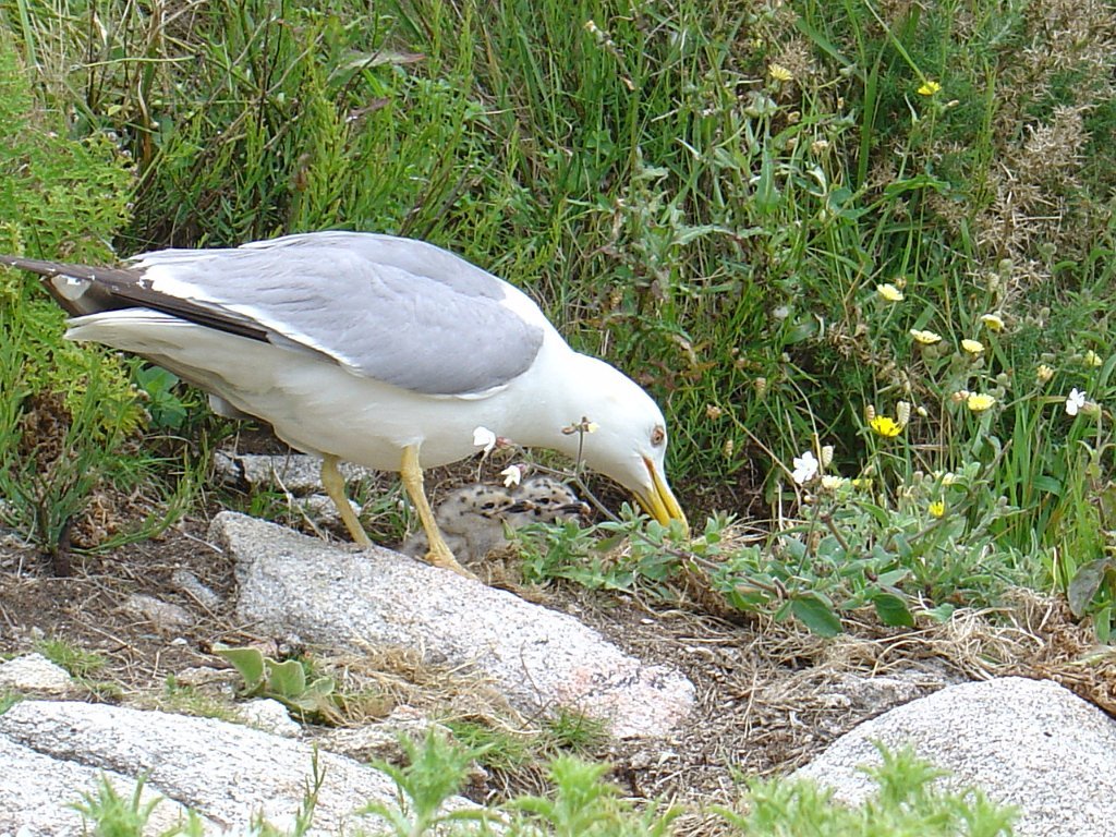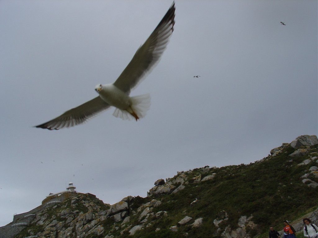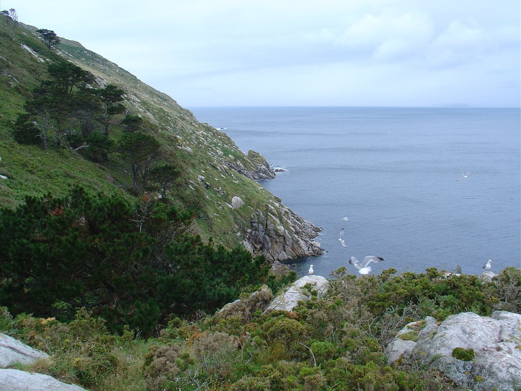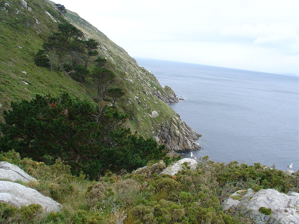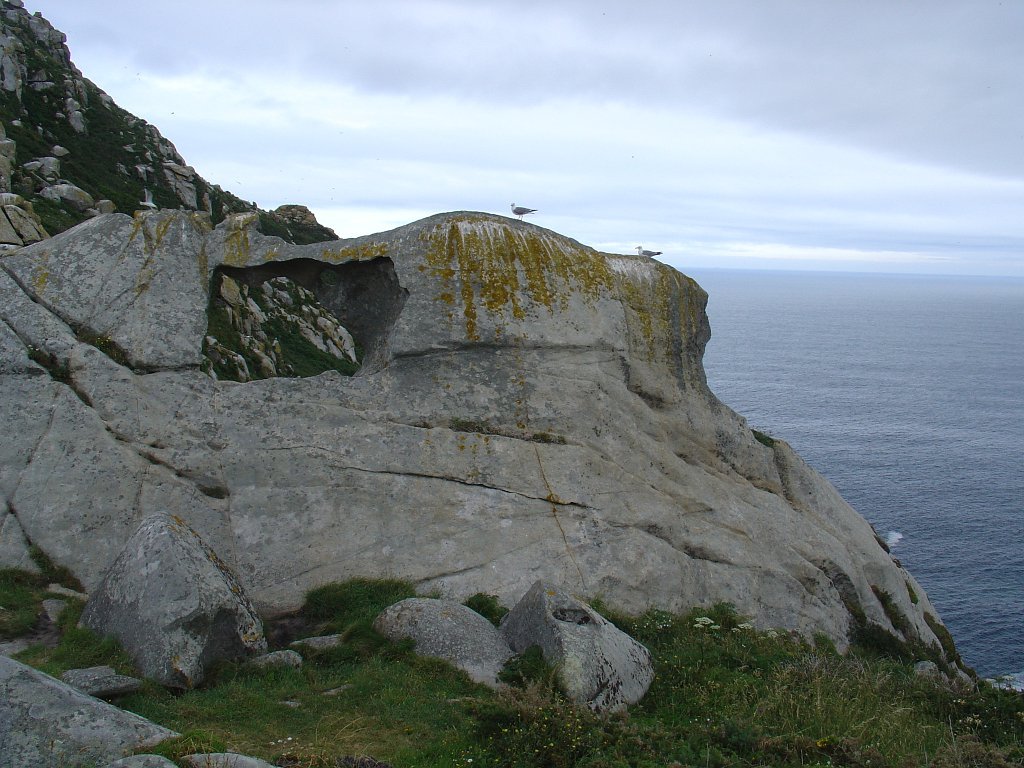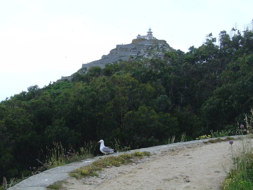 Chegados, tomamos o caminho do Farol de Ciés, subindo a encosta, pejada de ninhos de pássaros, nomeadamente gaivotas, que galhardamente defendem os seus ninhos dos muitos turistas, investindo sobre eles ameaçadoramente, numa tentativa de proteger os ovos e crias, que aqui e além estão semeadas nos penhascos.