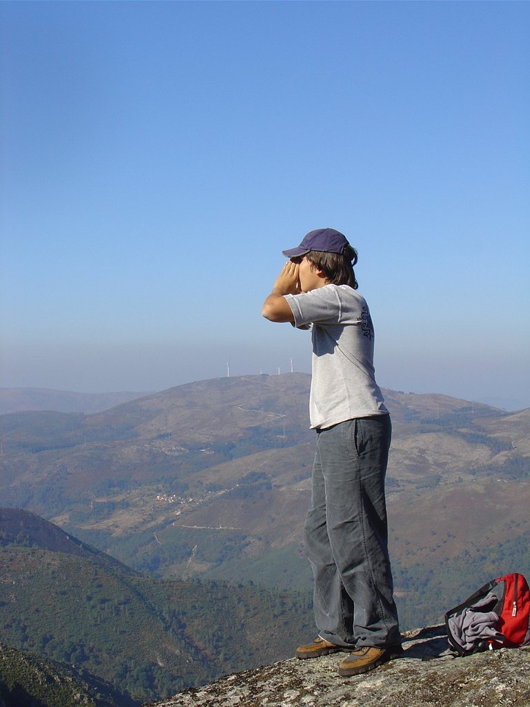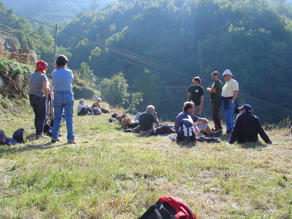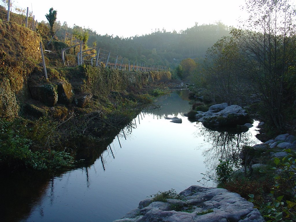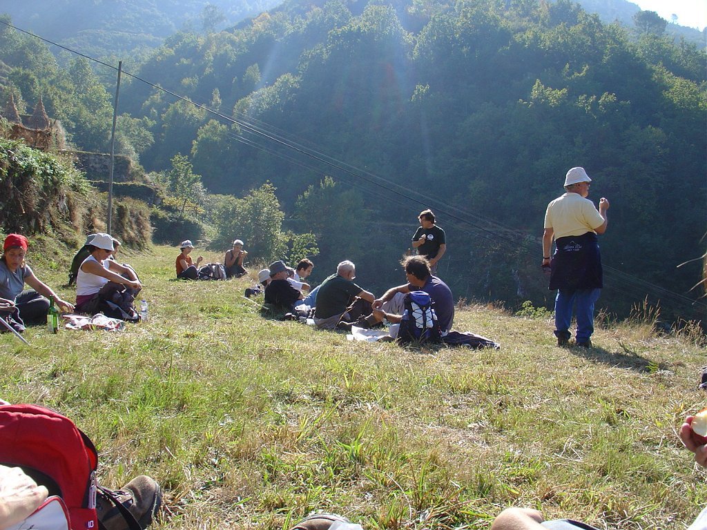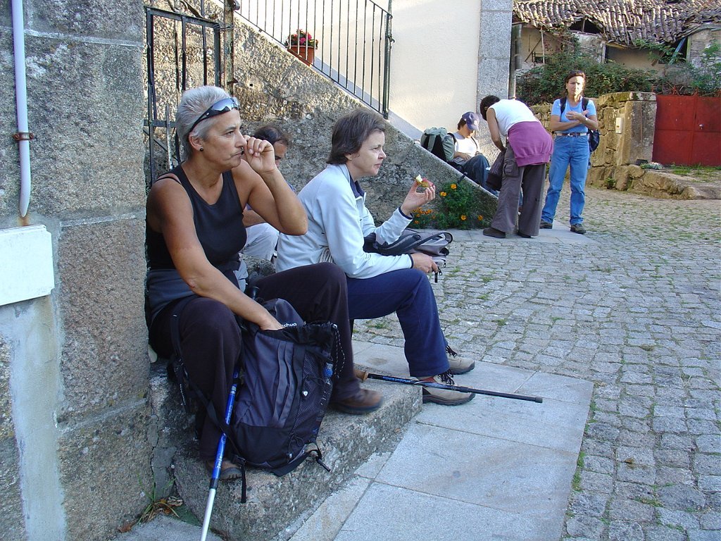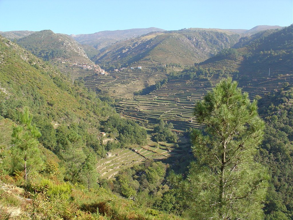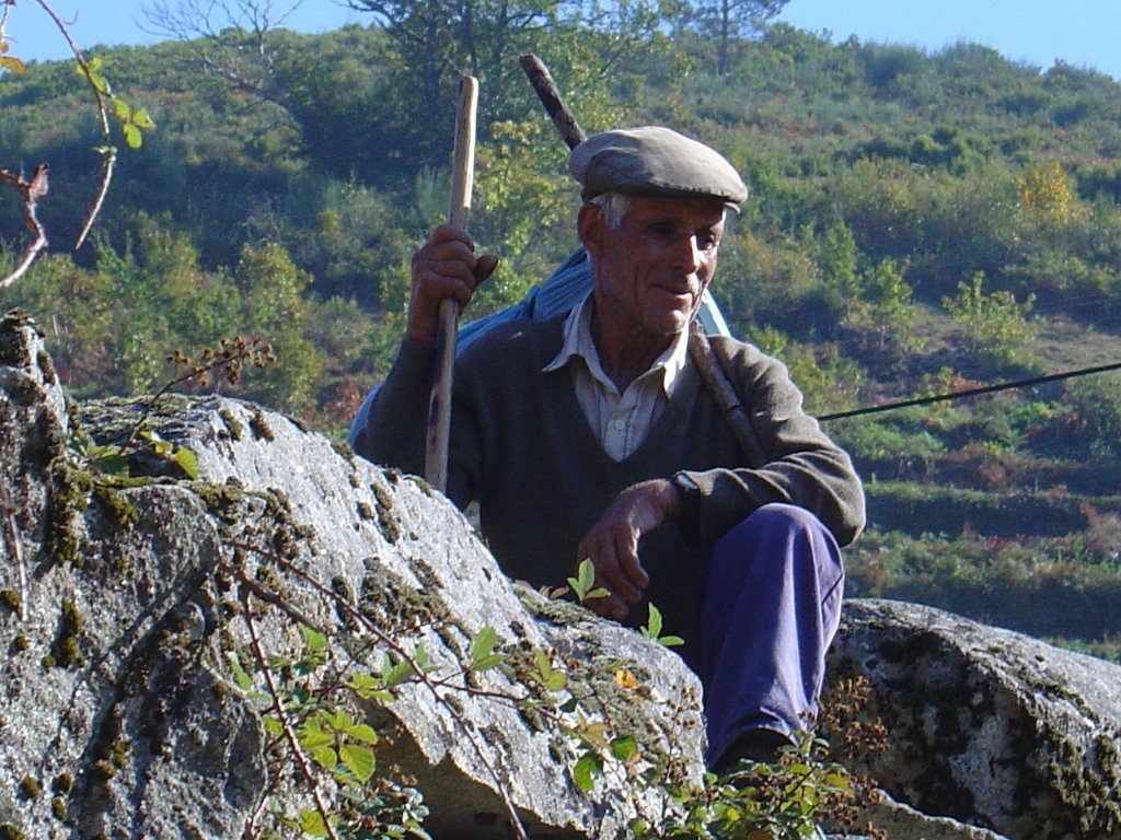 Aí fizemos a já tardia pausa para almoço num socalaco junto às alminhas, observando o interessante a vertente pedregosa do Rio Vez, rodeado de inclinados socalcos.