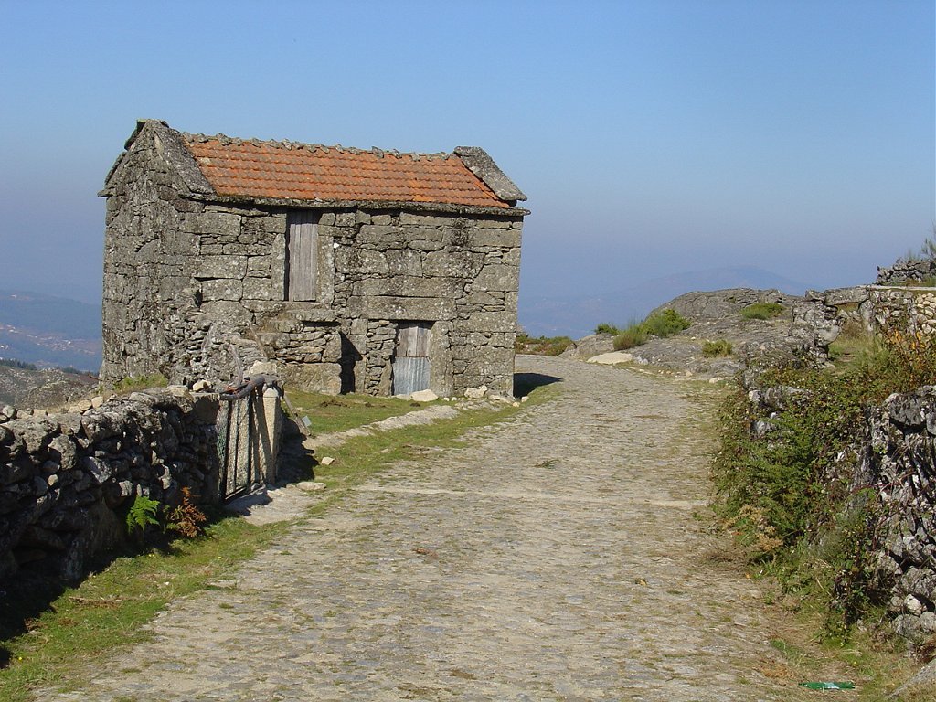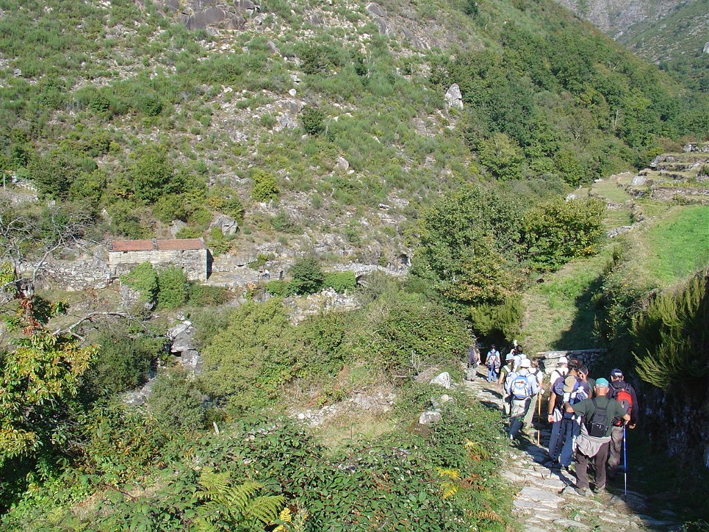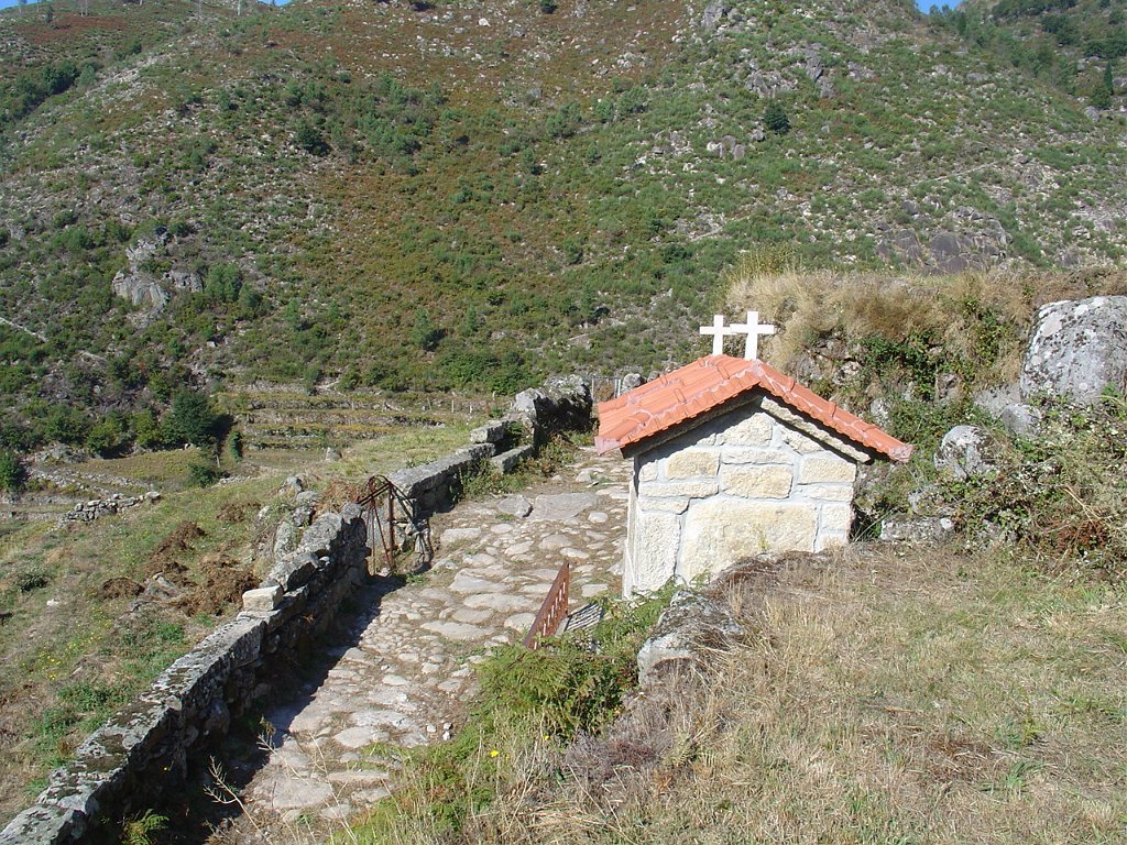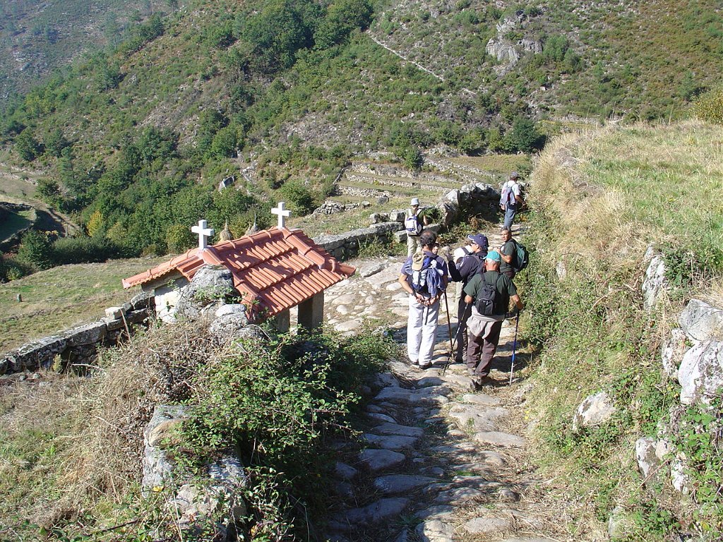 Descemos para o lugar de Padrão e seguimos depois a meia encosta na direcção das alminhas onde se faz a encruzilhada com o caminho que liga a Porta Cova.