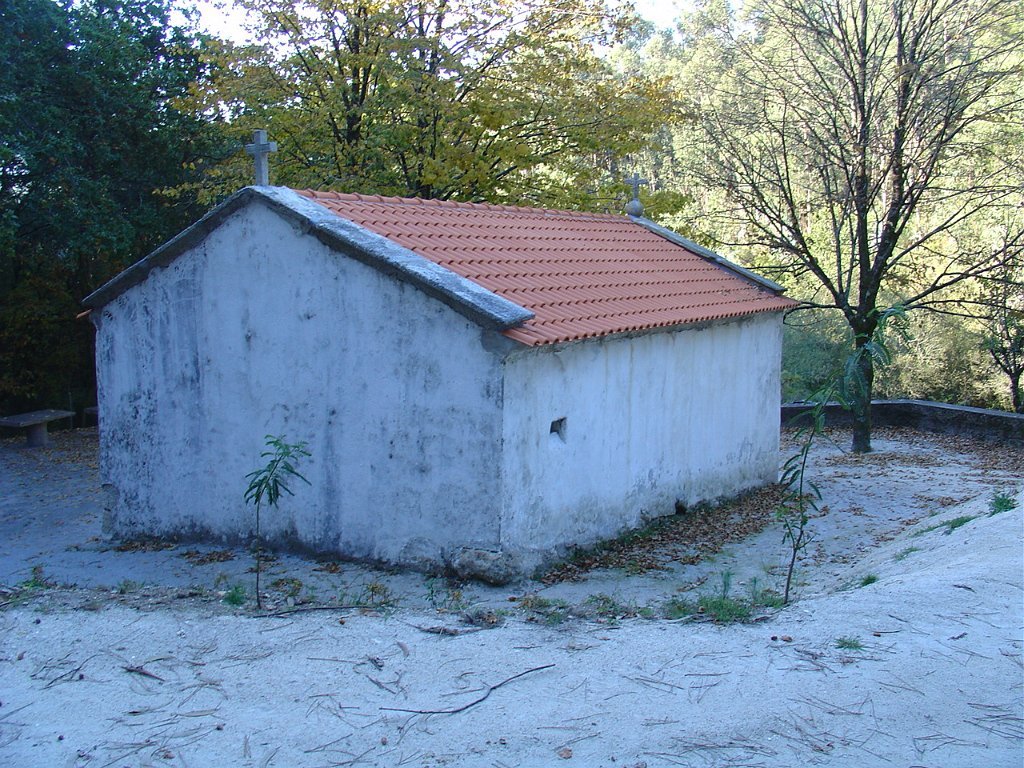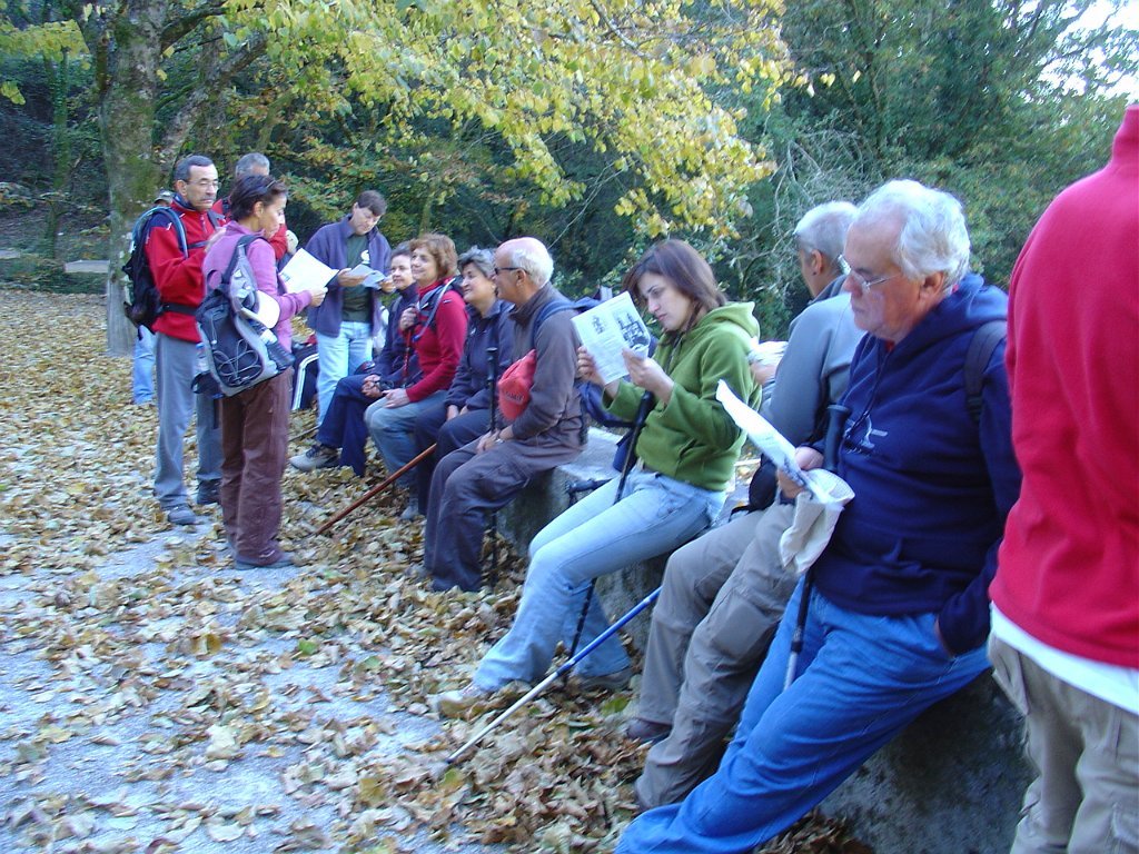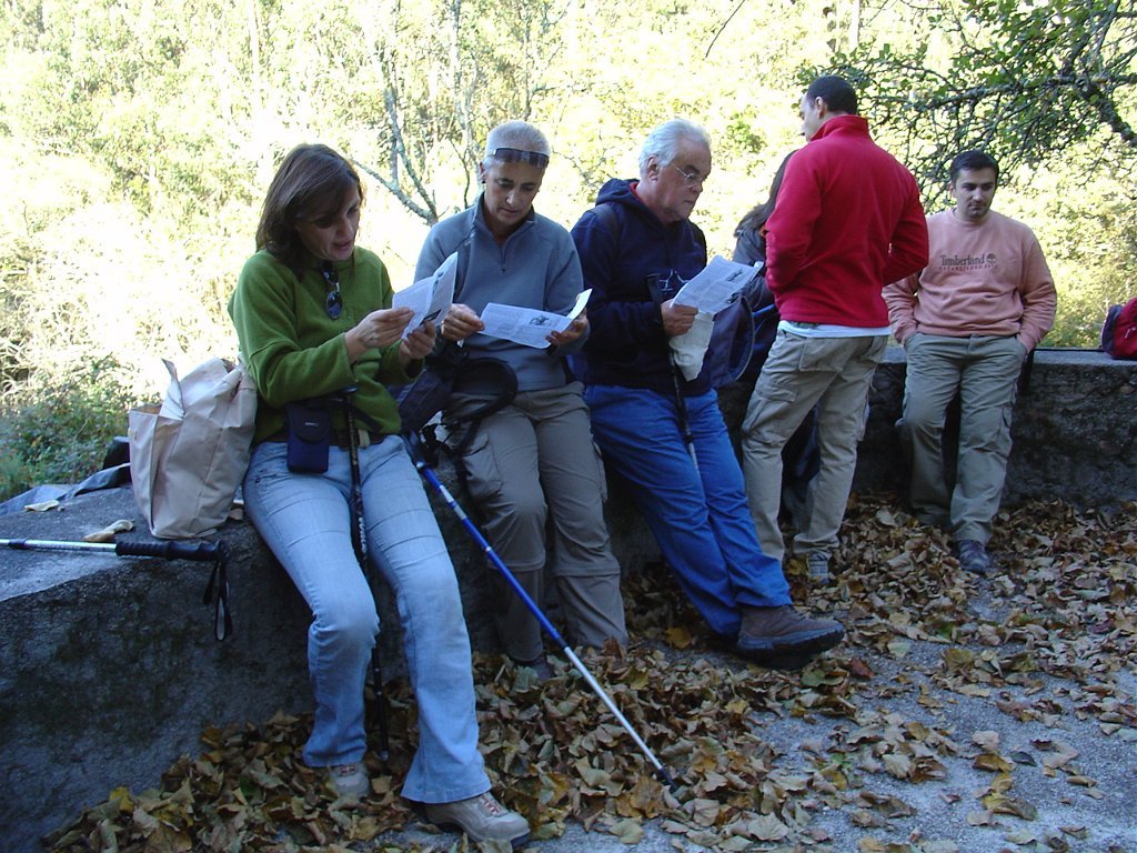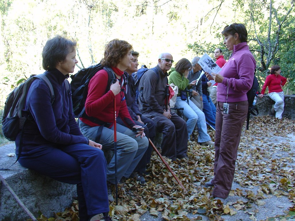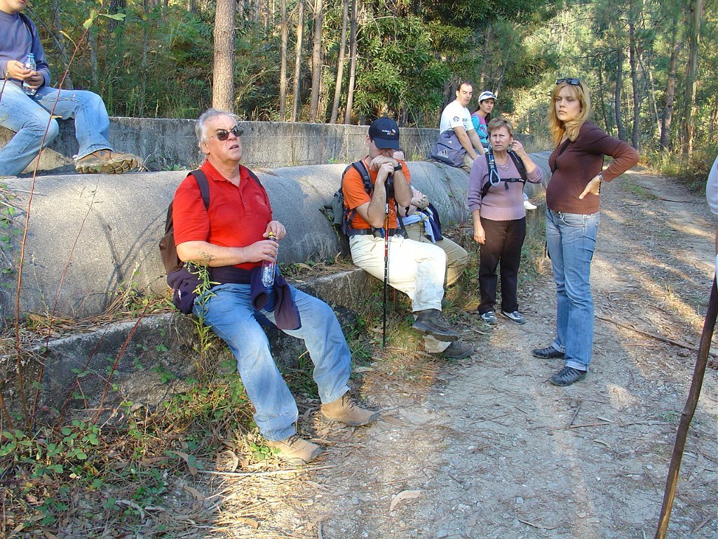Seguimos então pela floresta, na direcção de S. João da Grova, onde fizemos uma pausa, lendo o descritivo do percurso, onde é narrada a curiosa história da pia baptismal, que foi mudada de local e provocava a cegueira das crianças, e a do “Poço do Sino”, onde desapareceram homens, bois, carro e sino quando do seu transporte para o Mosteiro de Freiras, ficando o mito de que o poço não tem fundo.