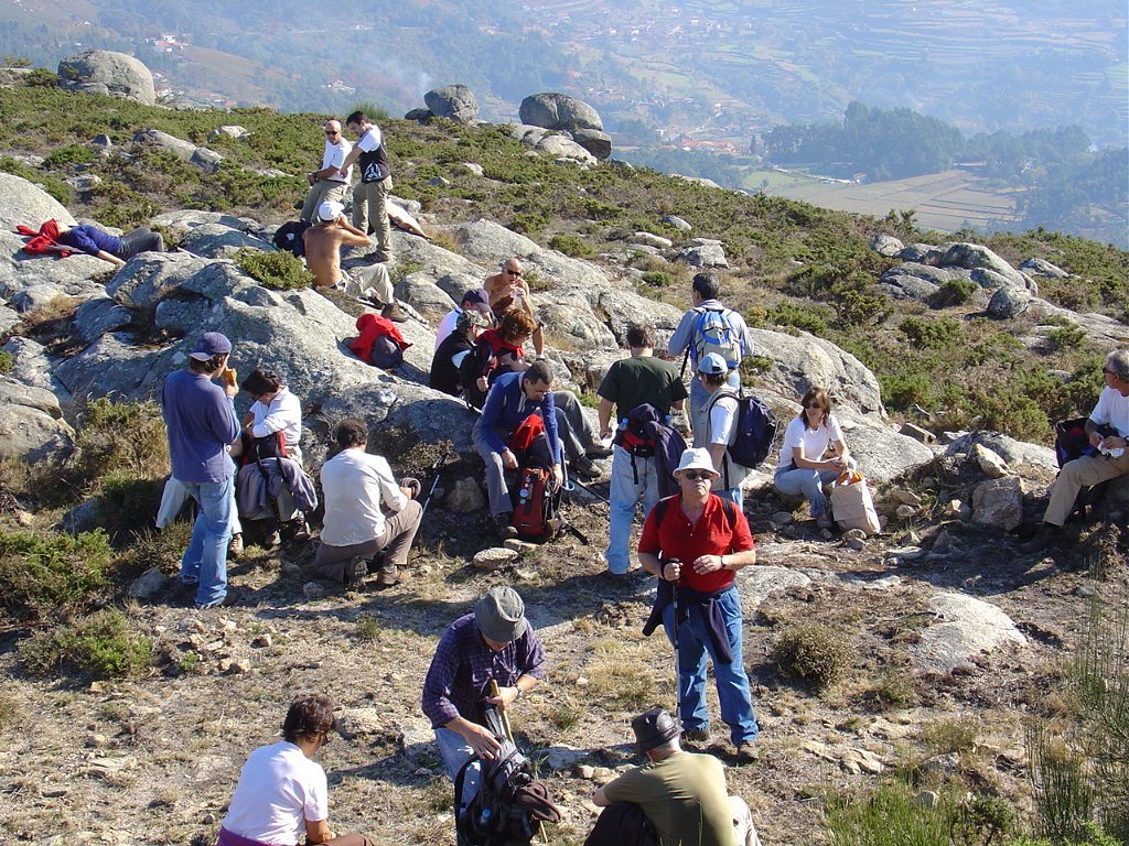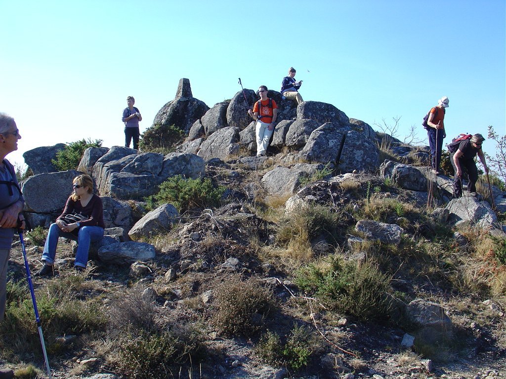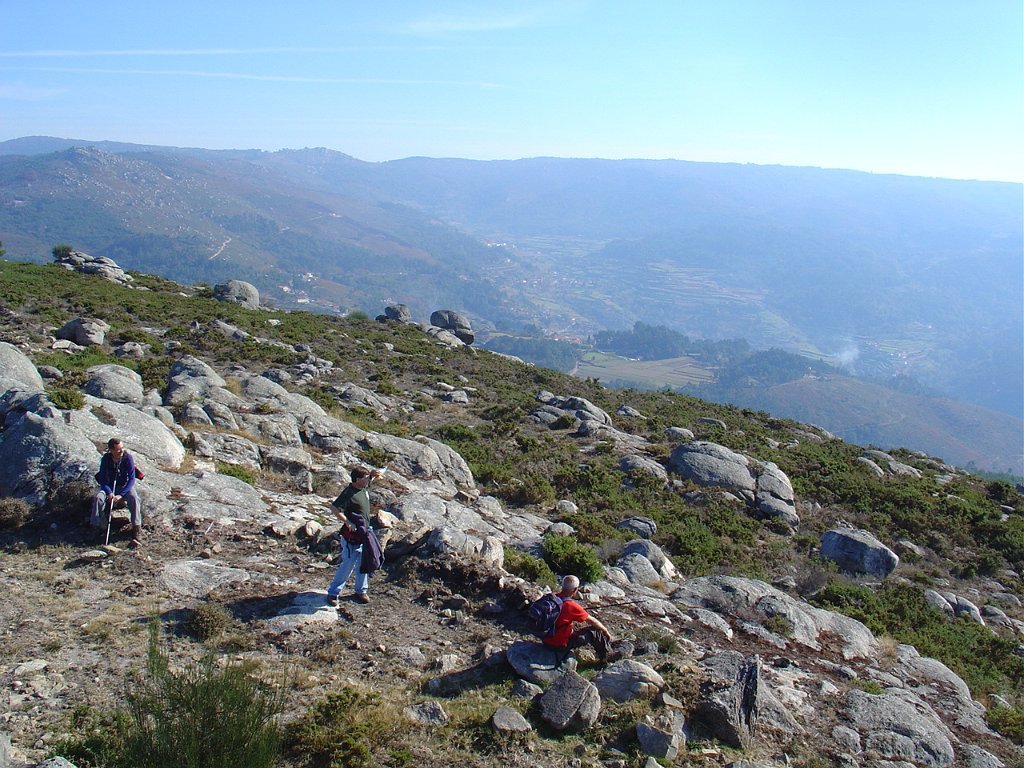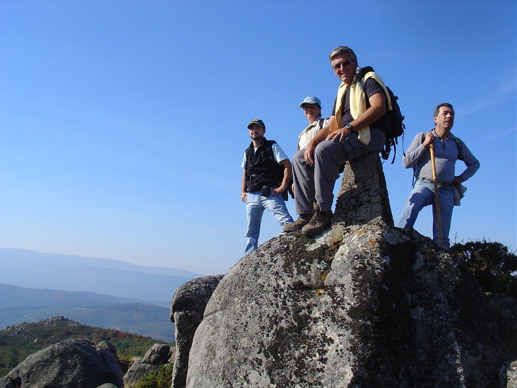 Iniciamos então o estradão que nos levou até ao largo do tanque onde, depois de um curta pausa, recomeçamos subindo o trilho dos Penedos Rajados até o marco geodésico do Monte das Lajes, onde pudemos vislumbrar uma vasta paisagem, com Rendufe a nossos pés.