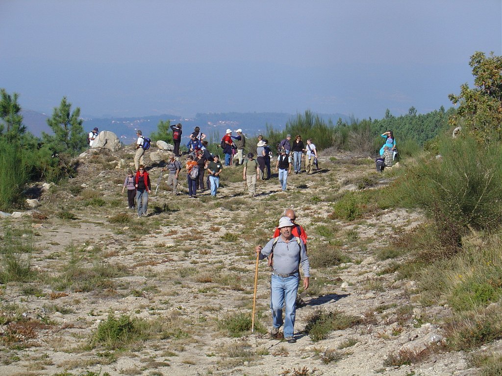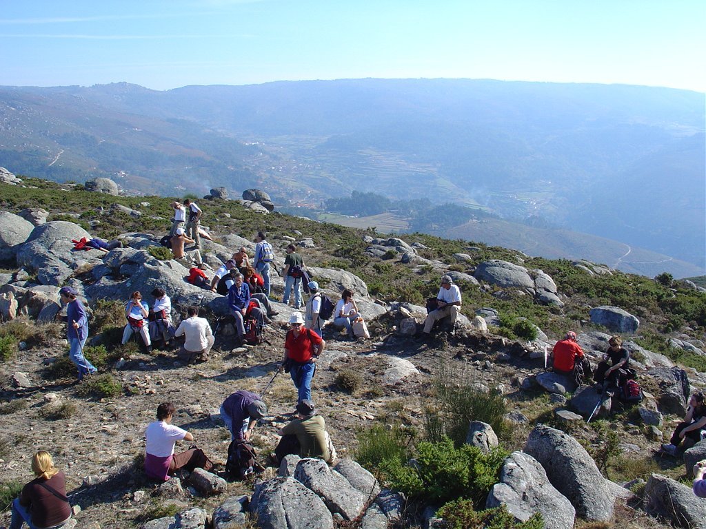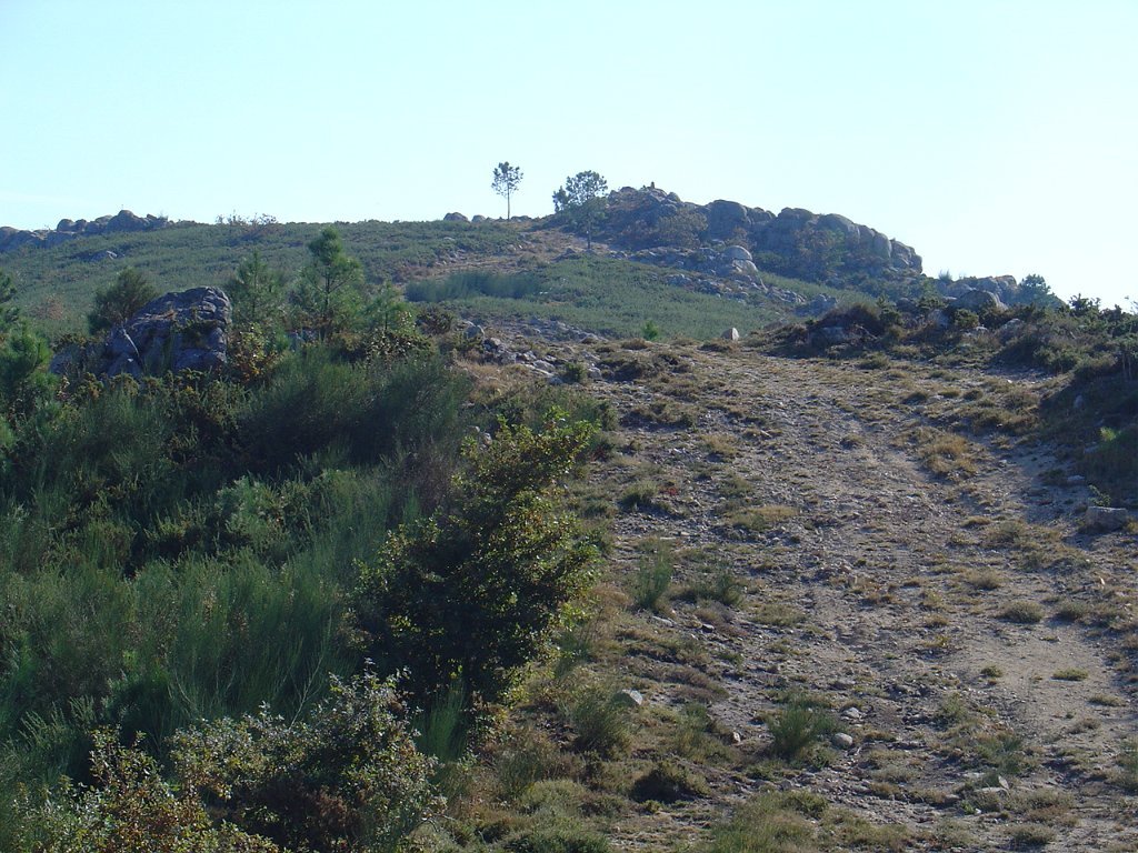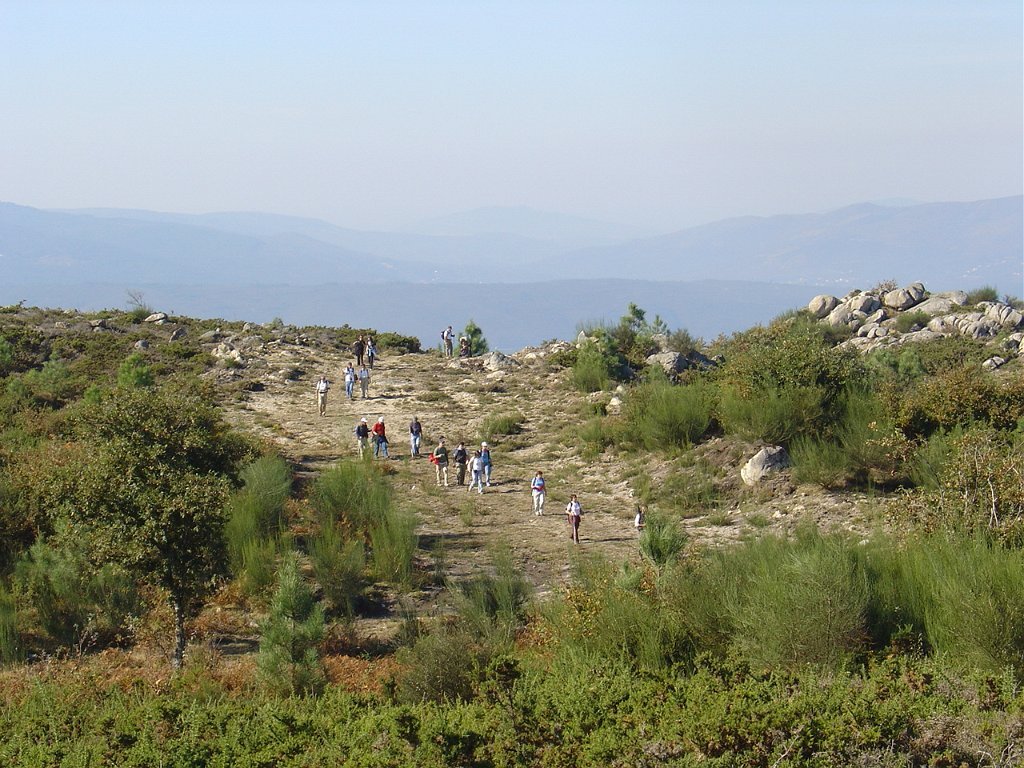 Iniciamos então o estradão que nos levou até ao largo do tanque onde, depois de um curta pausa, recomeçamos subindo o trilho dos Penedos Rajados até o marco geodésico do Monte das Lajes, onde pudemos vislumbrar uma vasta paisagem, com Rendufe a nossos pés.