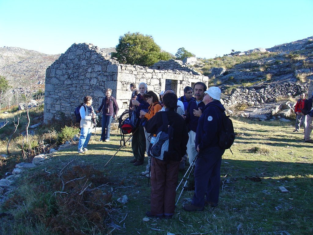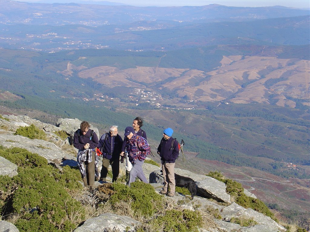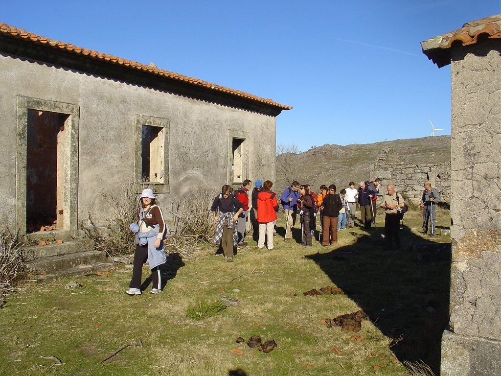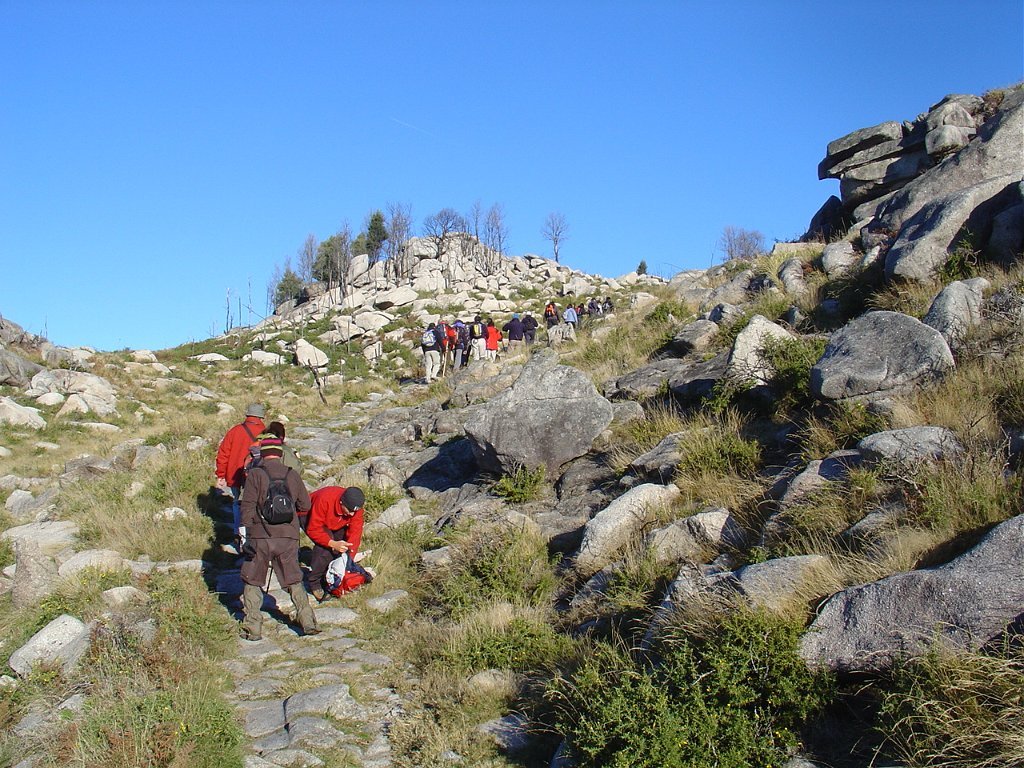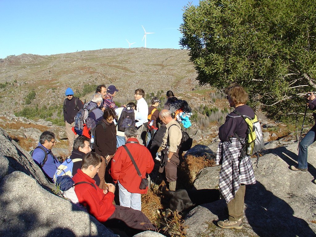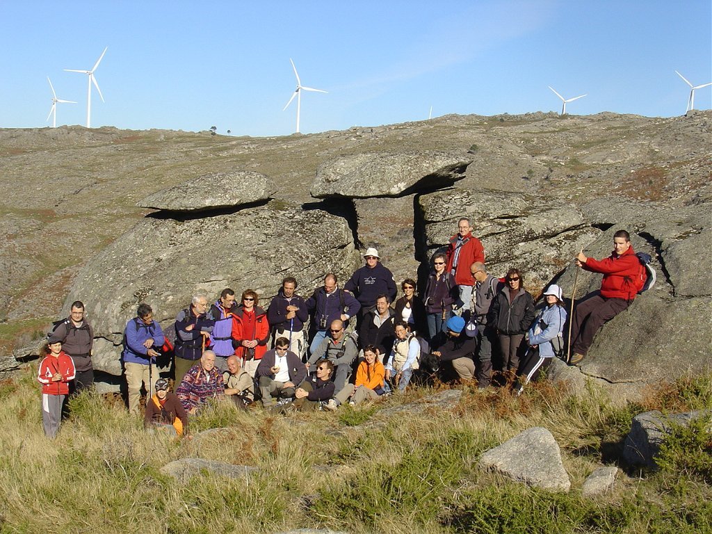 Subimos a calçada da Encosta do Curral, passando na casa florestal, agora em estado de completa ruína, e seguimos até à Porta da Vila, onde foi tirada a foto de grupo, tendo como fundo esta curiosa formação granítica, continuando depois a subida até ao planalto da Serra D'Arga, onde chegamos junto da nova torre de radar.