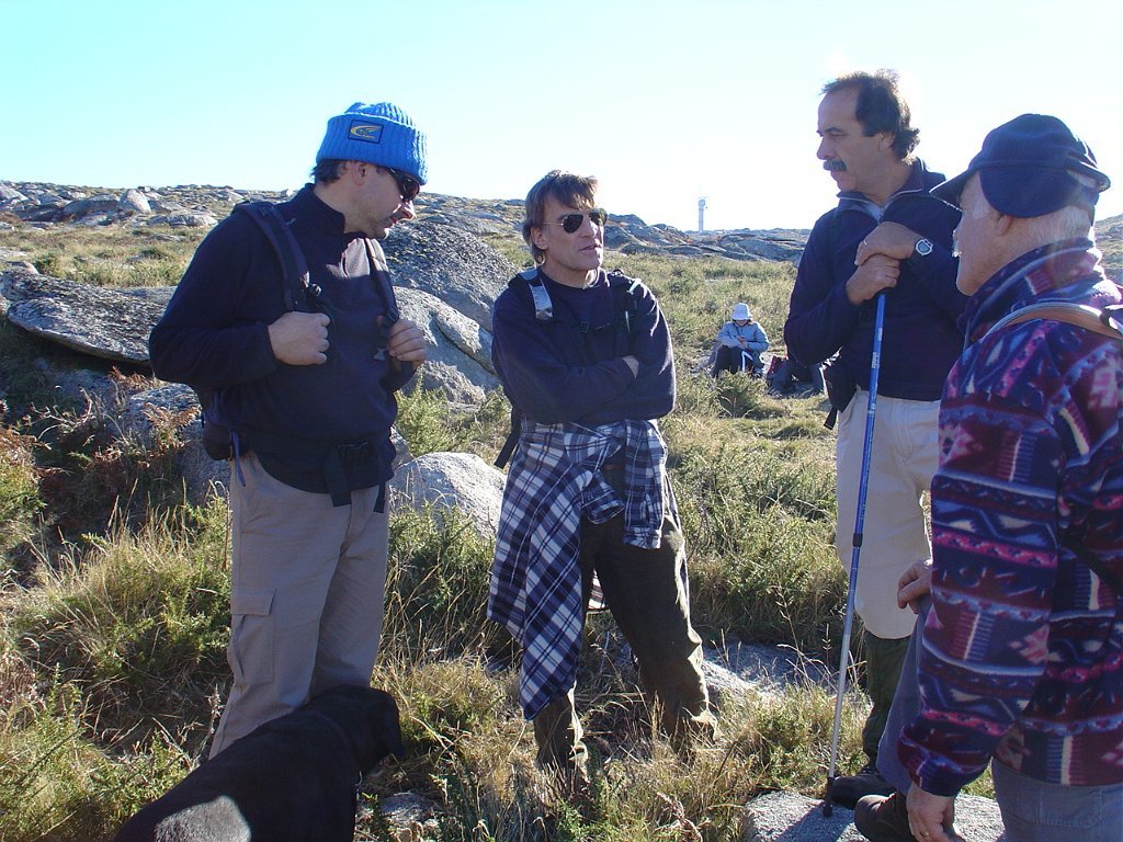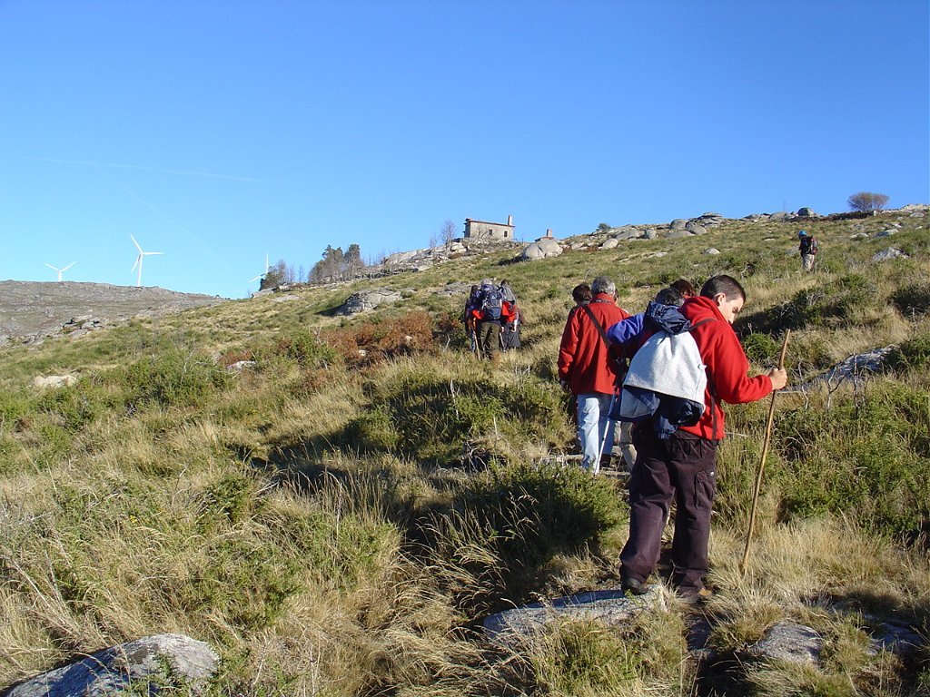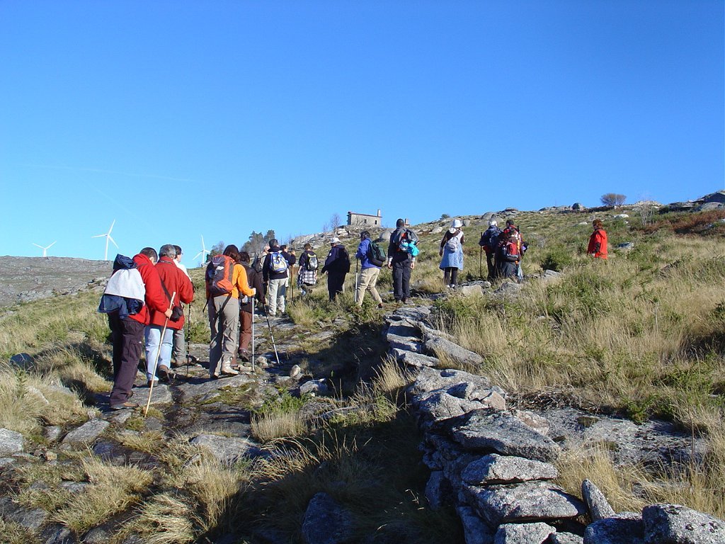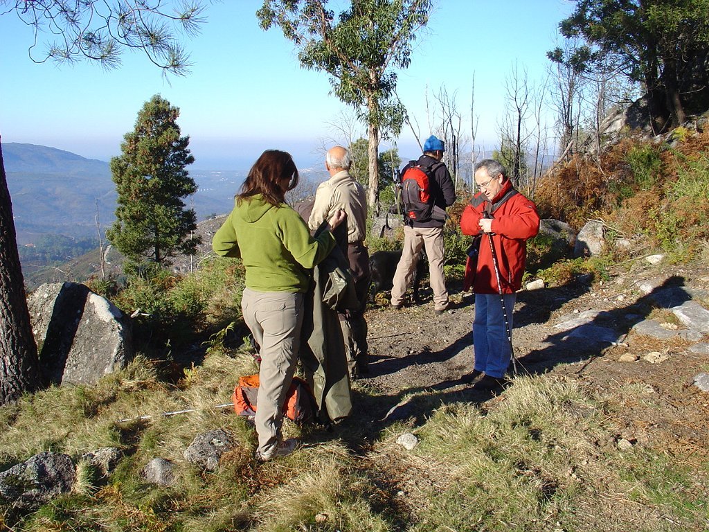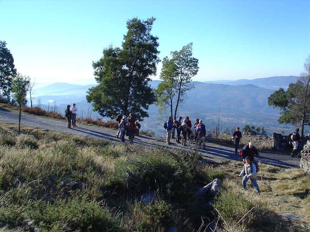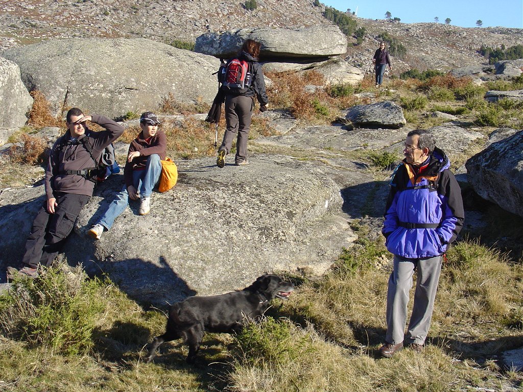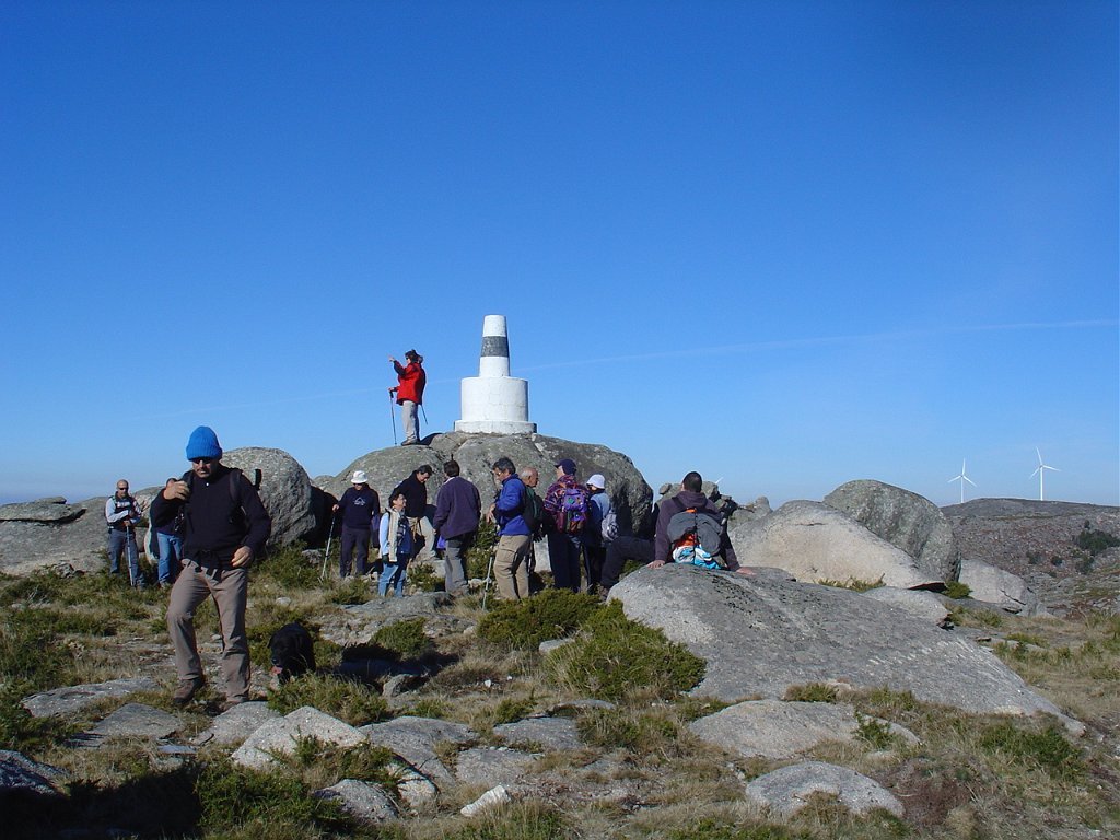 Subimos a calçada da Encosta do Curral, passando na casa florestal, agora em estado de completa ruína, e seguimos até à Porta da Vila, onde foi tirada a foto de grupo, tendo como fundo esta curiosa formação granítica, continuando depois a subida até ao planalto da Serra D'Arga, onde chegamos junto da nova torre de radar.