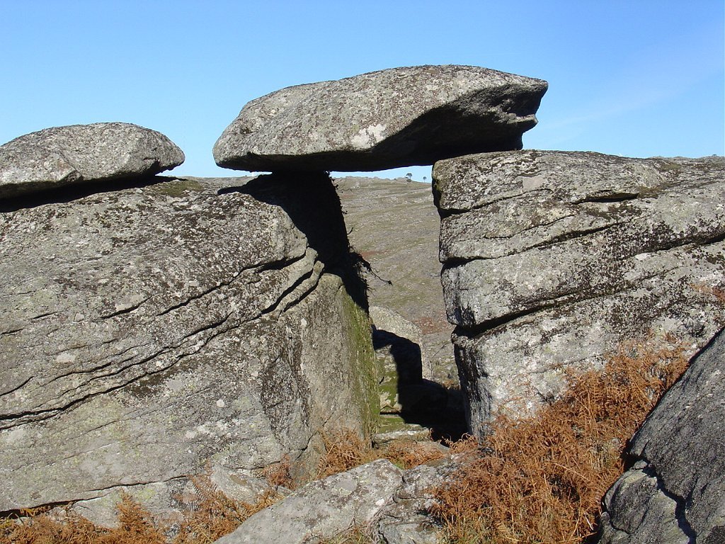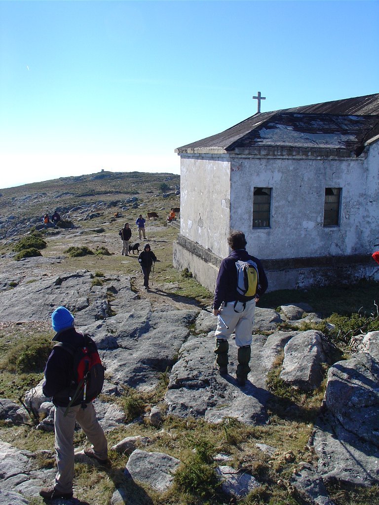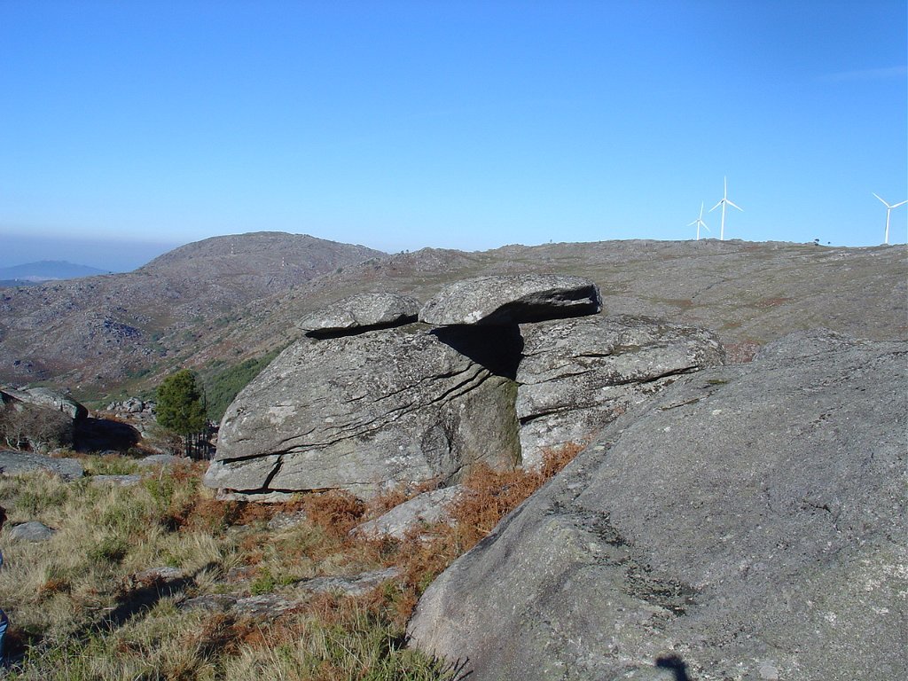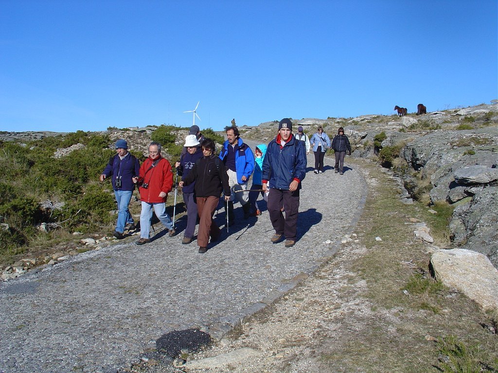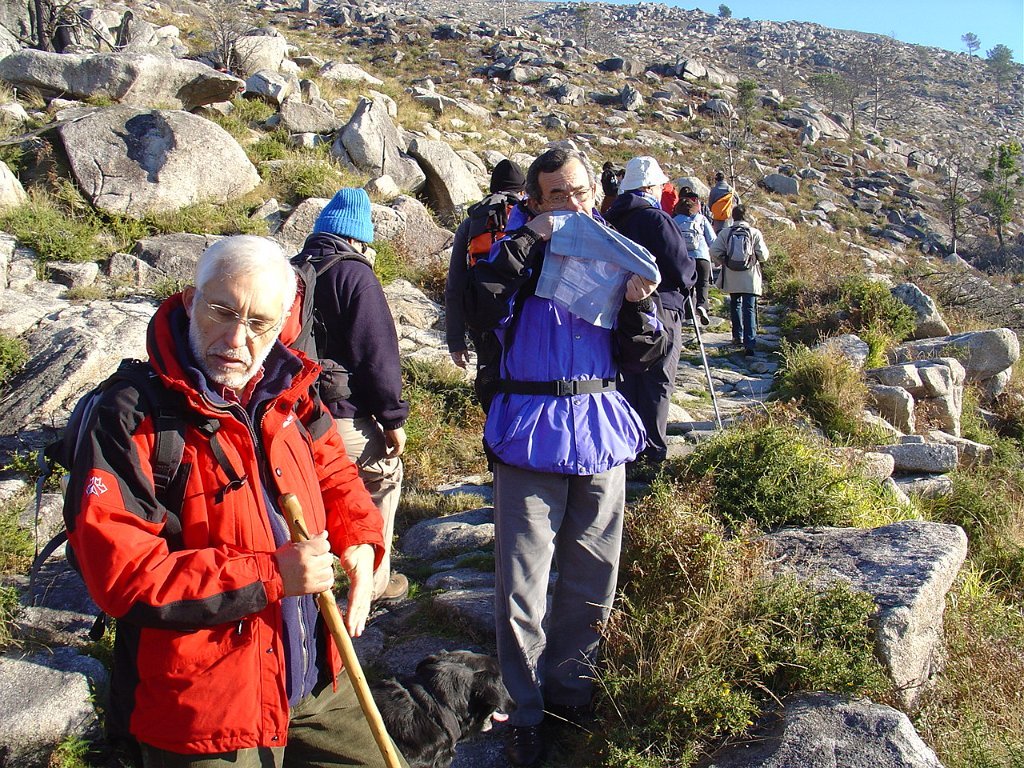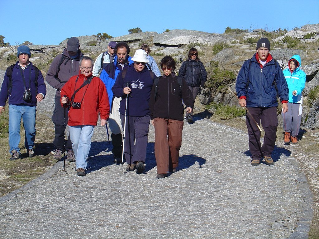 Subimos a calçada da Encosta do Curral, passando na casa florestal, agora em estado de completa ruína, e seguimos até à Porta da Vila, onde foi tirada a foto de grupo, tendo como fundo esta curiosa formação granítica, continuando depois a subida até ao planalto da Serra D'Arga, onde chegamos junto da nova torre de radar.