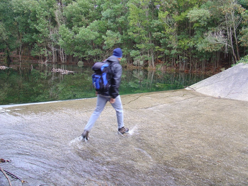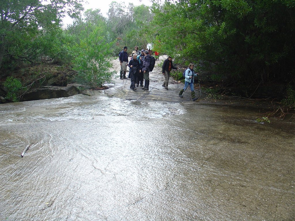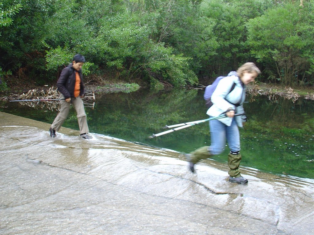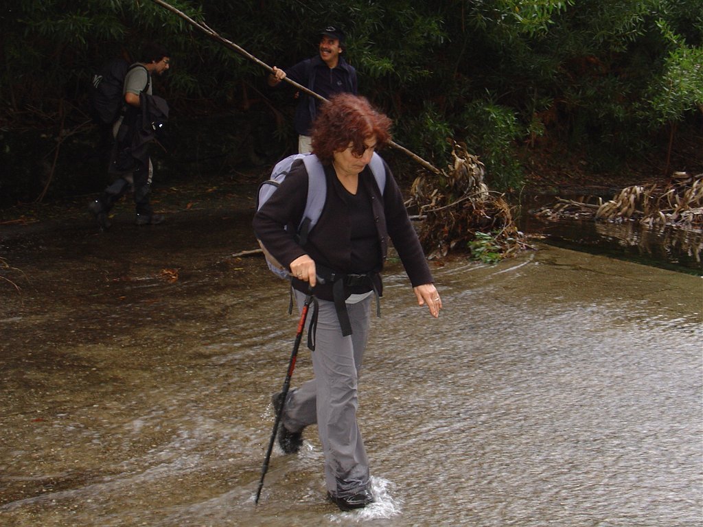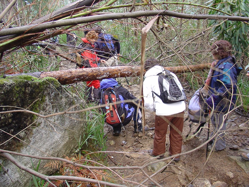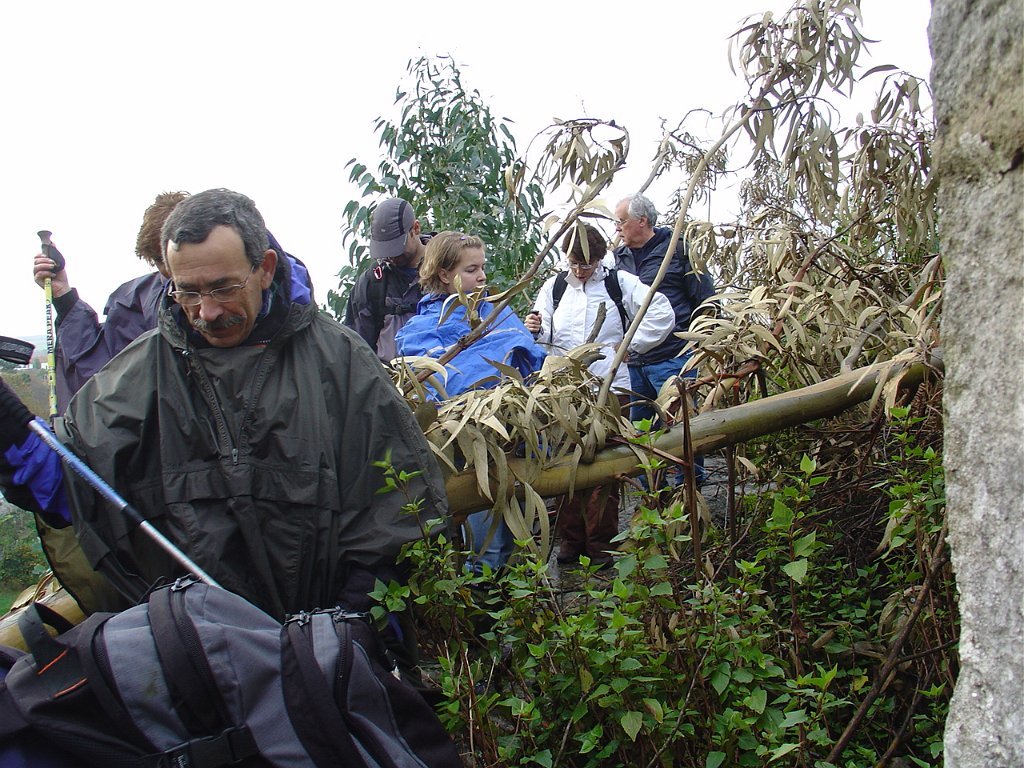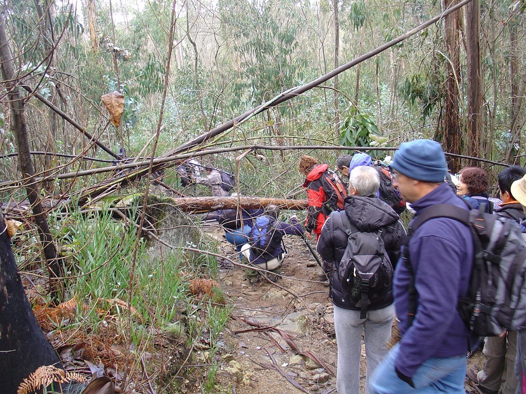 O temporal derrubou algumas árvores, que nos complicaram bastante a progressão, mas lá fomos improvisando passagens pelo meio dos ramos ou fugindo ao estrito trilho até chegar ao Poço Negro, agora com uma abundante torrente de água, que impedia a normal progressão.