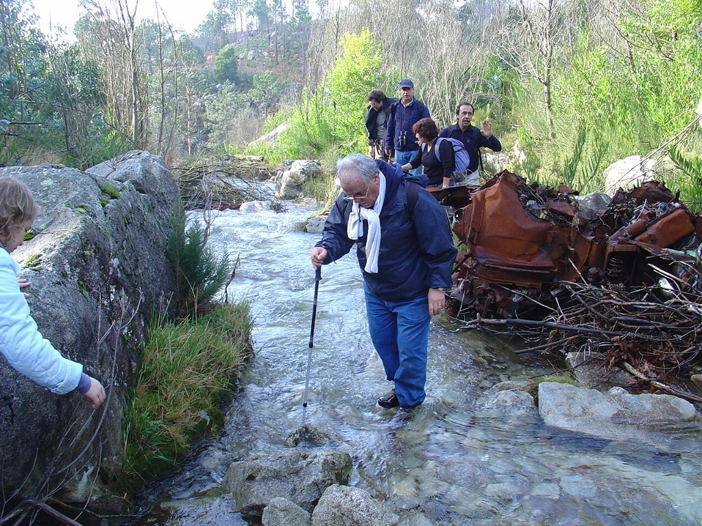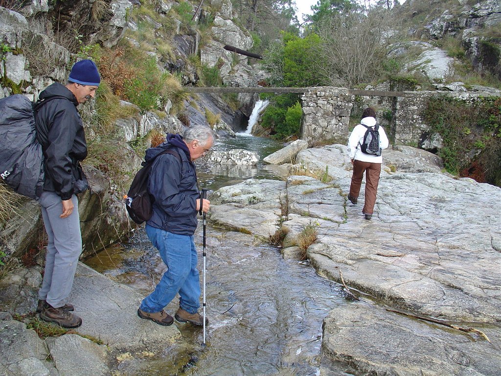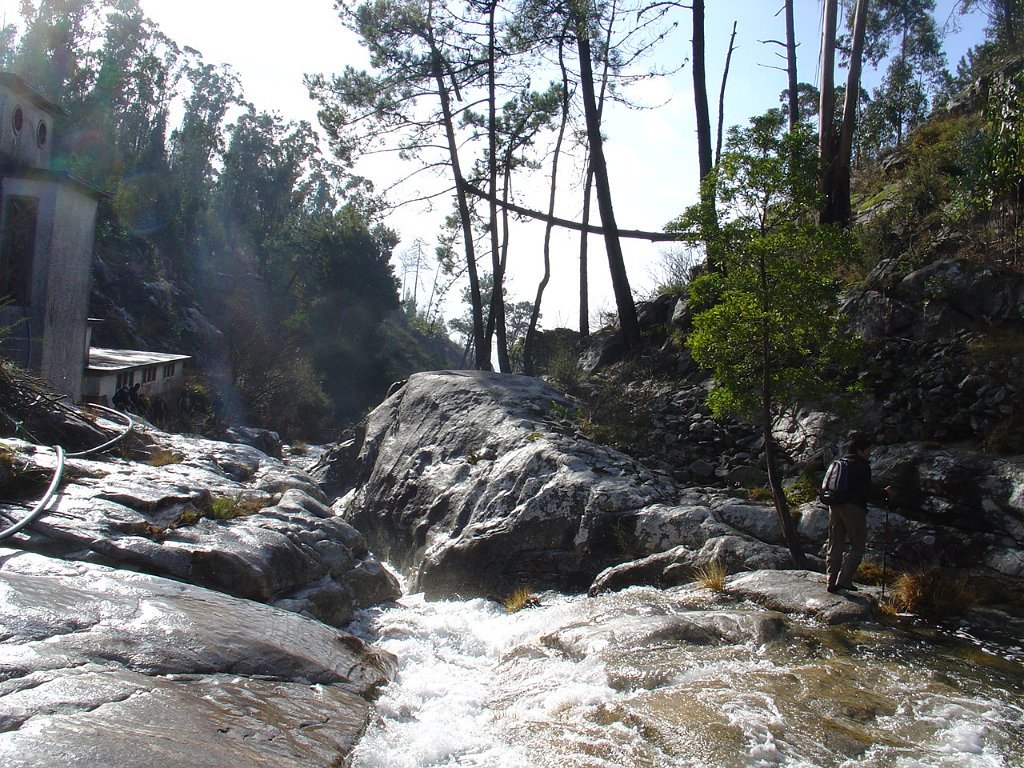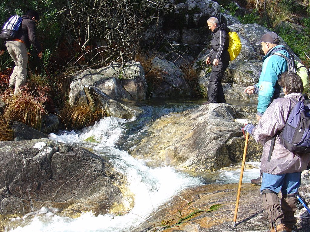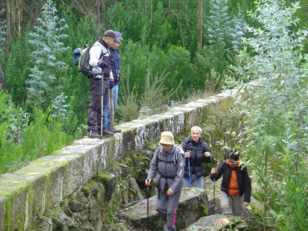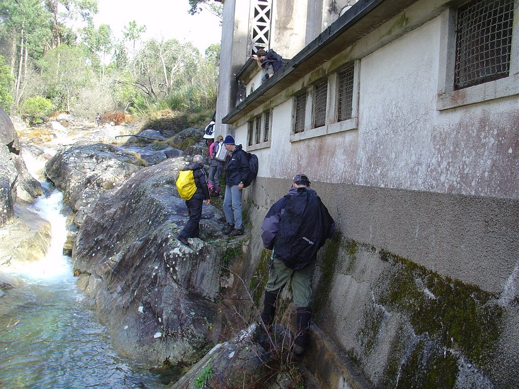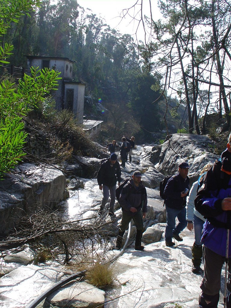 Agrupados, junto à Cruz de granito que sobranceira ao Poço Negro, iniciamos a subida pela margem do Ribeiro do Pego, passando pela edifício de captação de água dos Serviços Municipalizados de Viana do Castelo, continuando a agreste subida pela margem do ribeiro à direita, saltitando de pedra em pedra e atravessando o curso de água, de acordo com as dificuldades de acesso, até finalmente atingir a ponte.