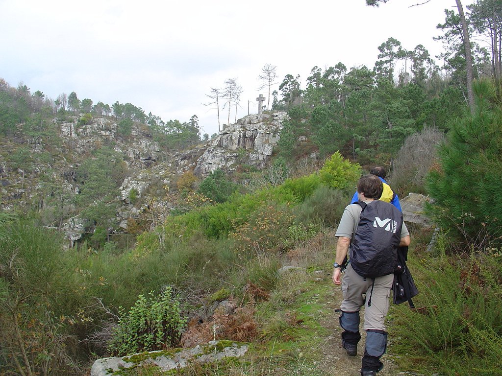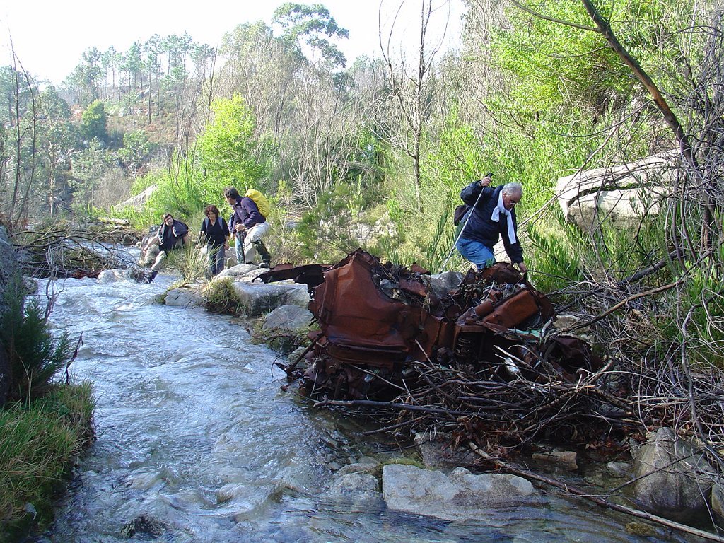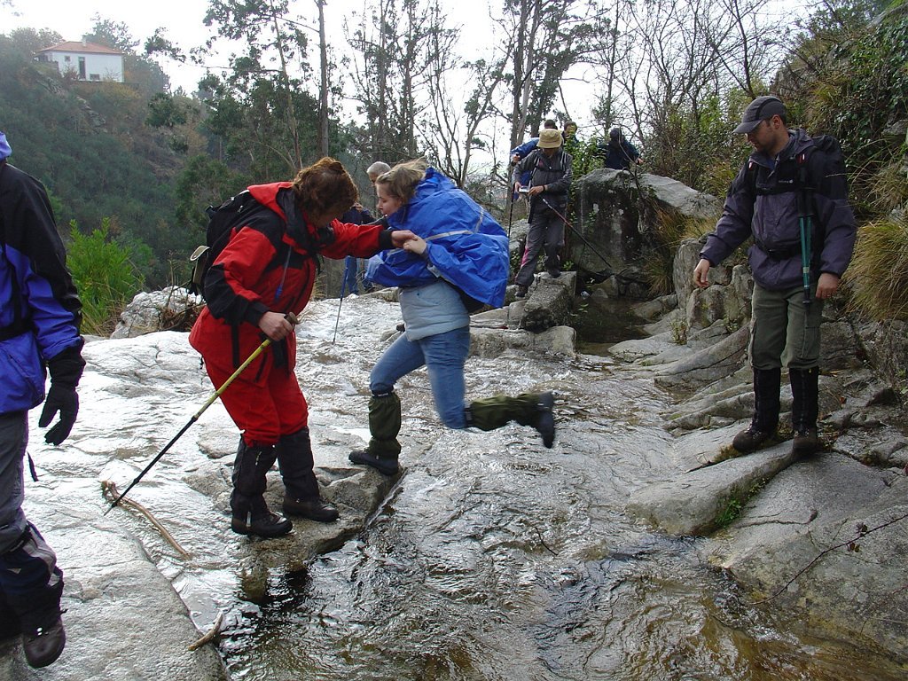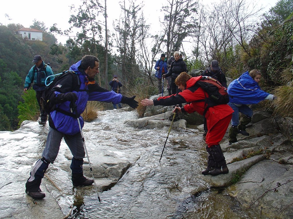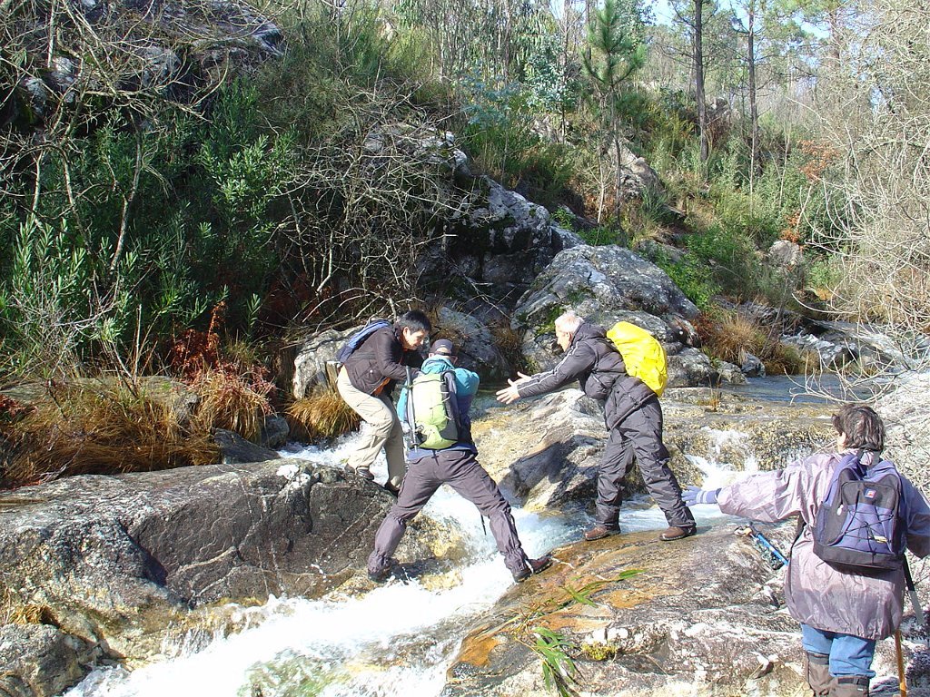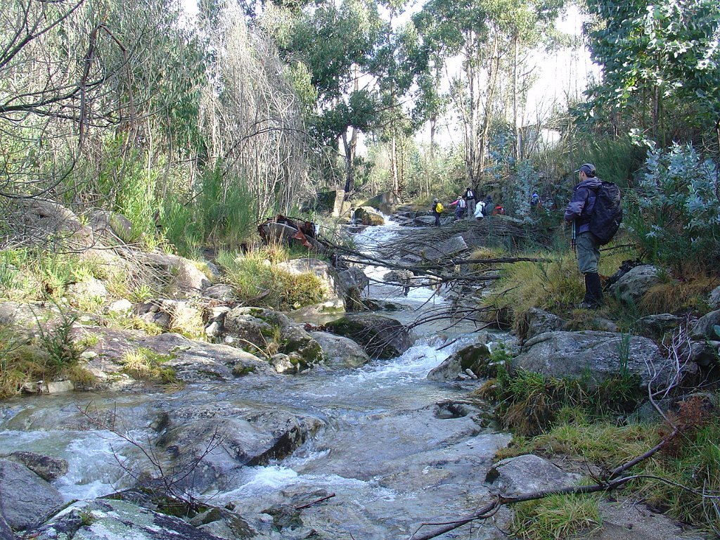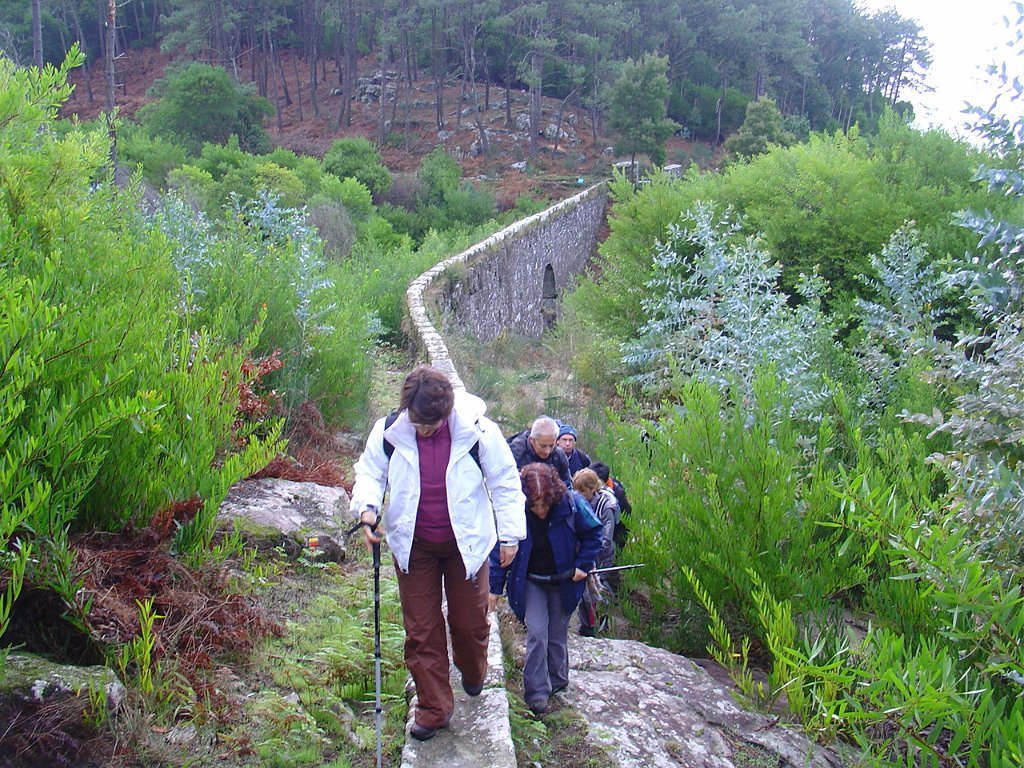 Agrupados, junto à Cruz de granito que sobranceira ao Poço Negro, iniciamos a subida pela margem do Ribeiro do Pego, passando pela edifício de captação de água dos Serviços Municipalizados de Viana do Castelo, continuando a agreste subida pela margem do ribeiro à direita, saltitando de pedra em pedra e atravessando o curso de água, de acordo com as dificuldades de acesso, até finalmente atingir a ponte.