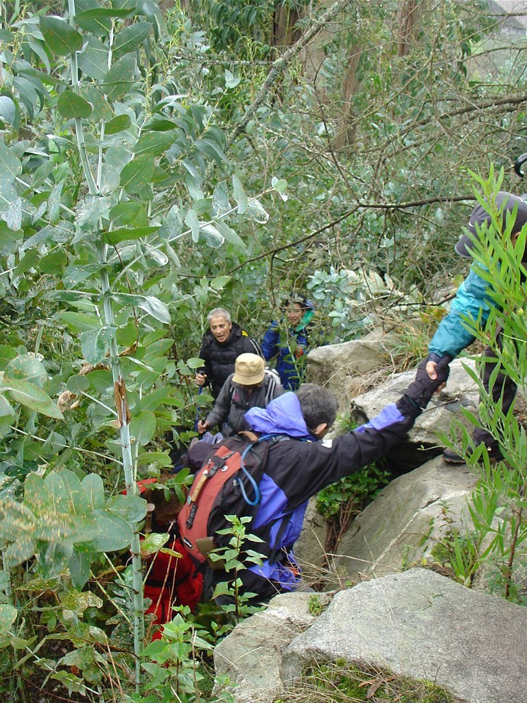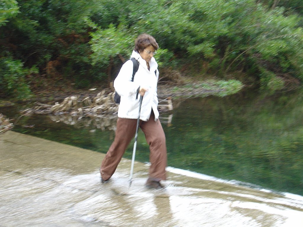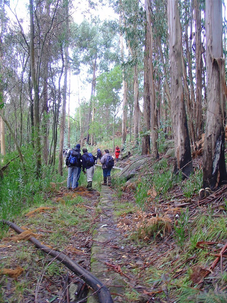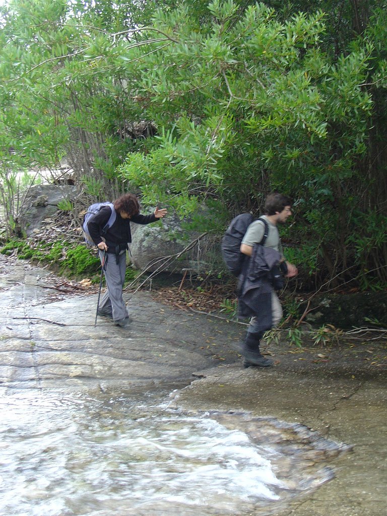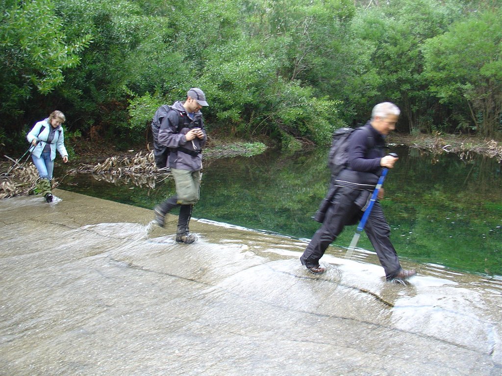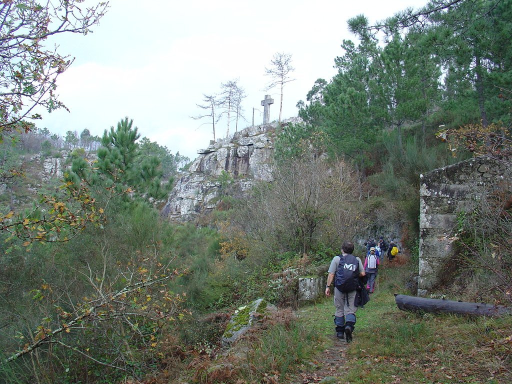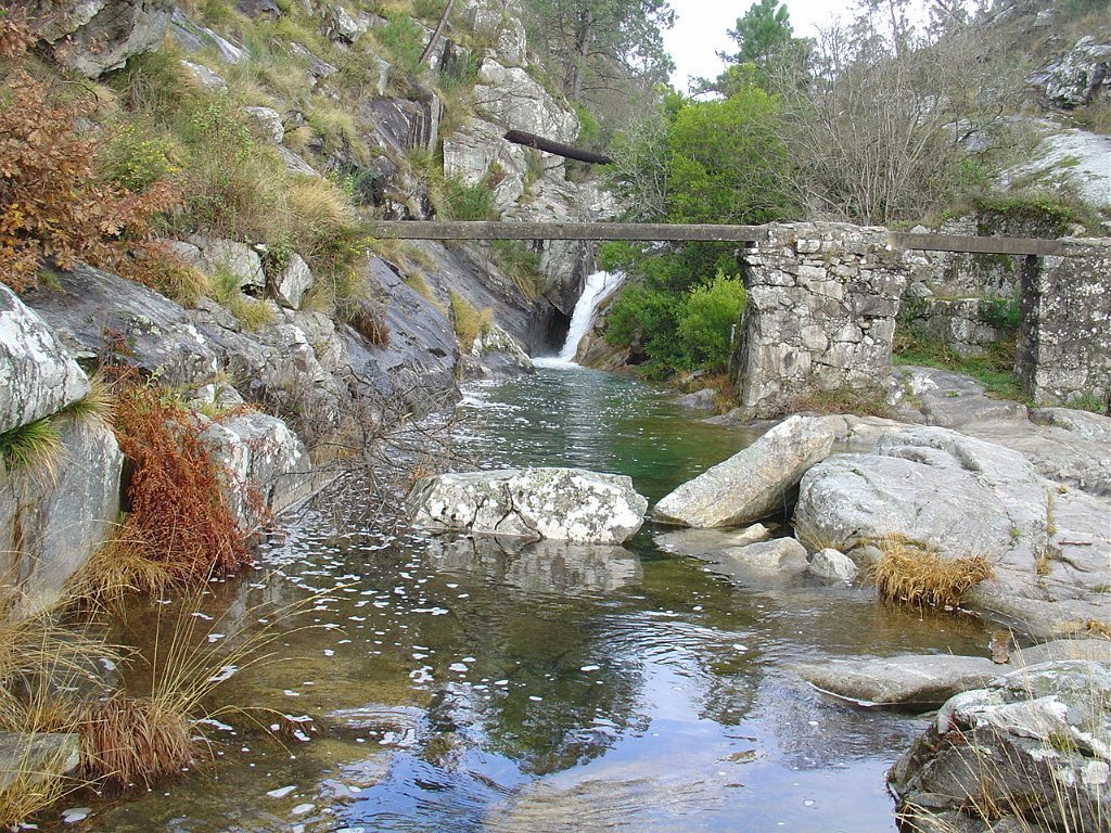 Agrupados, junto à Cruz de granito que sobranceira ao Poço Negro, iniciamos a subida pela margem do Ribeiro do Pego, passando pela edifício de captação de água dos Serviços Municipalizados de Viana do Castelo, continuando a agreste subida pela margem do ribeiro à direita, saltitando de pedra em pedra e atravessando o curso de água, de acordo com as dificuldades de acesso, até finalmente atingir a ponte.