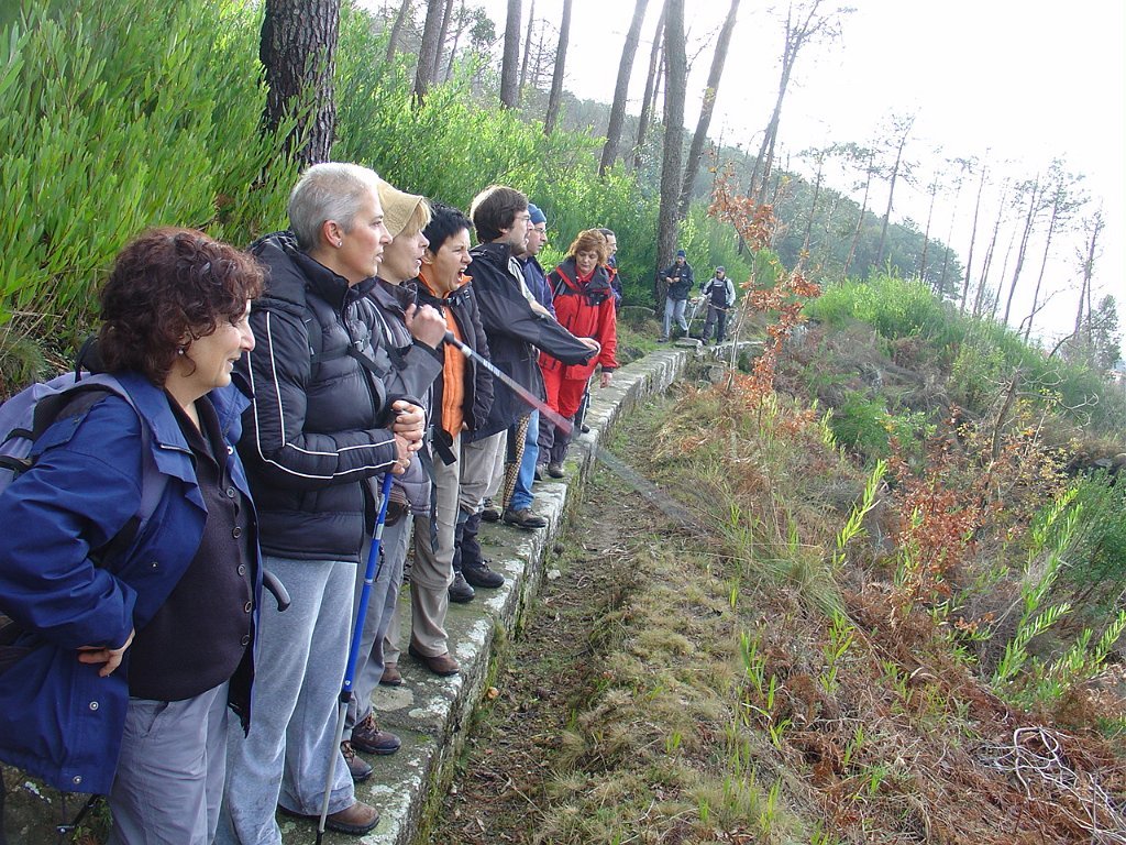 Viramos à direita e tomámos o percurso do cano de água, até ao ponto em que, de manhã, abandonamos o seu traçado. Desta vez tomamos a esquerda, subindo na direcção de Santa Luzia, onde chegamos pouco depois, tendo junto à citânia feito um último esforço, para ir até ao miradouro do depósito de água, com a explêndida vista para a cidade e mar, tendo-se finalizado o percurso pelas 17.00 junto ao templo.