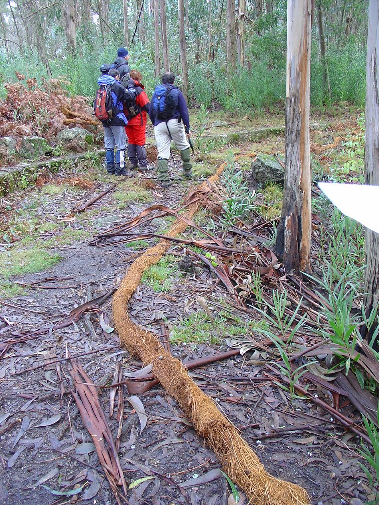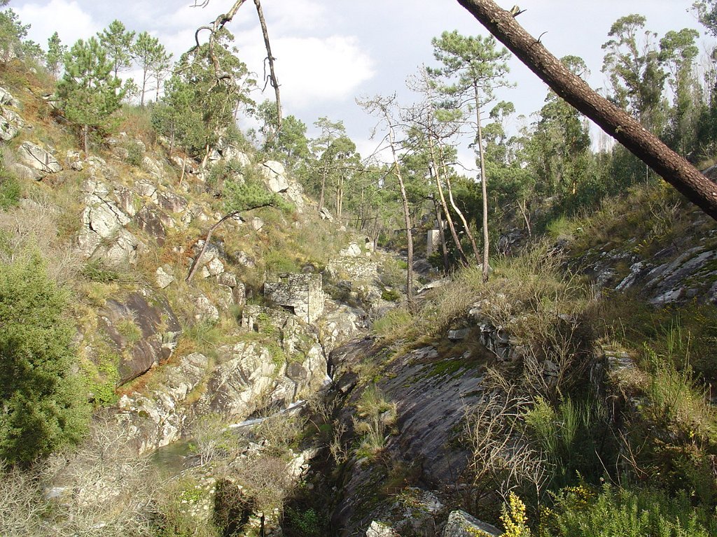 Aí tomamos o caminho à esquerda e pouco depois voltamos a cruzar o Ribeiro do Pego, iniciando a subida para o Castro do Pego, que não alcançamos, pois a densa vegetação circundante e as condições do tempo, não aconselhavam mais esse esforço.
