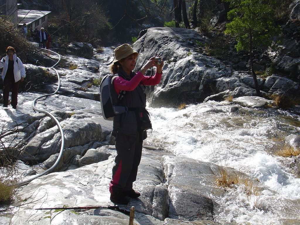 Parte dos presentes optaram pela travessia, mas a maioria, receosa de uma queda na escorregadia passagem, optou pelo regresso pelo traiçoeiro trilho de acesso à Areosa, retomando depois o acesso pela vertente esquerda até fazermos o encontro com os restantes.