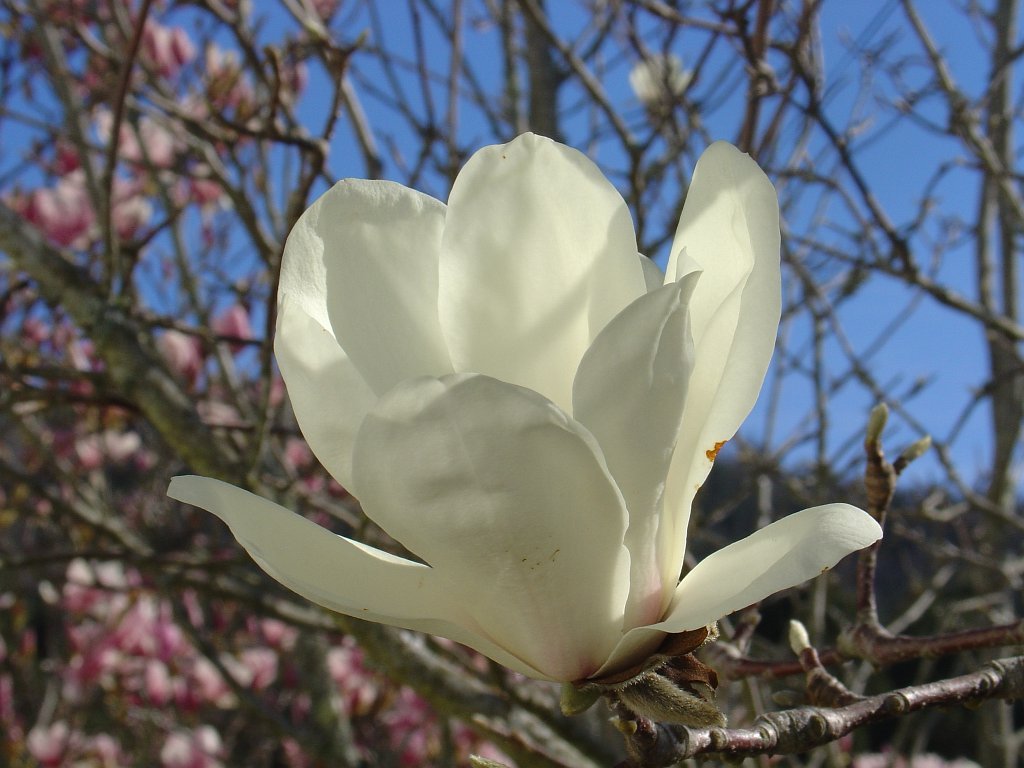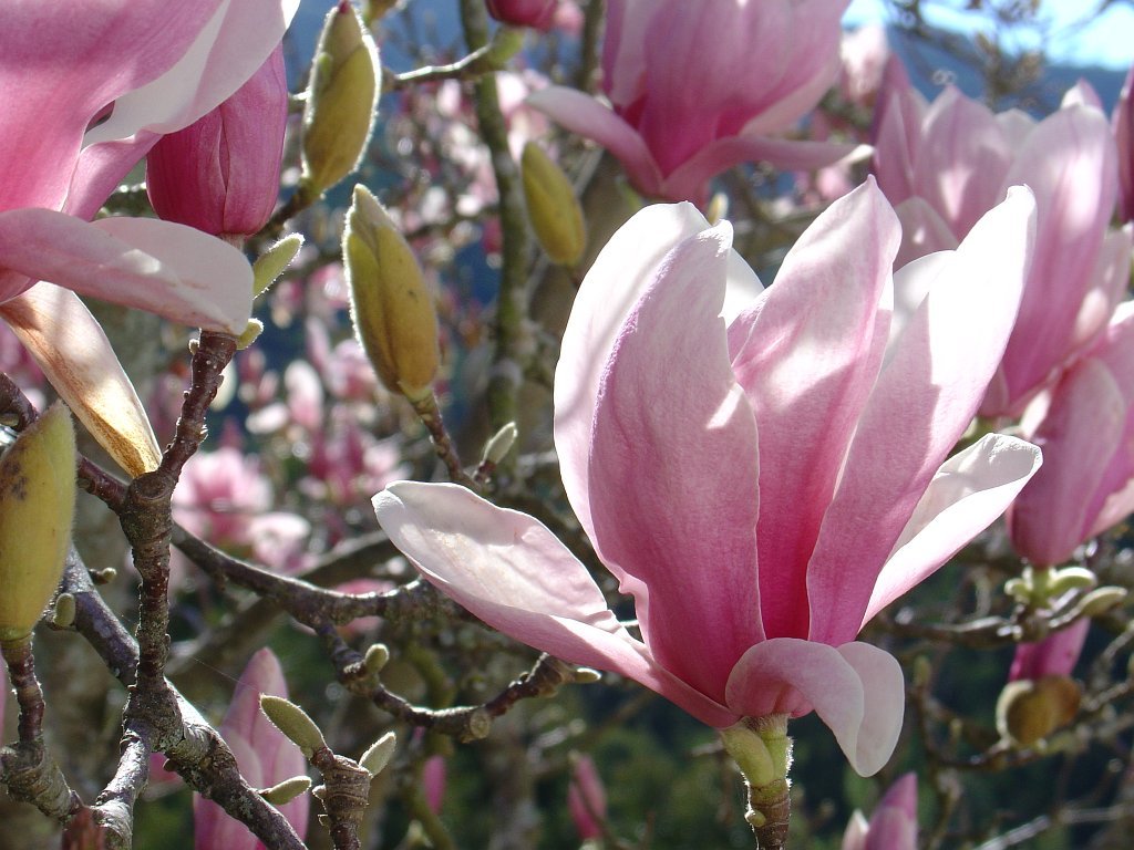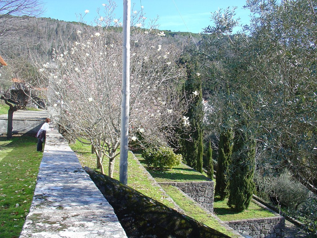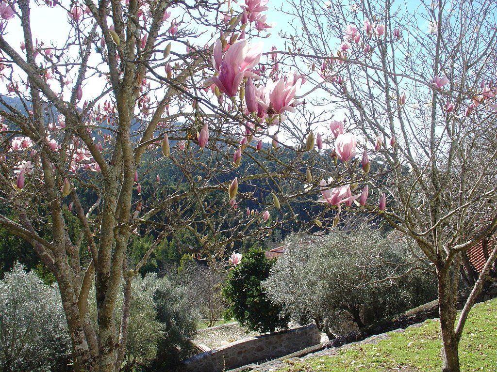 “Alta magnólia, brônzea de folhagem, E de flores de neve a arder no lume De capitoso e oriental perfume, Do convento-solar guarda a passagem.”