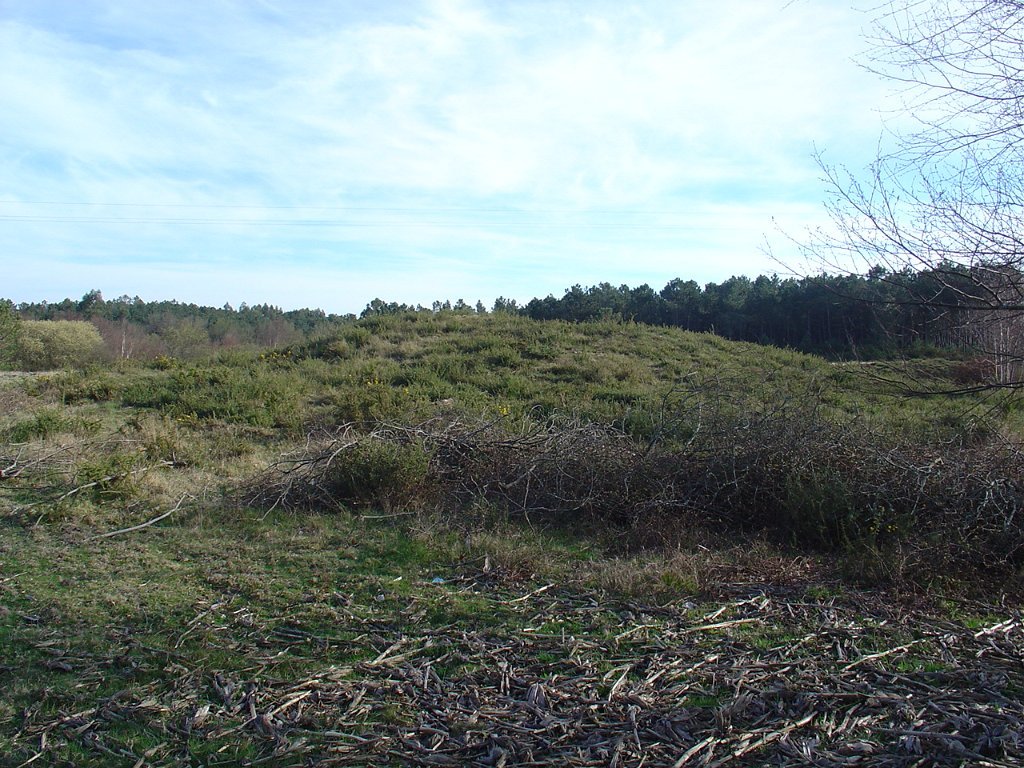 Um pouca adiante voltamos à esquerda seguindo o estradão que nos conduziu à Colónia Agrícola da Chã de Lamas, observando quer os campos de cultivo e amplas pastagens, quer as mamoas - montículos, que constituem lugares de enterramento fúnebre.
