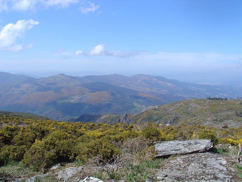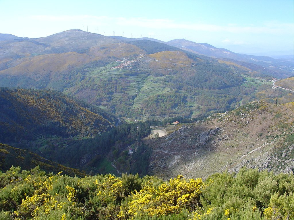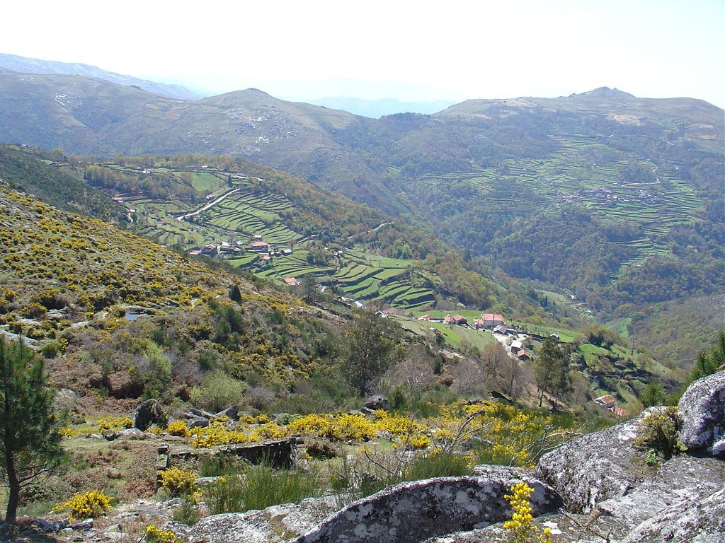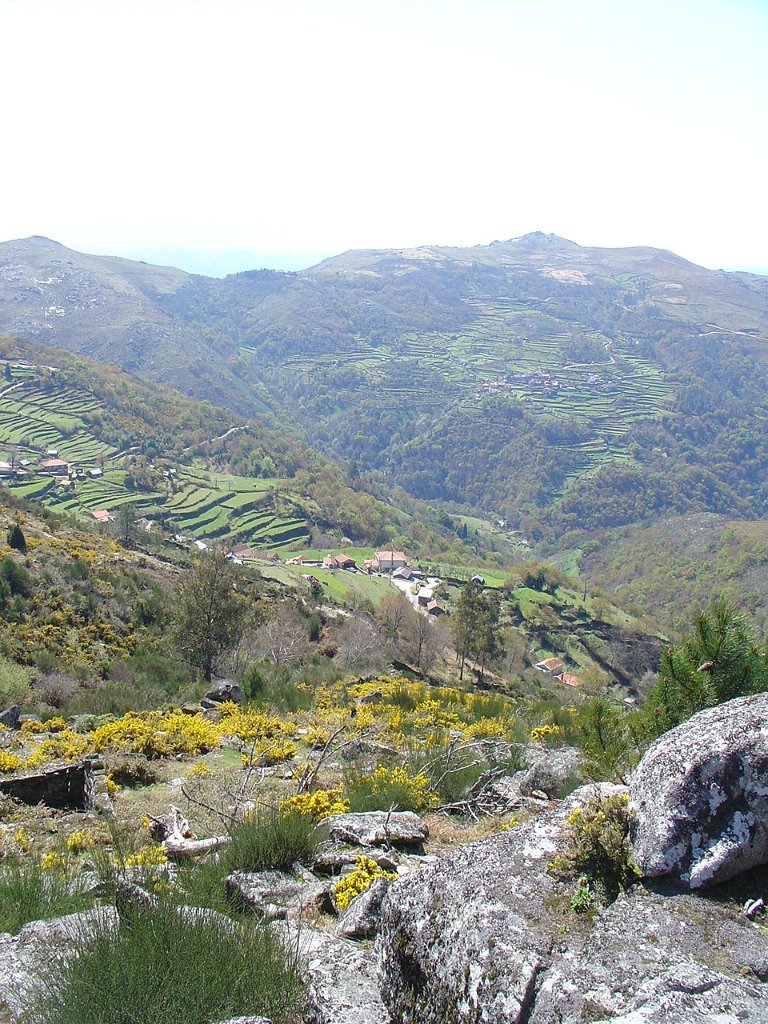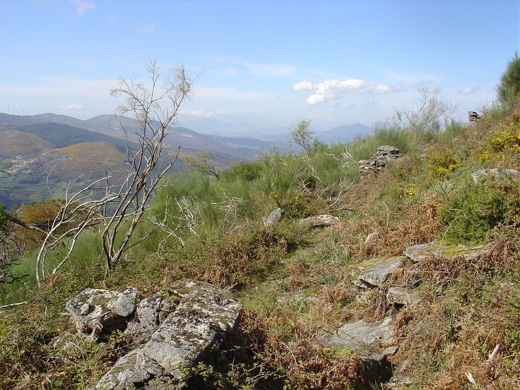 No topo da branda, junto a uma casa rectangular, onde inicia a calçada descendente, fizemos um desvio até ao topo do morro vizinho, onde se pode observar em todo o esplendor, a vertiginosa vista para a garganta do rio de Outeiro, o encontro deste com o rio Couço, com Sistelo ao fundo.