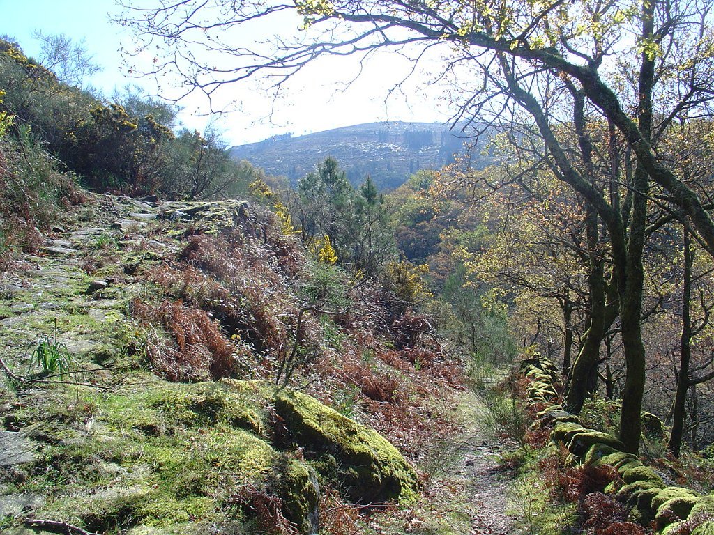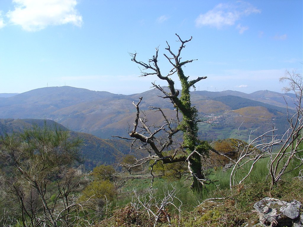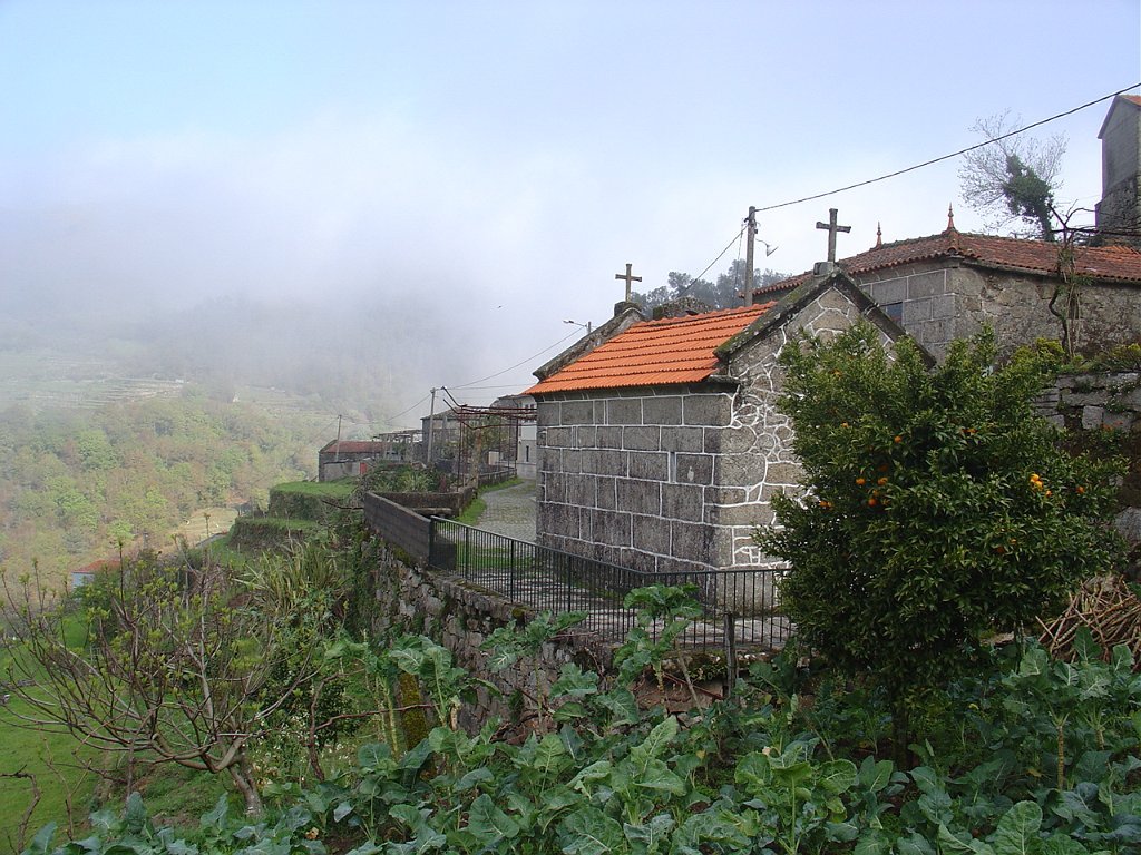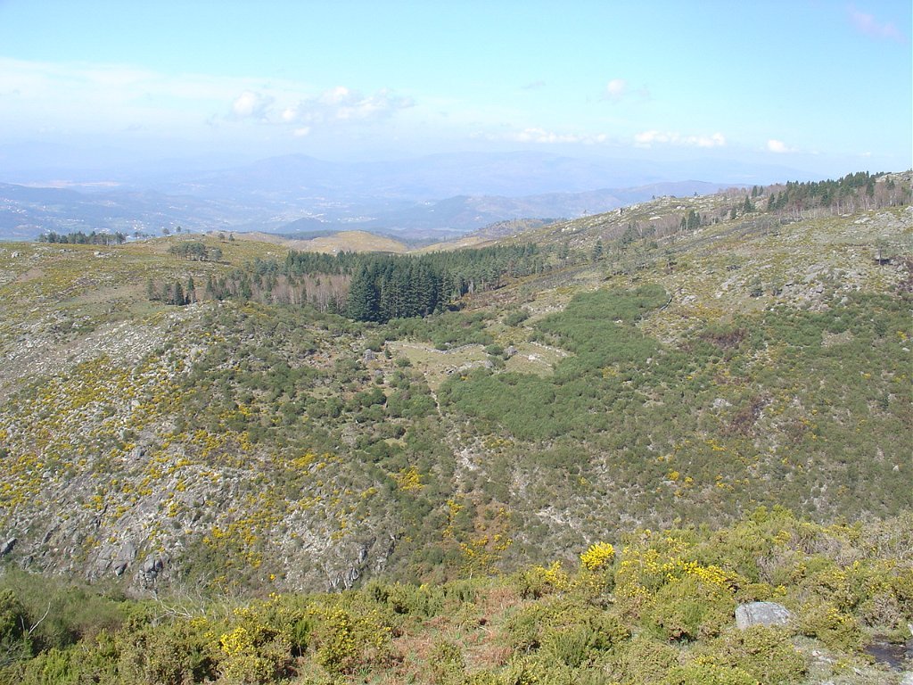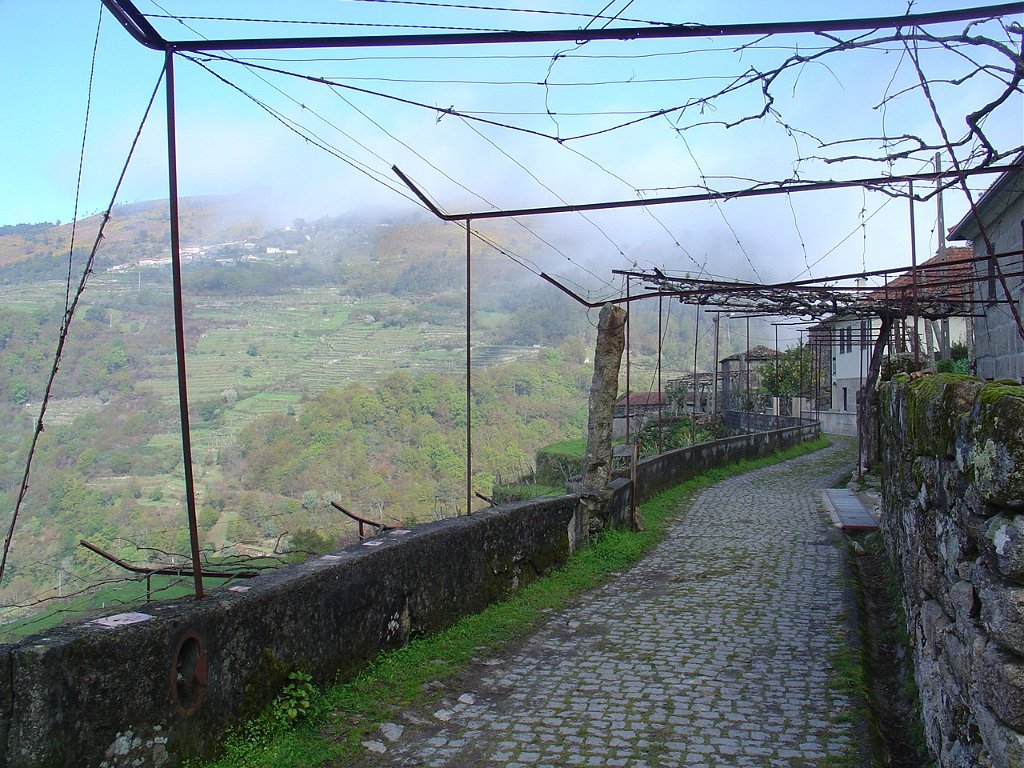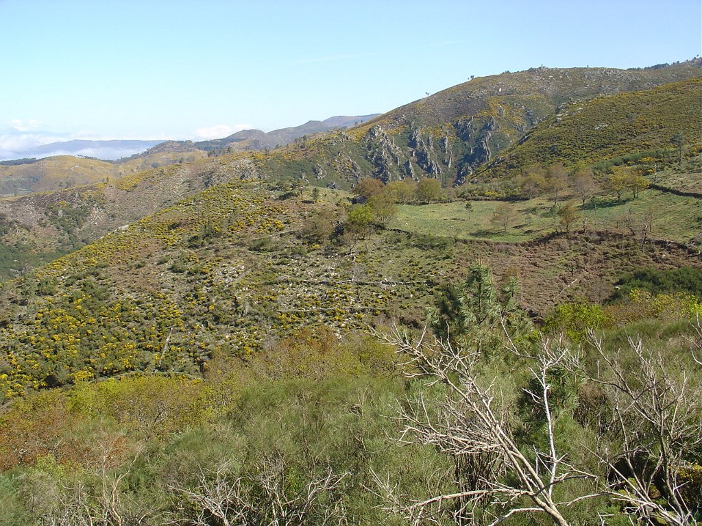 No topo da branda, junto a uma casa rectangular, onde inicia a calçada descendente, fizemos um desvio até ao topo do morro vizinho, onde se pode observar em todo o esplendor, a vertiginosa vista para a garganta do rio de Outeiro, o encontro deste com o rio Couço, com Sistelo ao fundo.