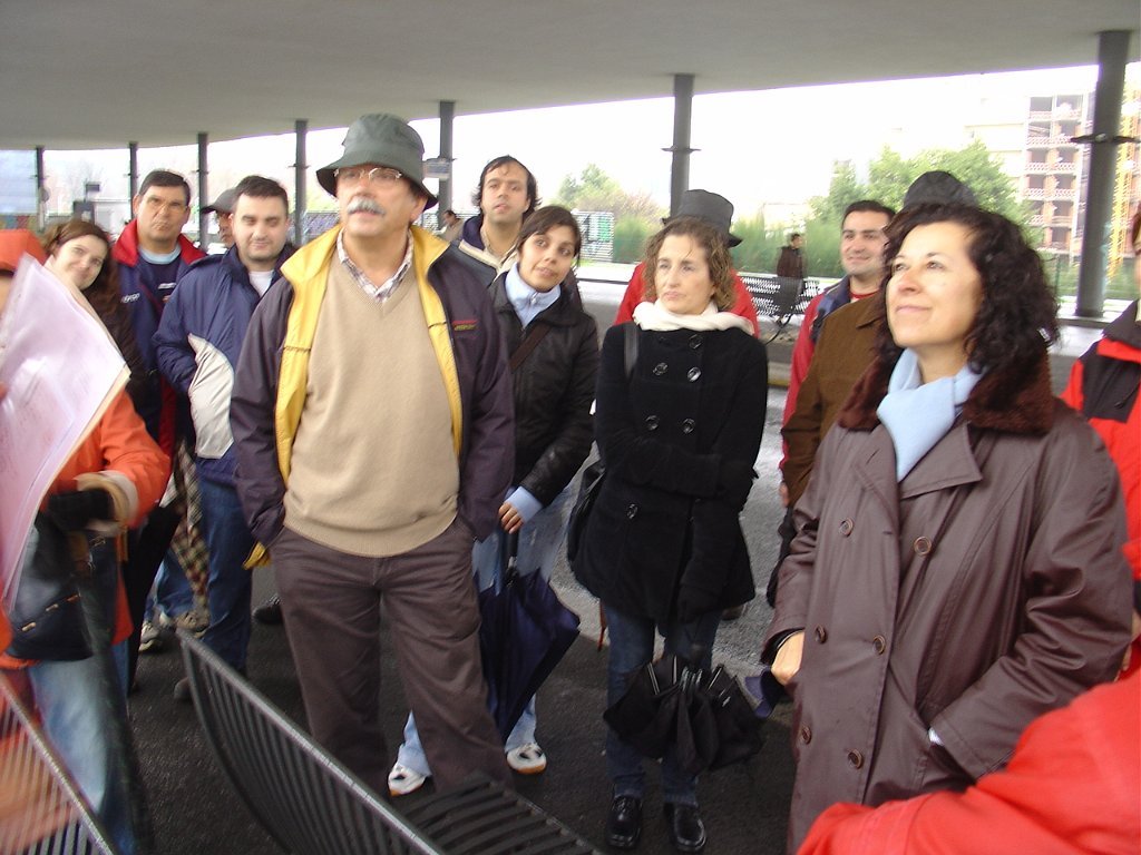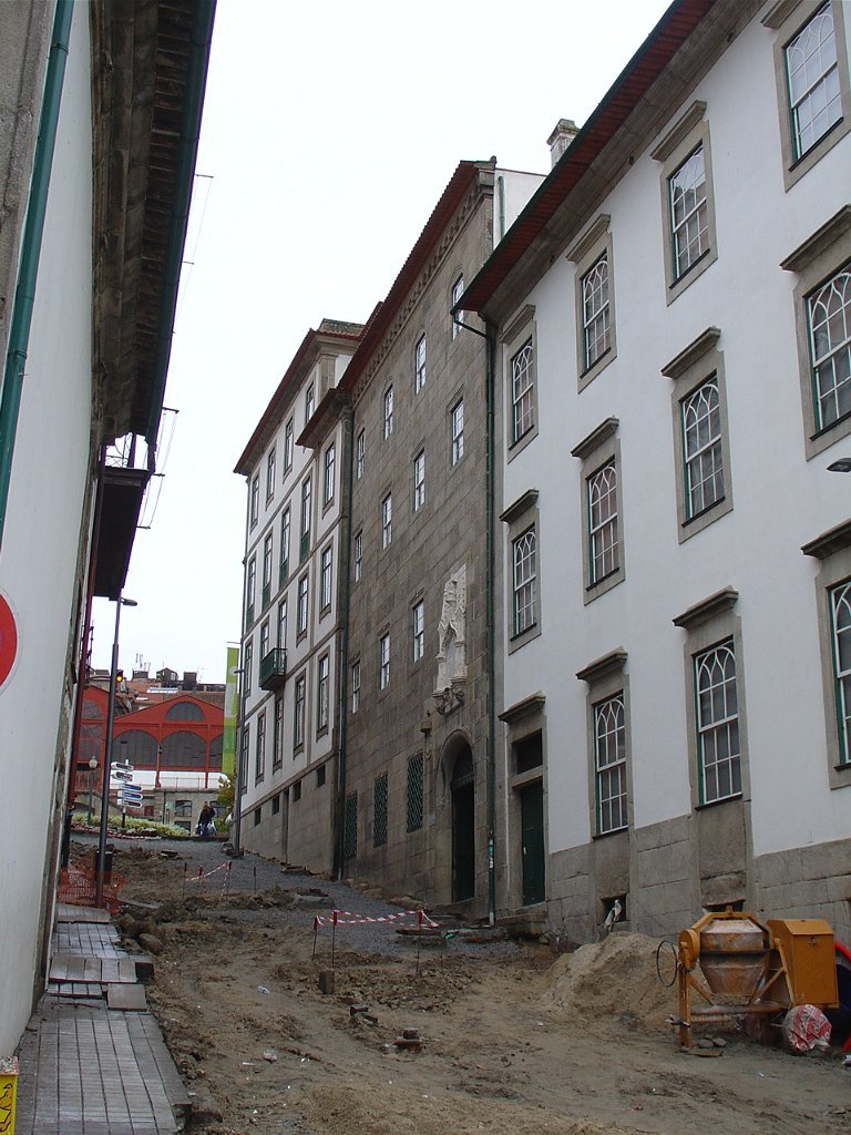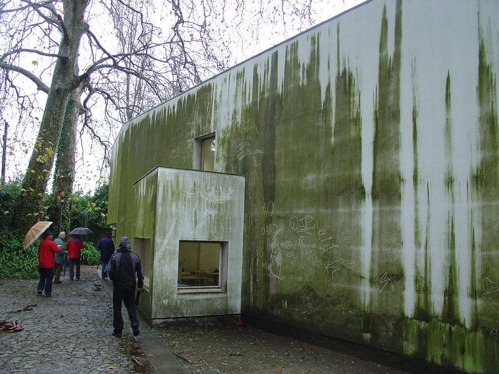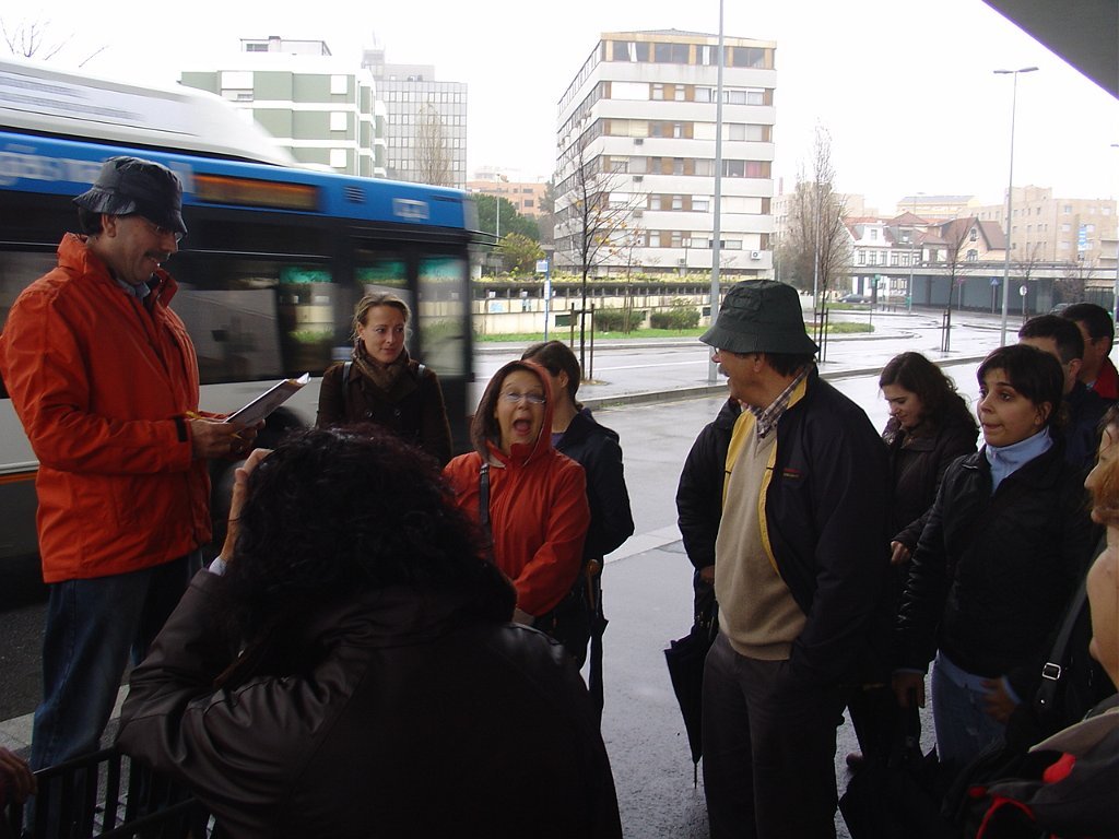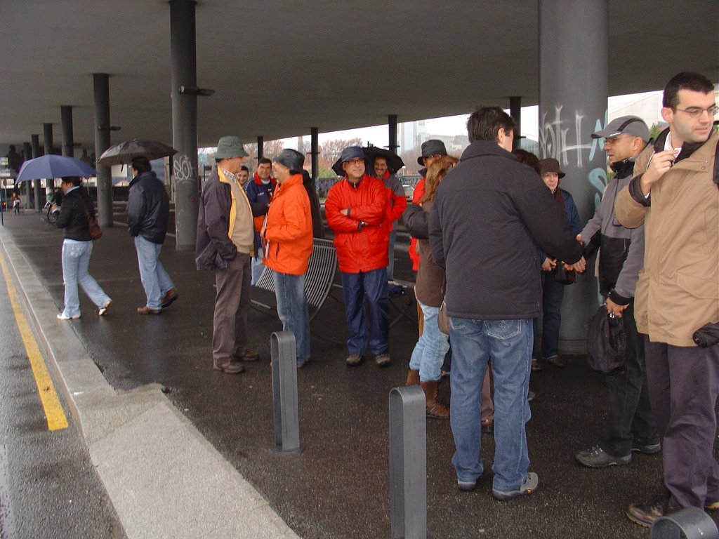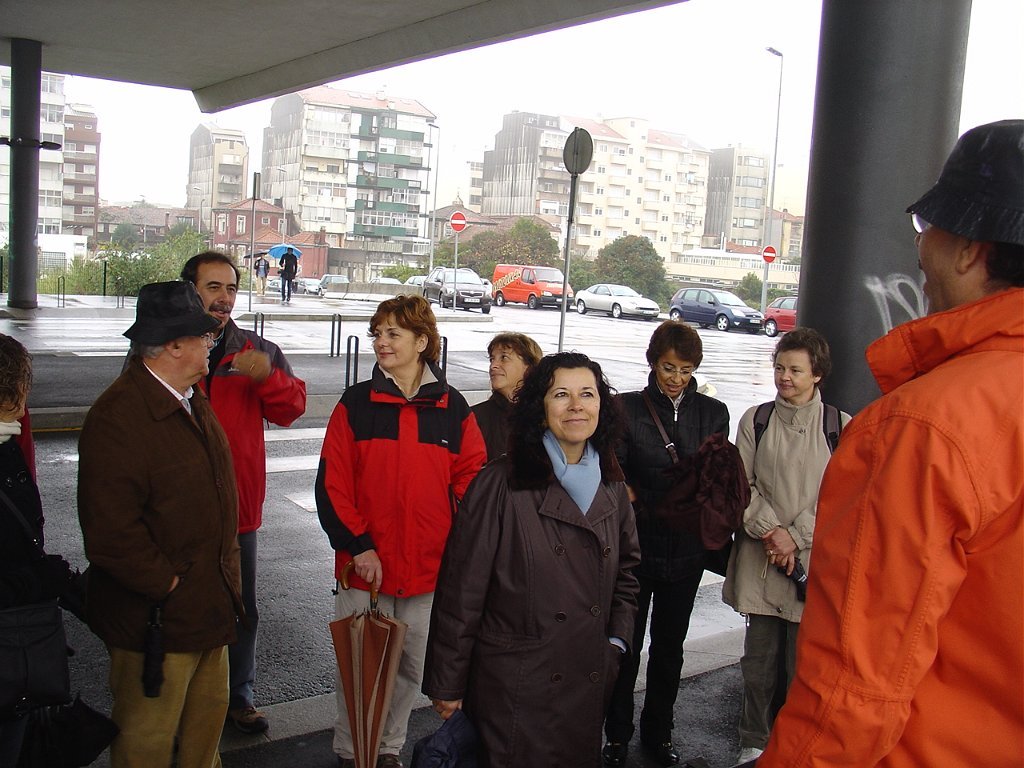 Abrigados na-e-à-pala do Souto Moura, os participantes ouviram algumas razões, explicações e conselhos sobre o programa previsto: desde logo a falta da habitual “folhinha”, não só por preguiça mas por receio que o tempo não permitisse cumprir o GUIÃO gizado e fosse preciso improvisar, falha que seria suprida por 3-guias-3 no terreno, cicerones autóctones habilitados a VER marcas inexistentes até, e outras tretas sobre trânsito-em-cidade e afins. Ligado o GPS do Castro Almeida, que além dos registos topográficos é o autor das notáveis fotografias (e etc.) que ilustram os nossos passeios – provedor-mor de um precioso arquivo de 10 anos - abertos os guarda-chuvas, seja oqDquiser ! e partimos.